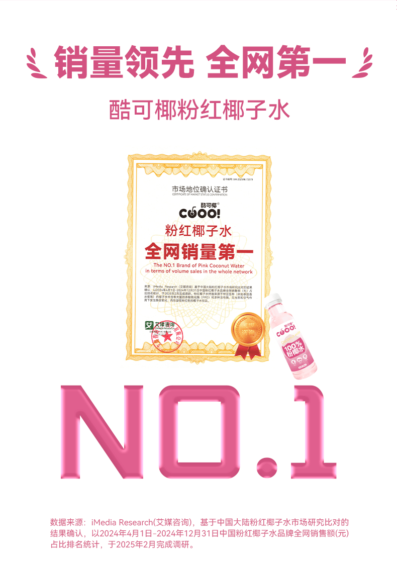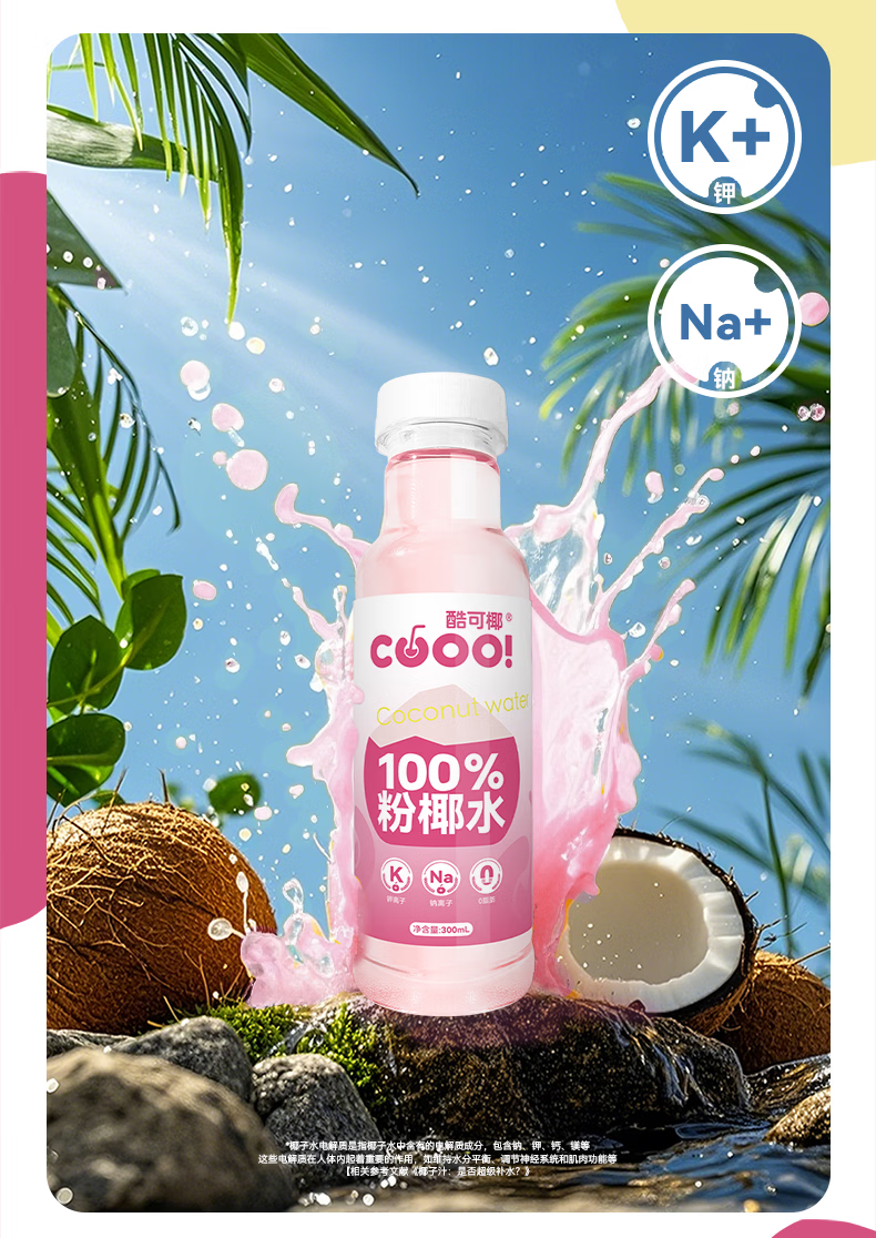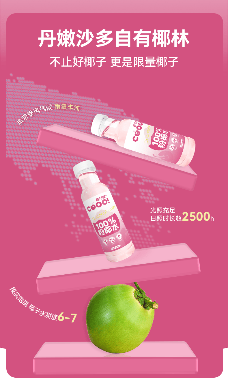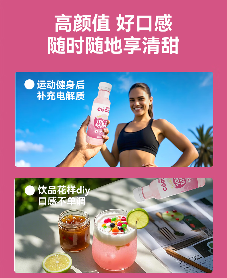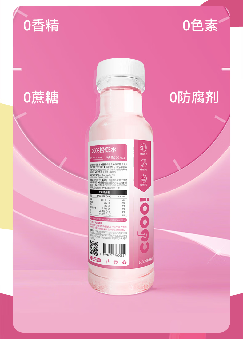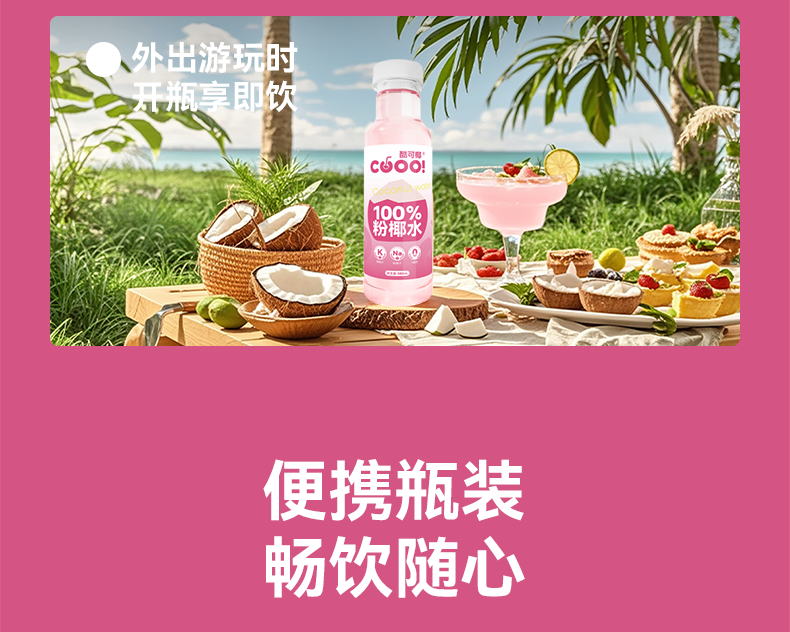 酷可椰100%粉红椰子水NFC非浓缩还原0添加色素电解质水补水聚餐团建饮品 【20袋装】100%粉红椰子水180ml/袋