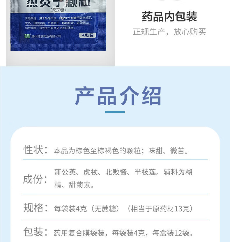 [良济]热炎宁颗粒 4g*12袋 1盒装 热炎宁颗粒4g*12袋 缓解风热感冒发热咽痛肿痛急性咽炎急性支气管炎