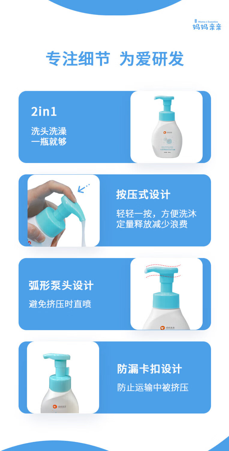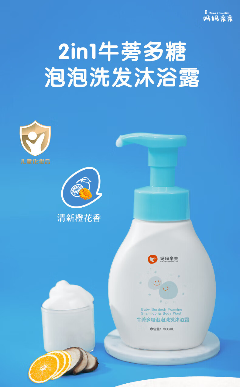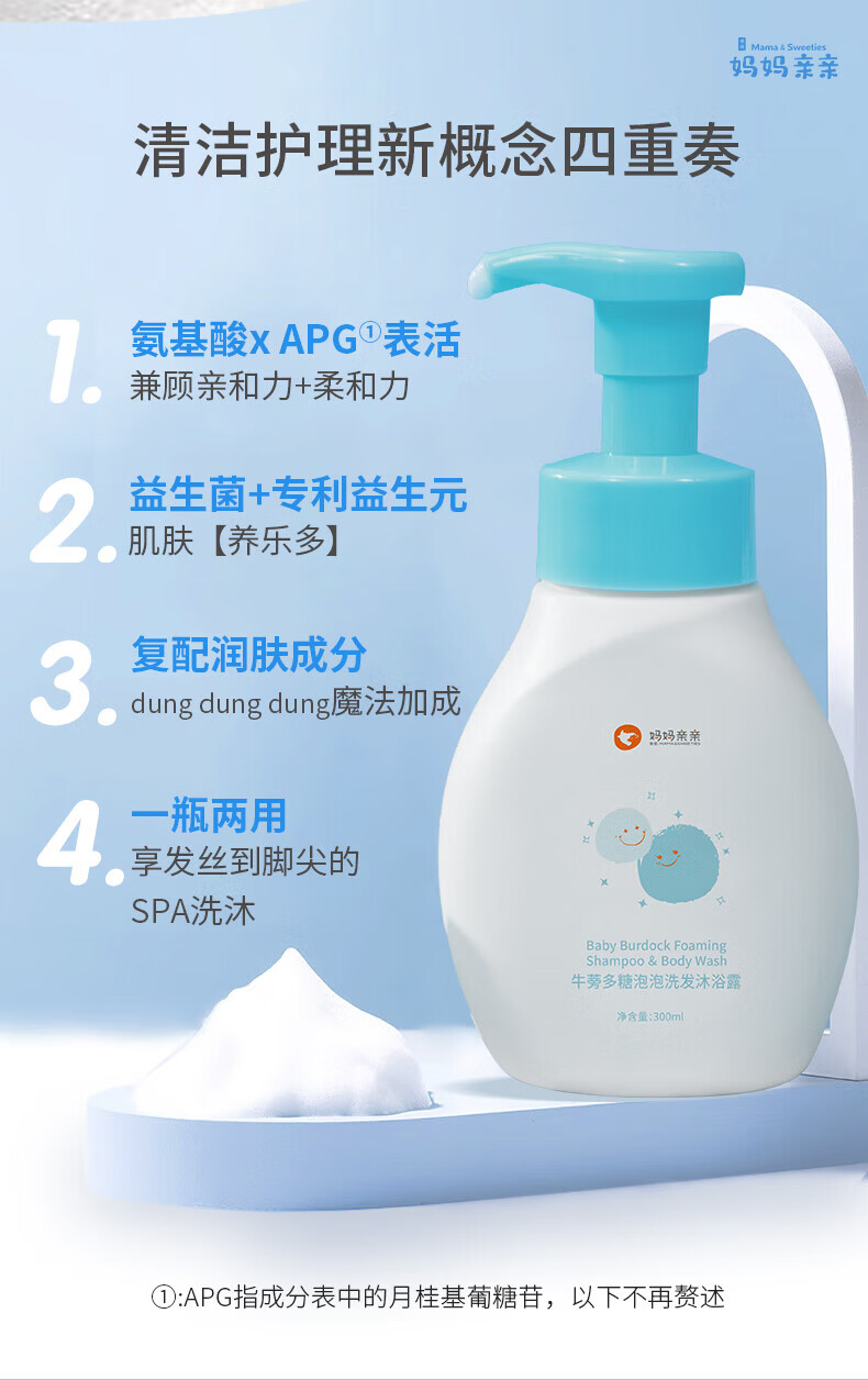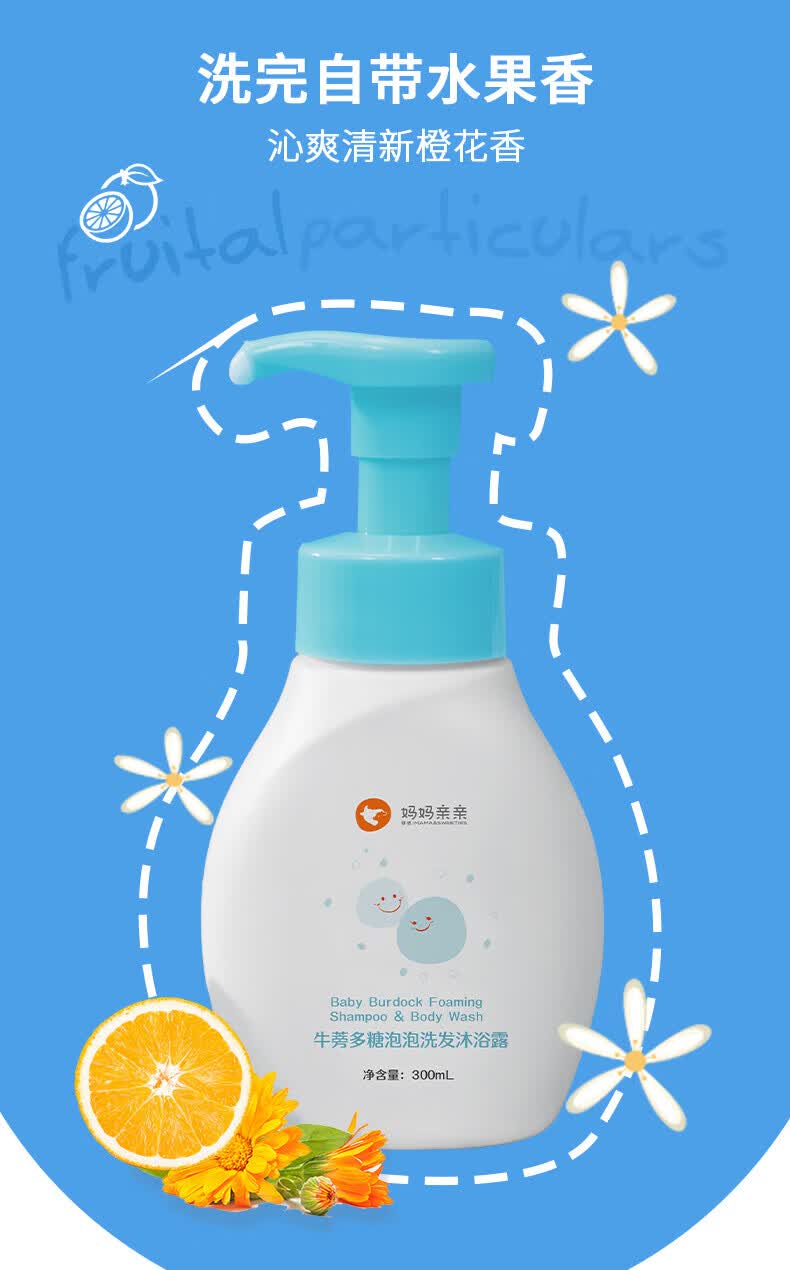 博德妈妈亲亲牛蒡多糖泡泡滋润保湿儿童婴儿洗发沐浴二合一洗发沐浴露 300ml 300ml
