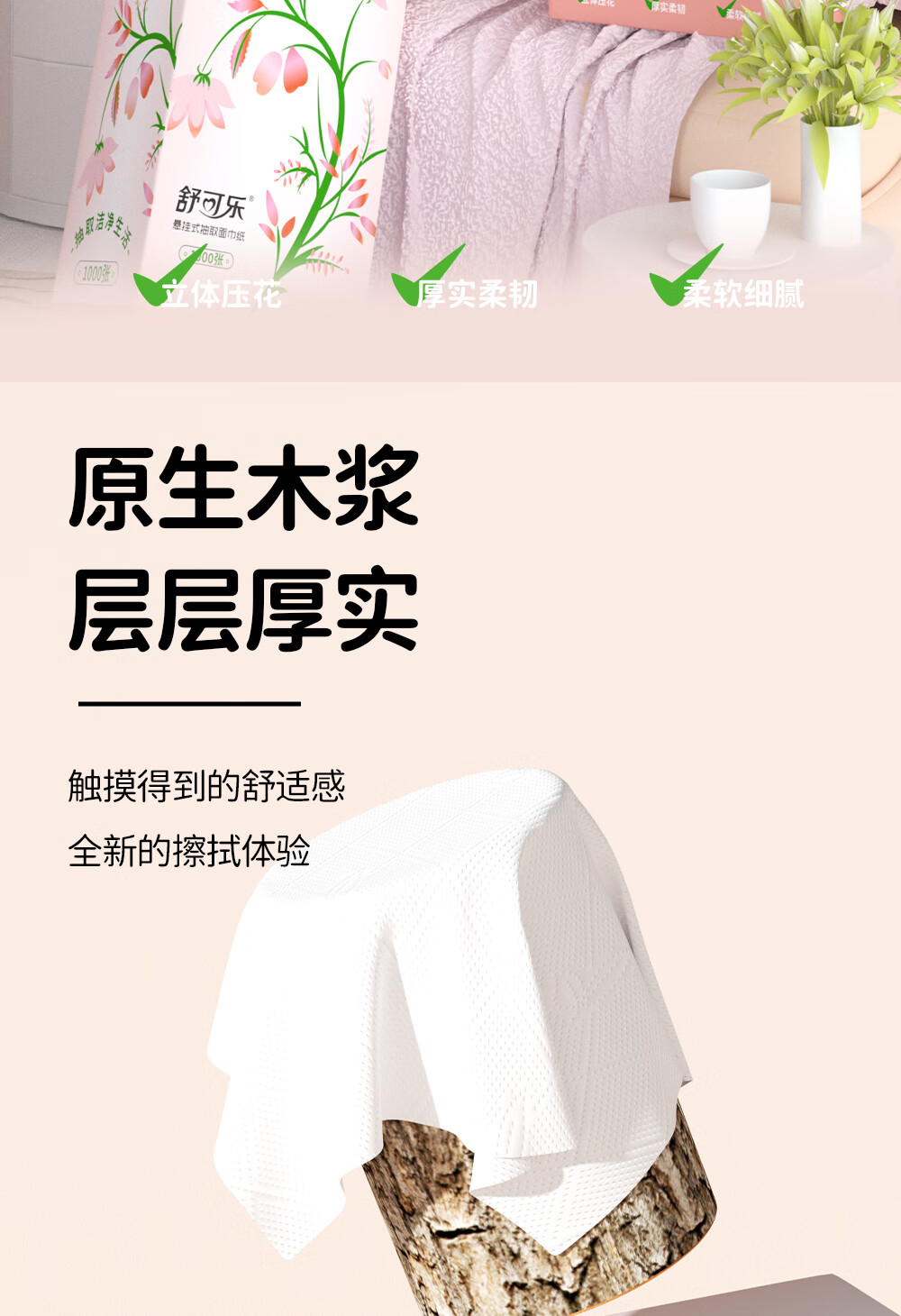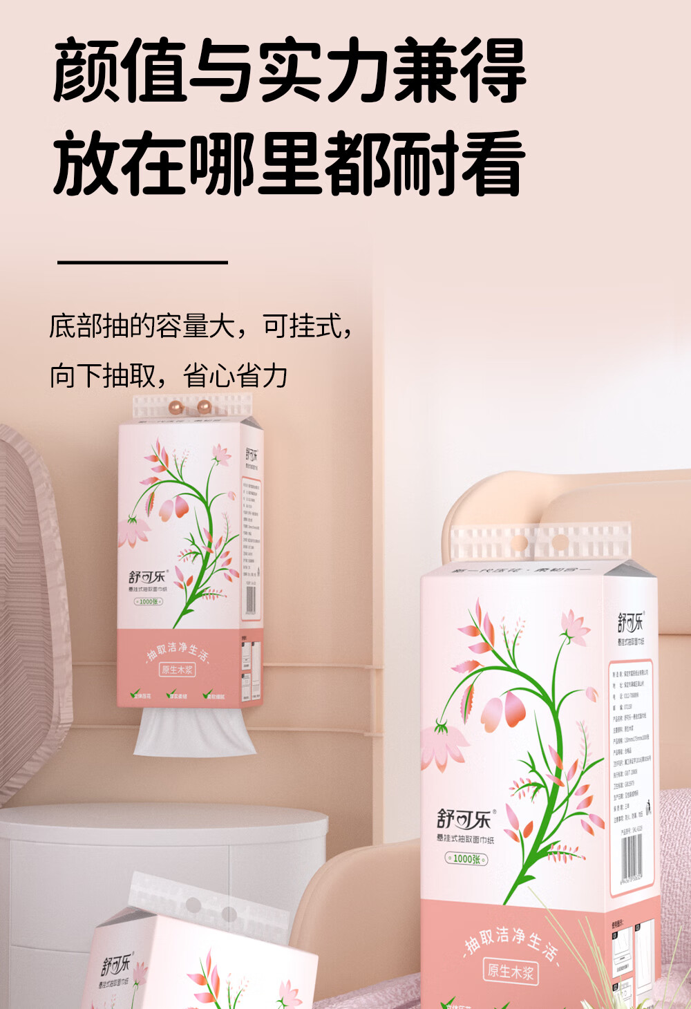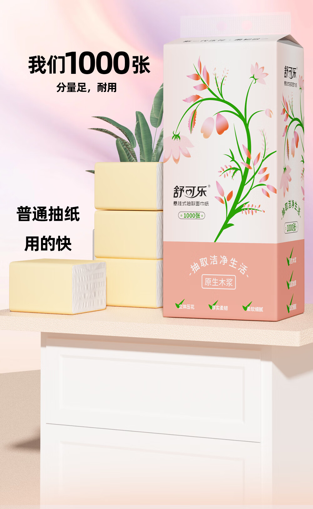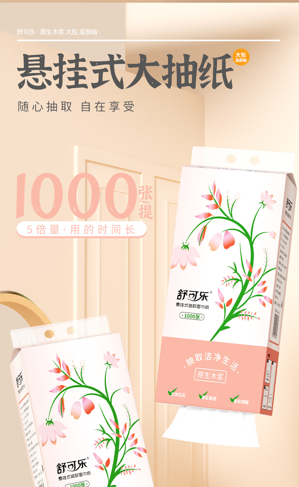 舒可乐挂抽悬挂式抽纸餐巾纸卫生纸家用实惠大包装整箱 4层 1000张*2提