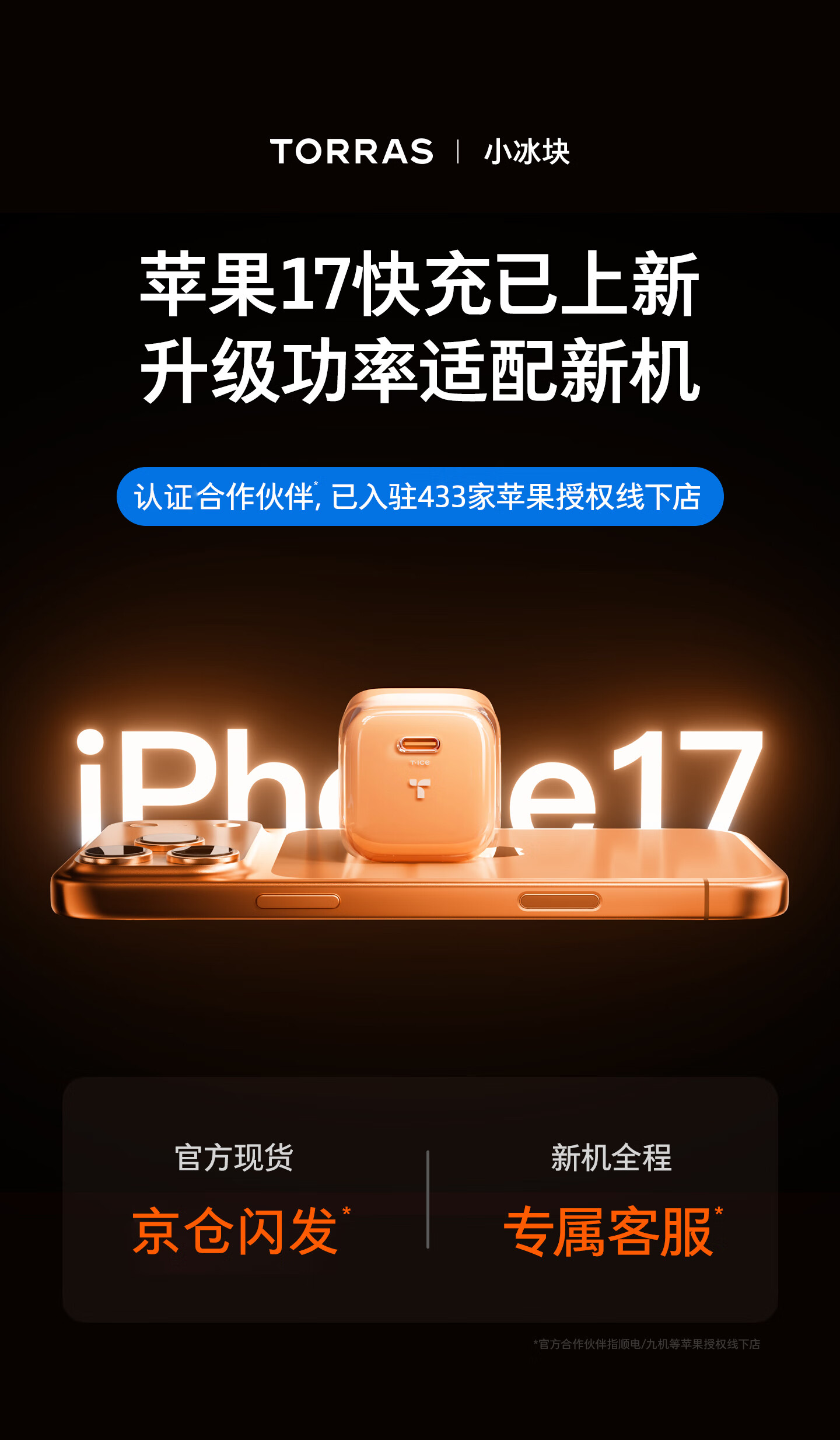 图拉斯小冰块【iPhone新机首选】苹果17充电器iPhone17promax充电头17Pro氮化镓45w/35W套装适配16快充线 【17-15套装】35W星宇橙+1.68米双C线 国家3C认证丨低温快充更护机