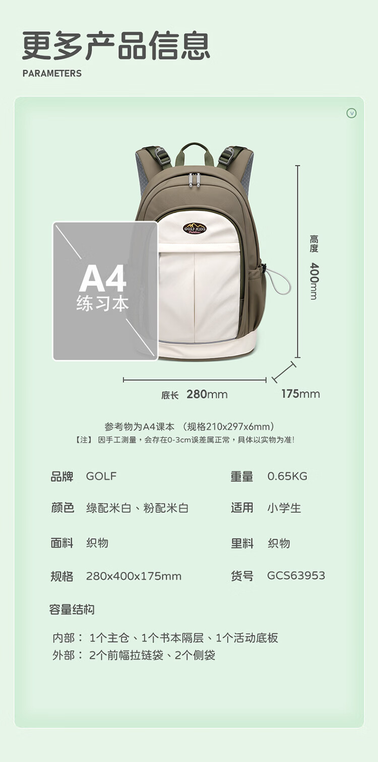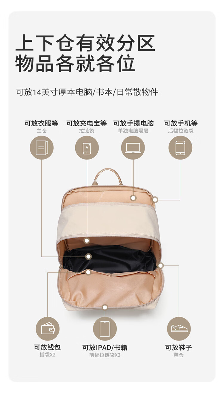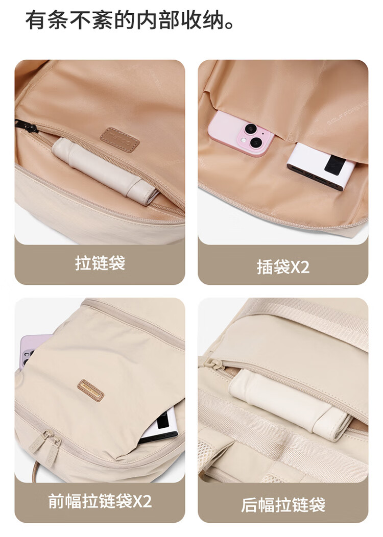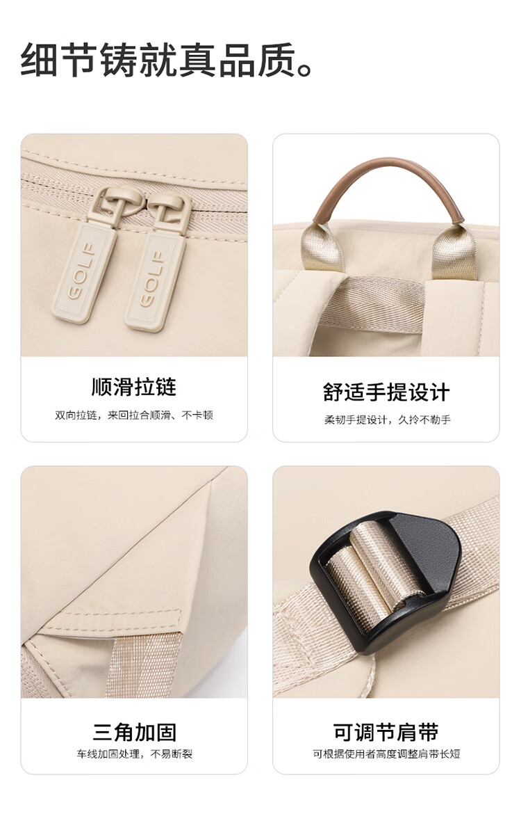 高尔夫(GOLF)双肩包男女百搭背包女休闲旅行学生书包防泼水出游背包【Q】 款式14-粉配米白
