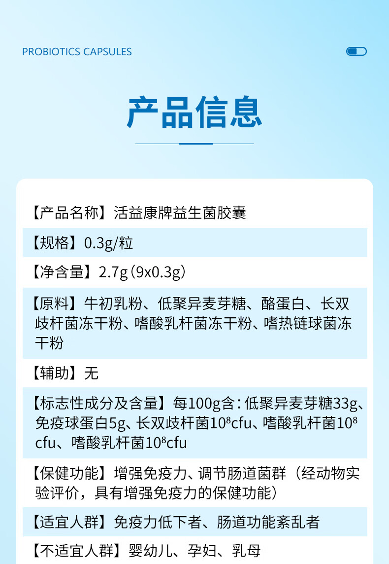 华喜达活益康牌益生菌胶囊三大益生菌株调节肠胃菌群调节肠道增强免疫力 9粒*1盒 【优惠小体验装】