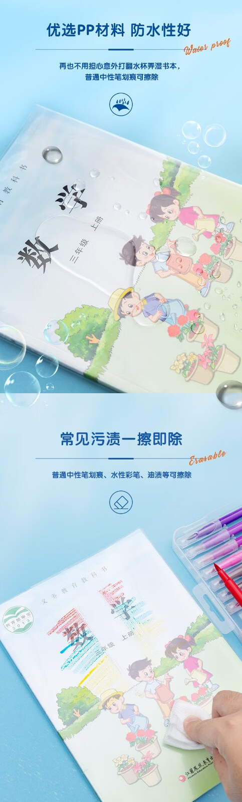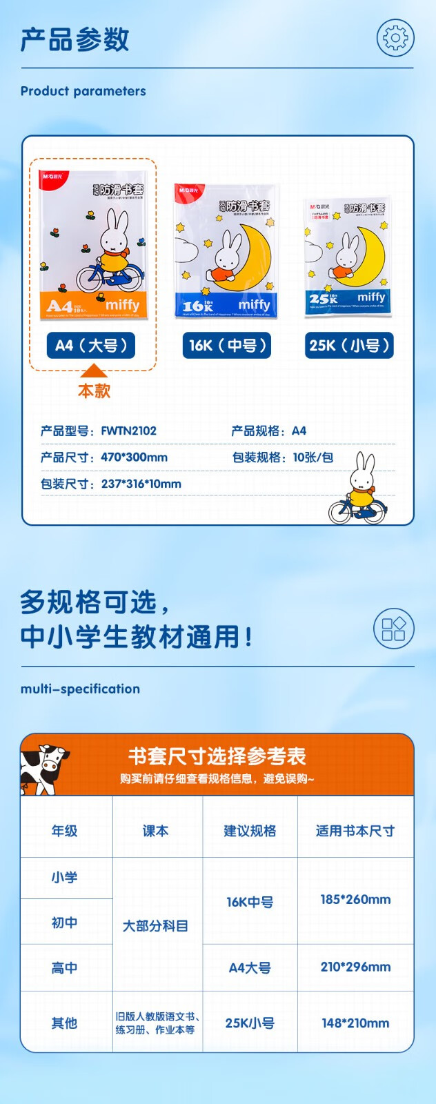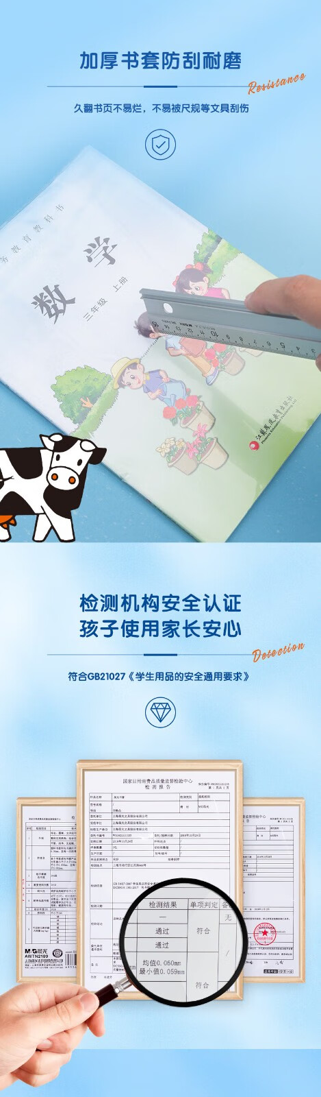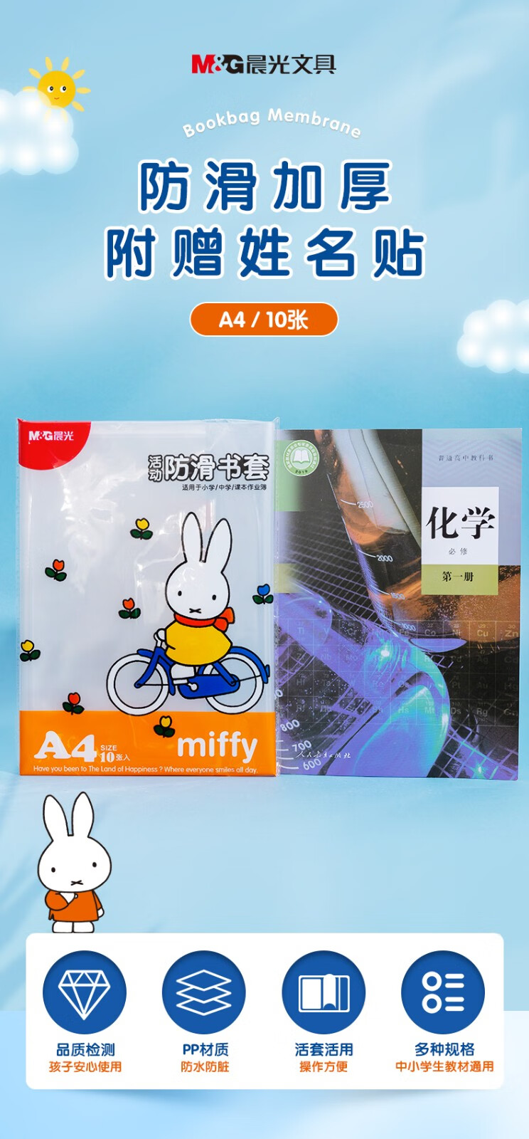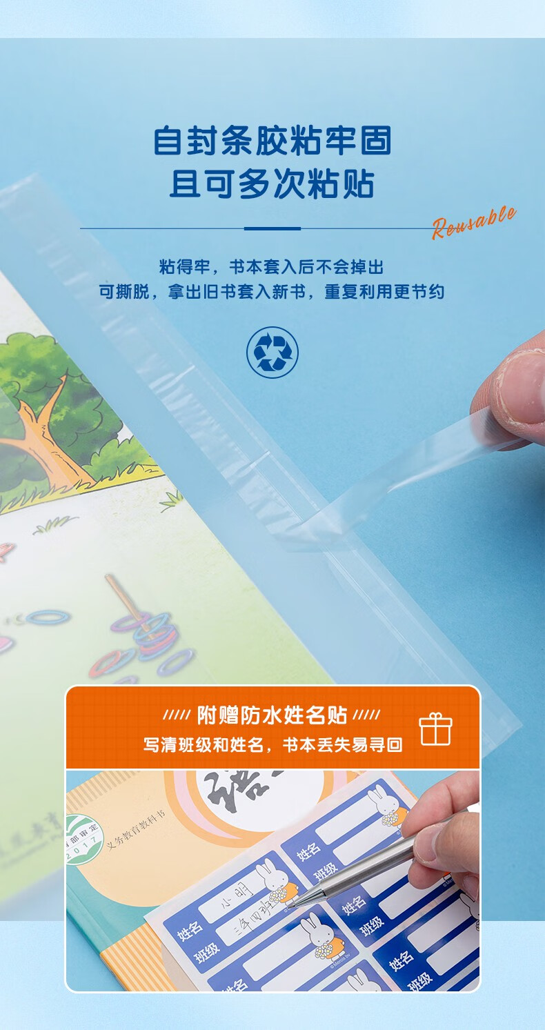 晨光(M&G)书皮书套透明书皮中小学生16K防滑自粘书套大中小号包课本书皮保护套透明PP材质书套 实惠套装【大10+中10+小10】共30张+姓名贴