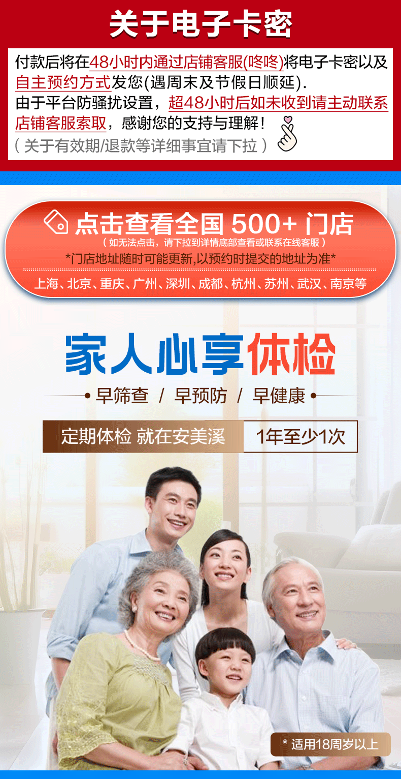 美年大健康瑞慈体检家人畅享D体检套餐成人全国门店通用体检卡 高阶版(1人)(美年瑞慈) 2个工作日内店铺客服(咚咚)发您电子卡密自主预约