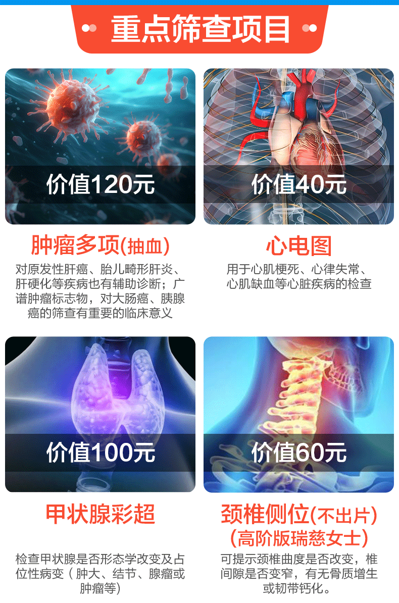 美年大健康瑞慈体检套餐中青老年父母全家通用体检套餐男女士体检卡全国体检中心上海北京成都 CT版体检套餐RY138【美年/瑞慈】