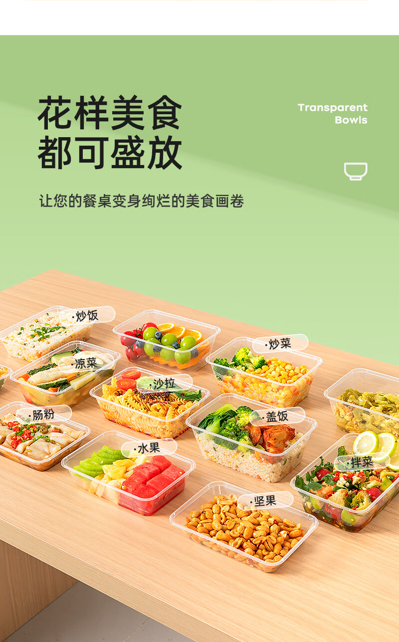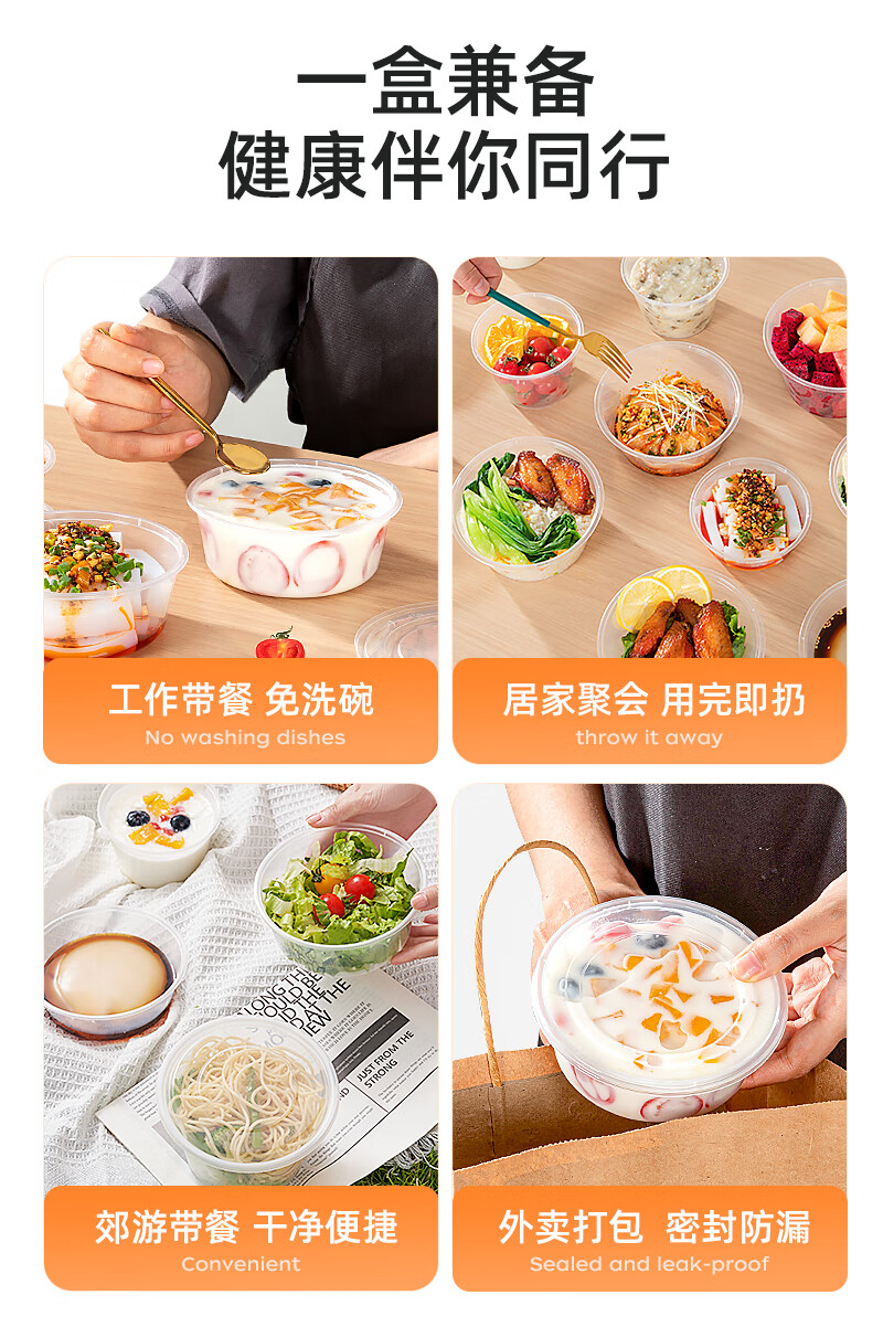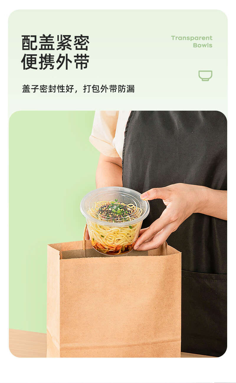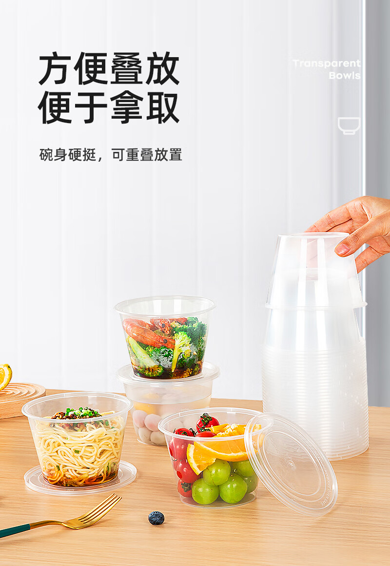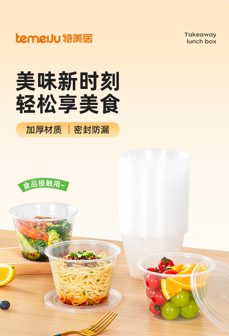 特美居一次性饭盒透明加厚带盖餐盒外卖打包盒食品保鲜盒一次性碗冰粉碗 圆形360型不带盖 100只