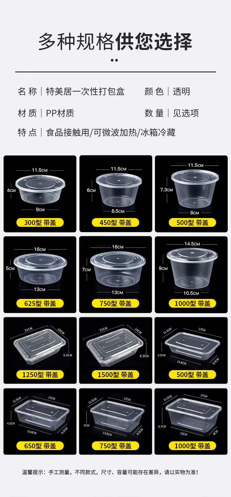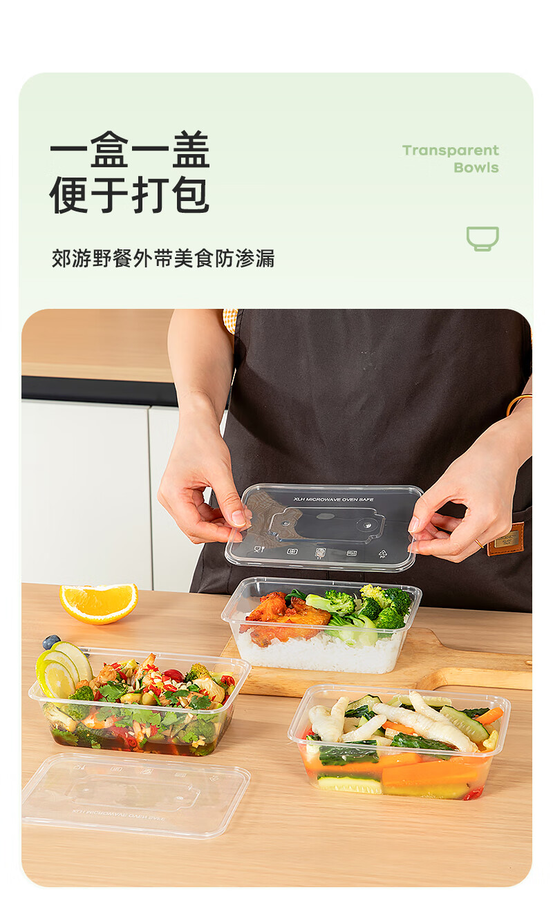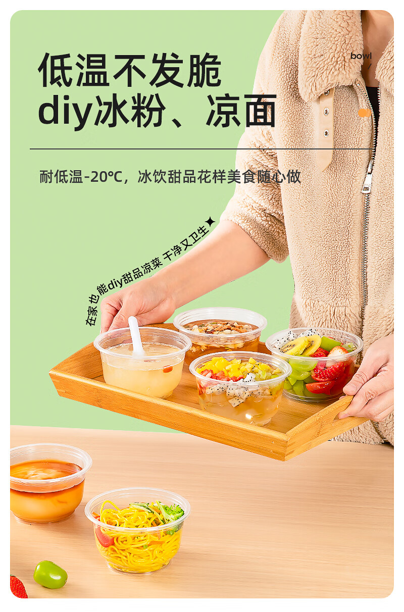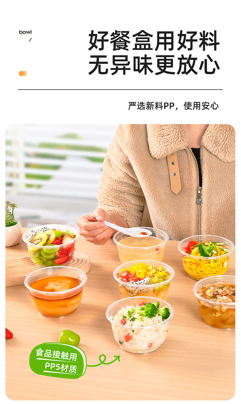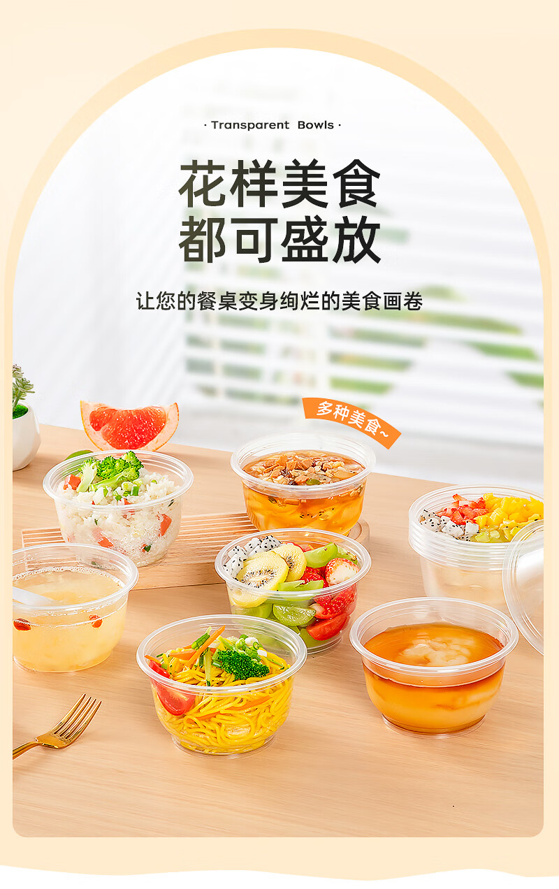 特美居一次性饭盒透明加厚带盖餐盒外卖打包盒食品保鲜盒一次性碗冰粉碗 圆形360型不带盖 100只