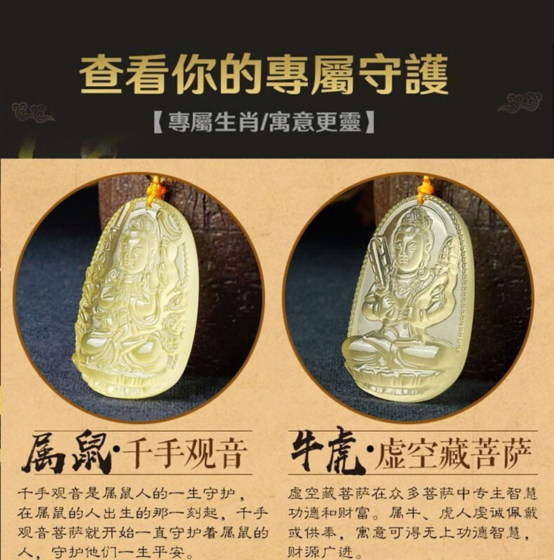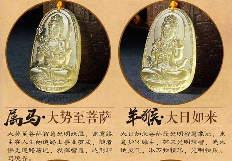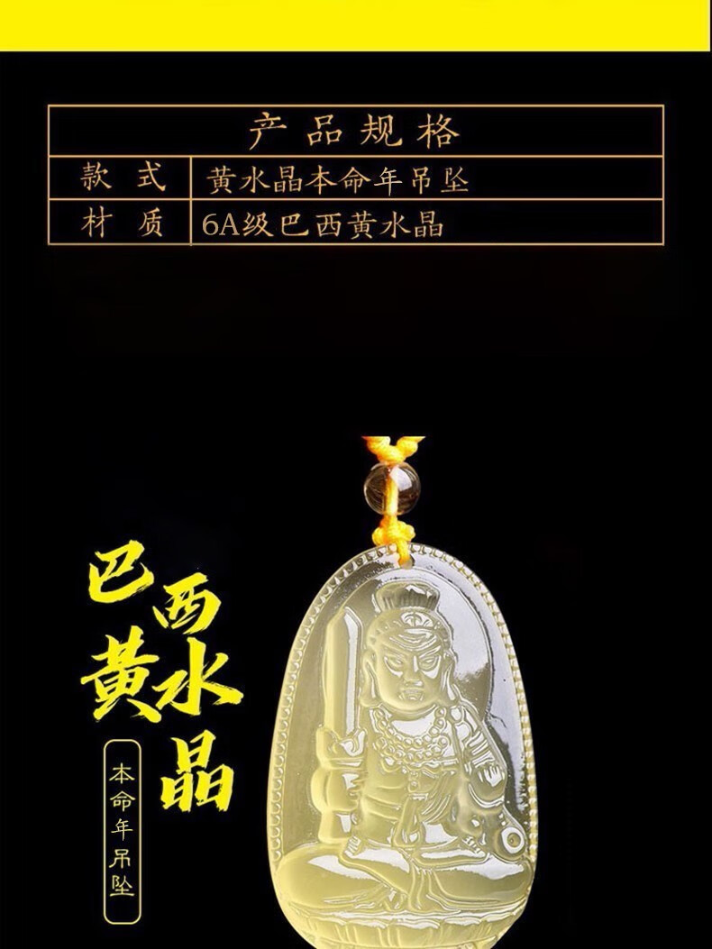 初缘天然黄水晶吊坠男女款本命佛十二生肖守护神项链马年礼物送男女友 生肖狗猪-阿弥陀佛菩萨