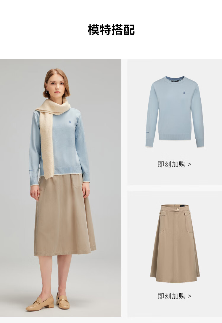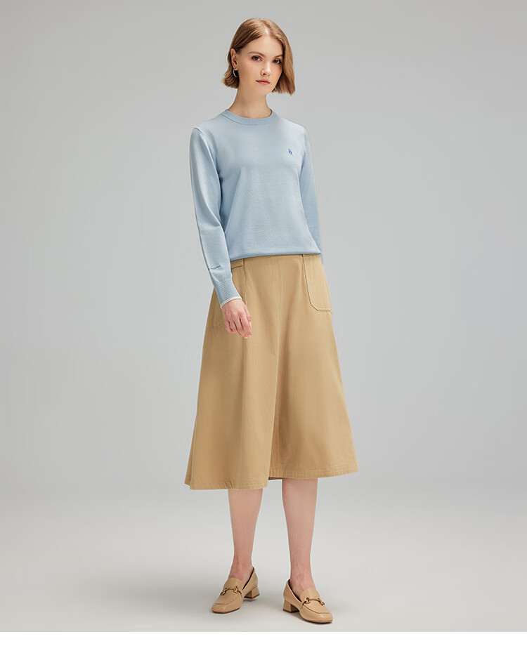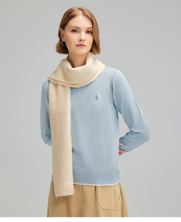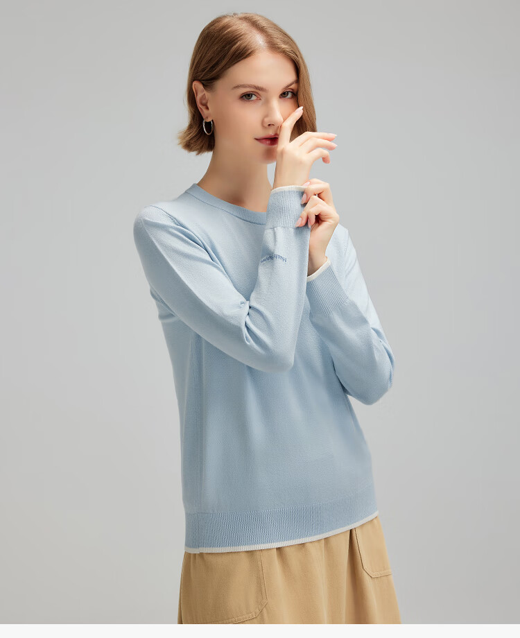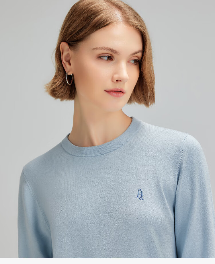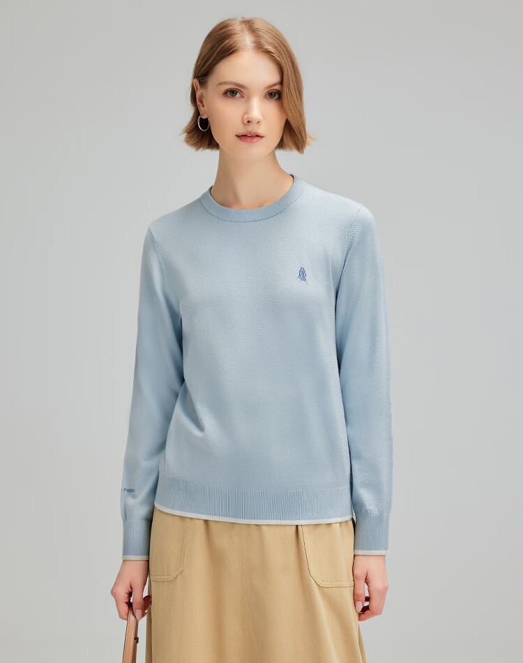 暇步士(Hush Puppies)【商场同款】女装秋季经典圆领弹力长袖线衣 海雾蓝 S