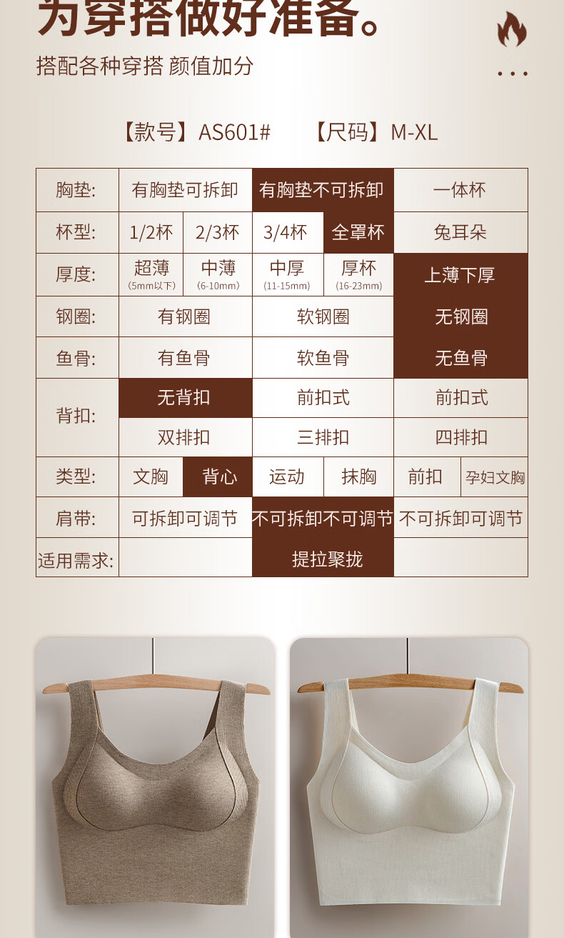 南极人(Nanjiren)保暖内衣女带胸垫吊带磨毛背心内搭外穿打底聚拢秋冬免穿文胸1392 卡其 M 建议90-105斤