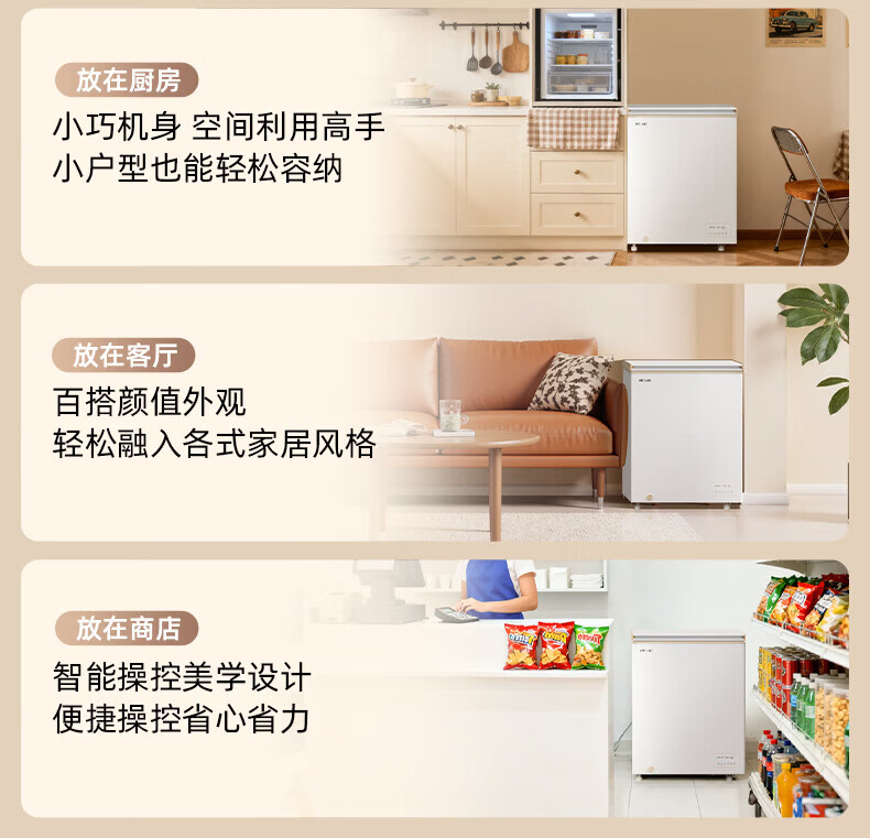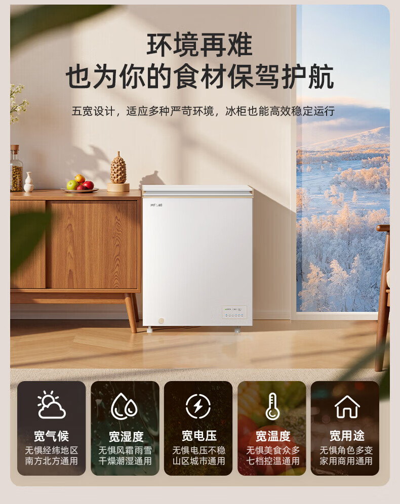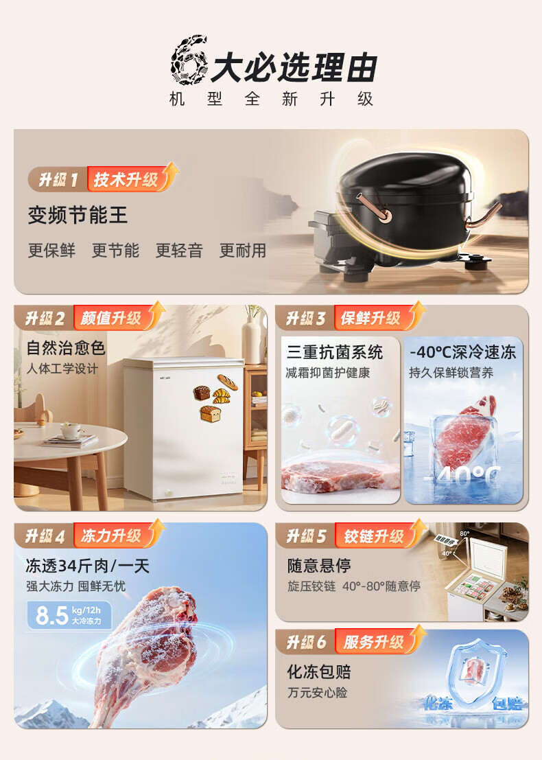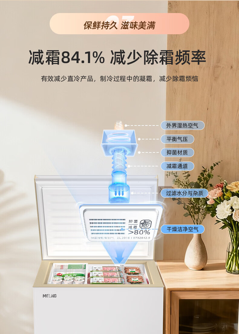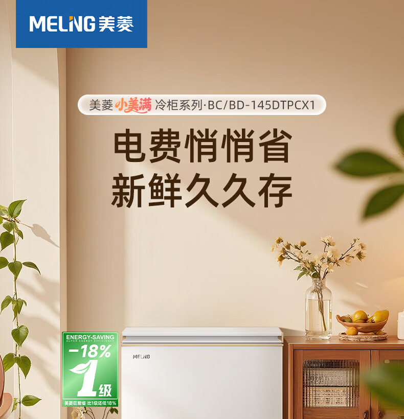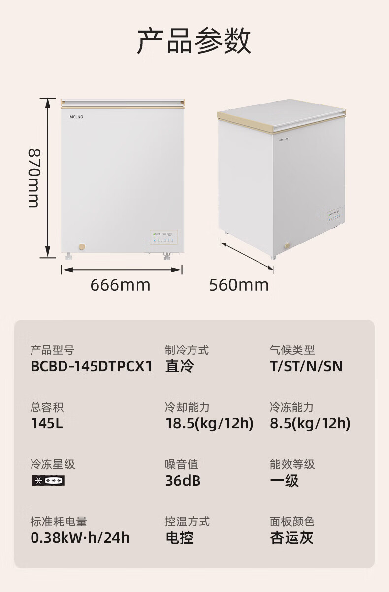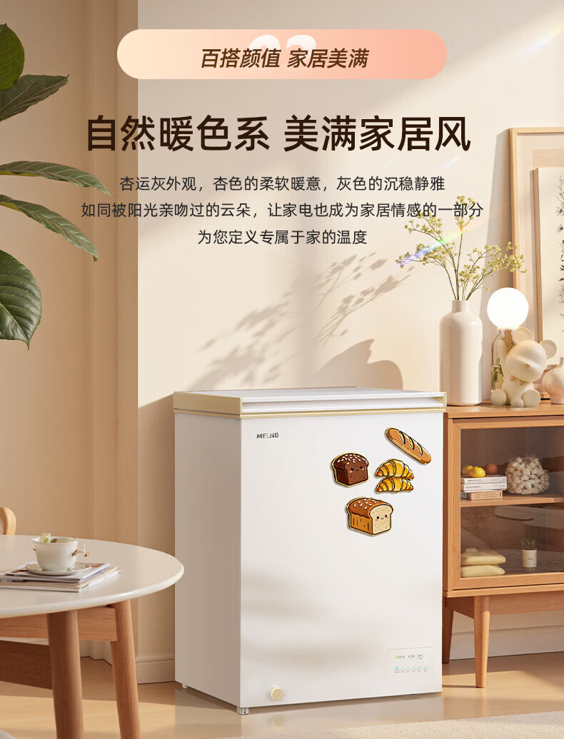 美菱小美满145升单温家用冷柜电控变频节能新一级深冷速冻大冷冻力囤货钢胆 杏运灰 145升 BC/BD-145DTPCX1