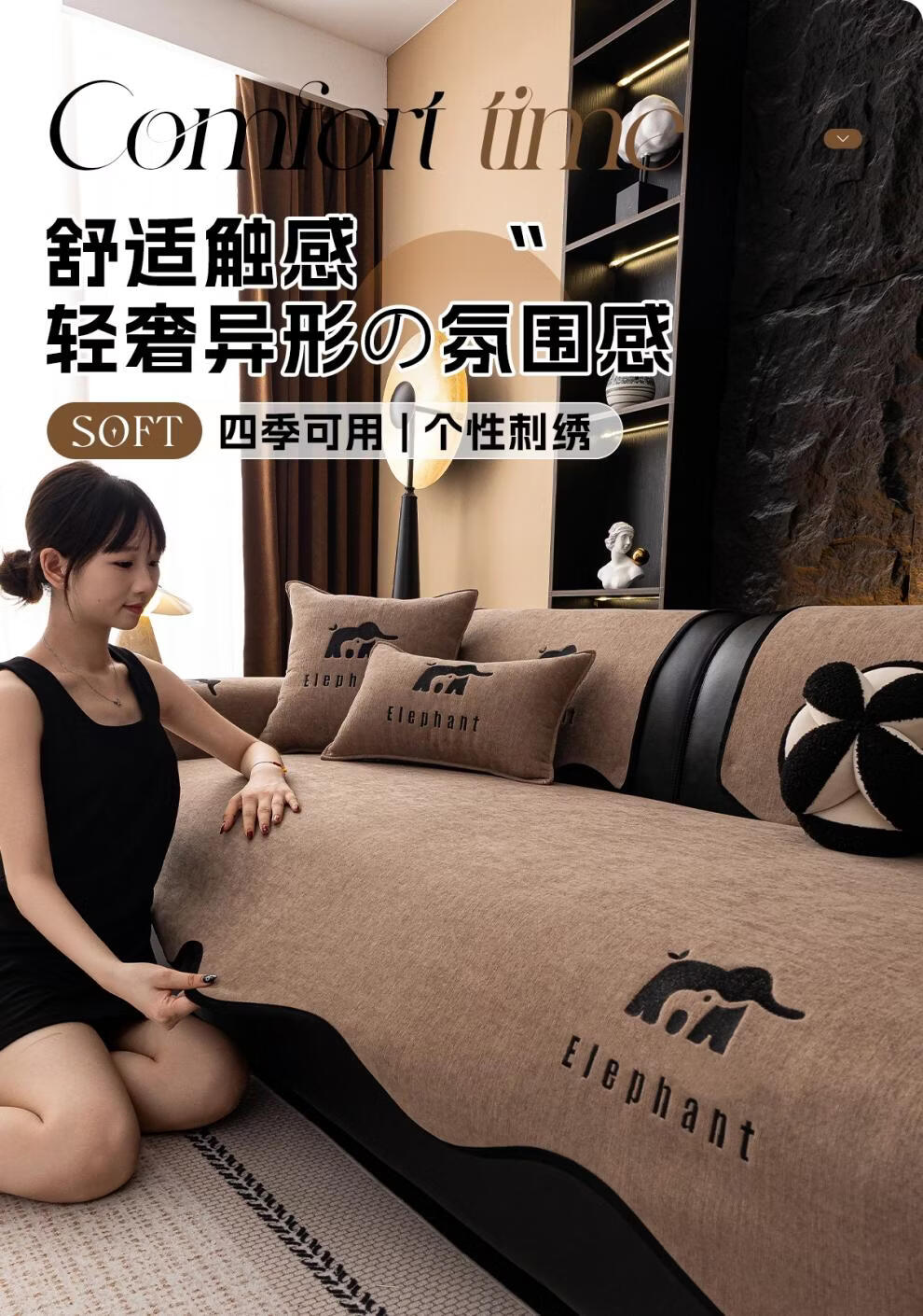 DONOYA 多罗亚轻奢高级感沙发垫四季通用防滑2026年新款沙发盖布巾防猫抓坐垫子 异形万象-卡其 70cm*70cm