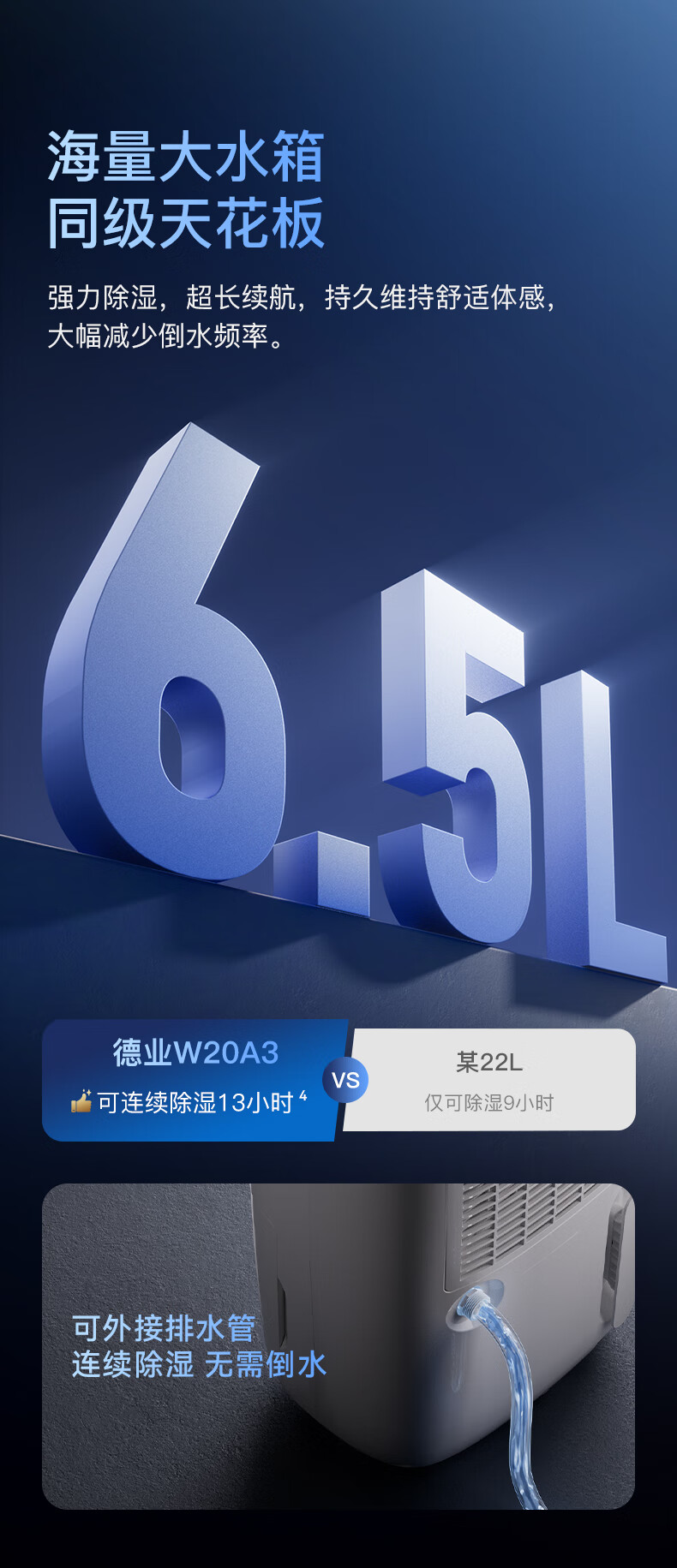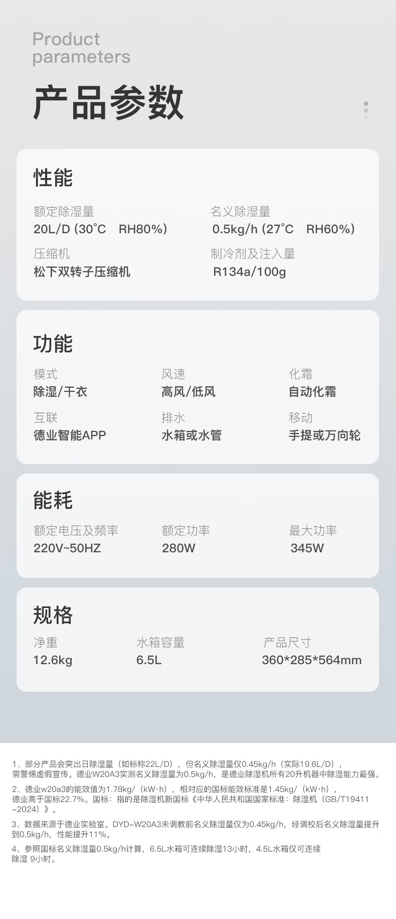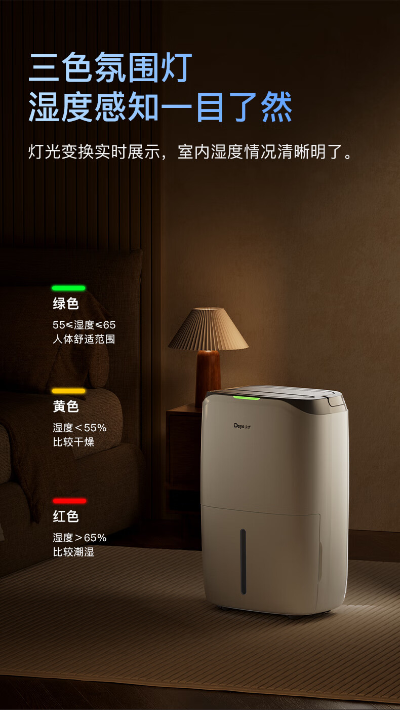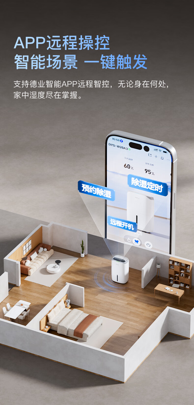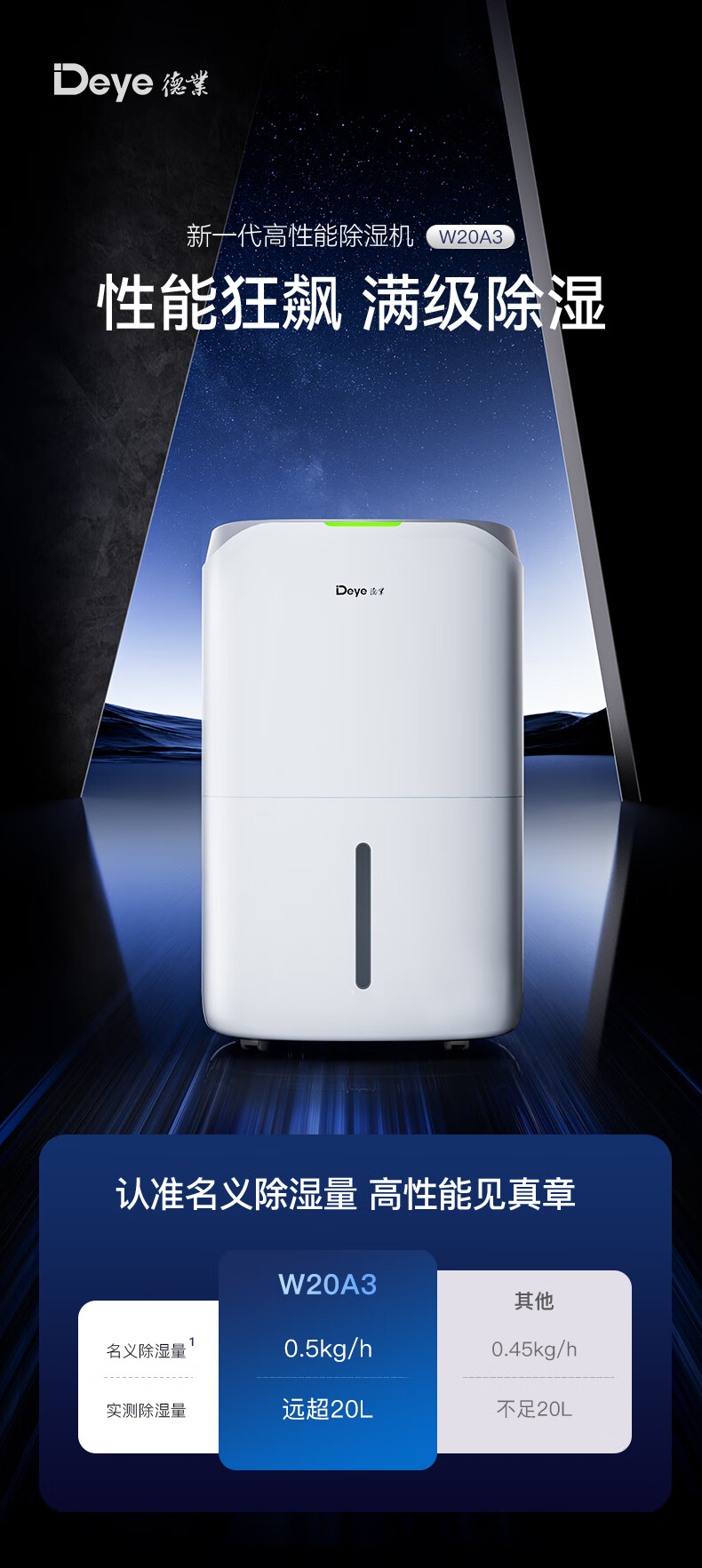 德业(Deye)除湿机/抽湿机 除湿量20升/天 40㎡家用轻音地下室干燥除潮吸湿器干衣机 手机智控 DYD-W20A3