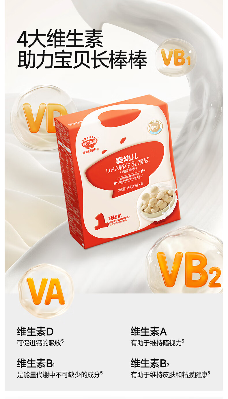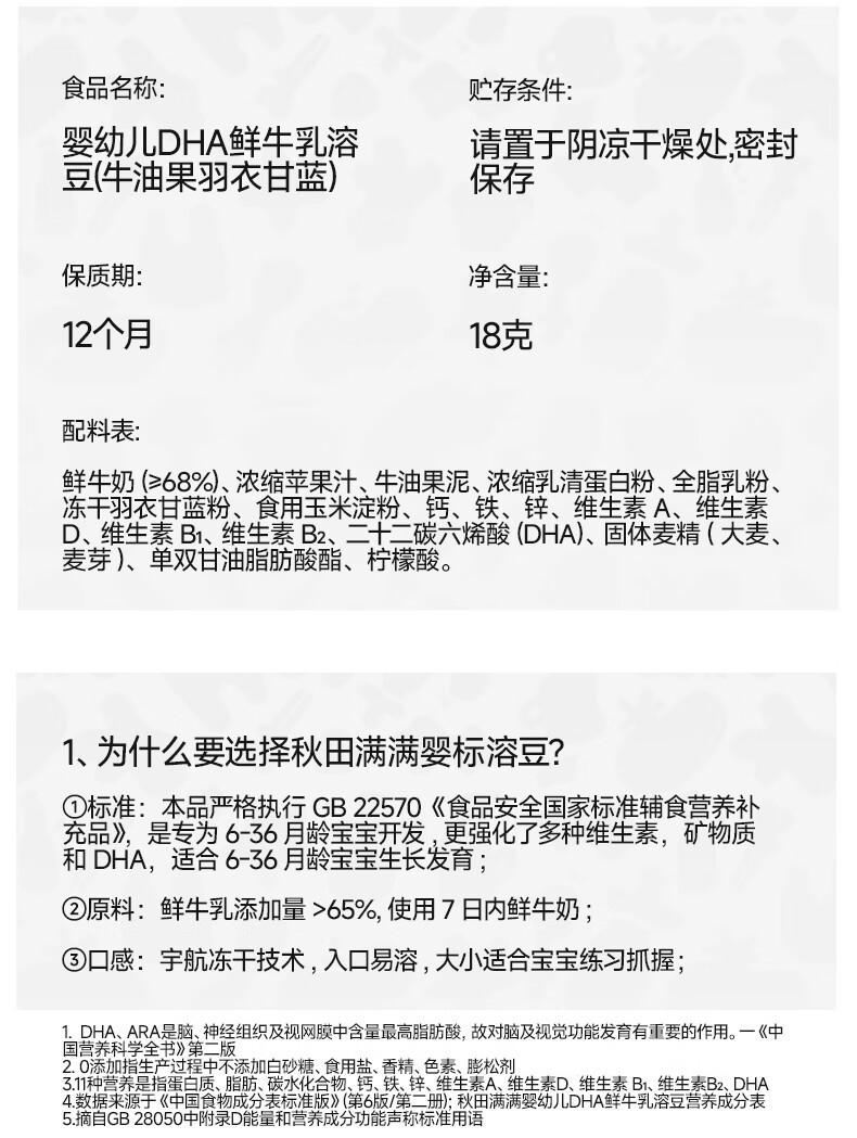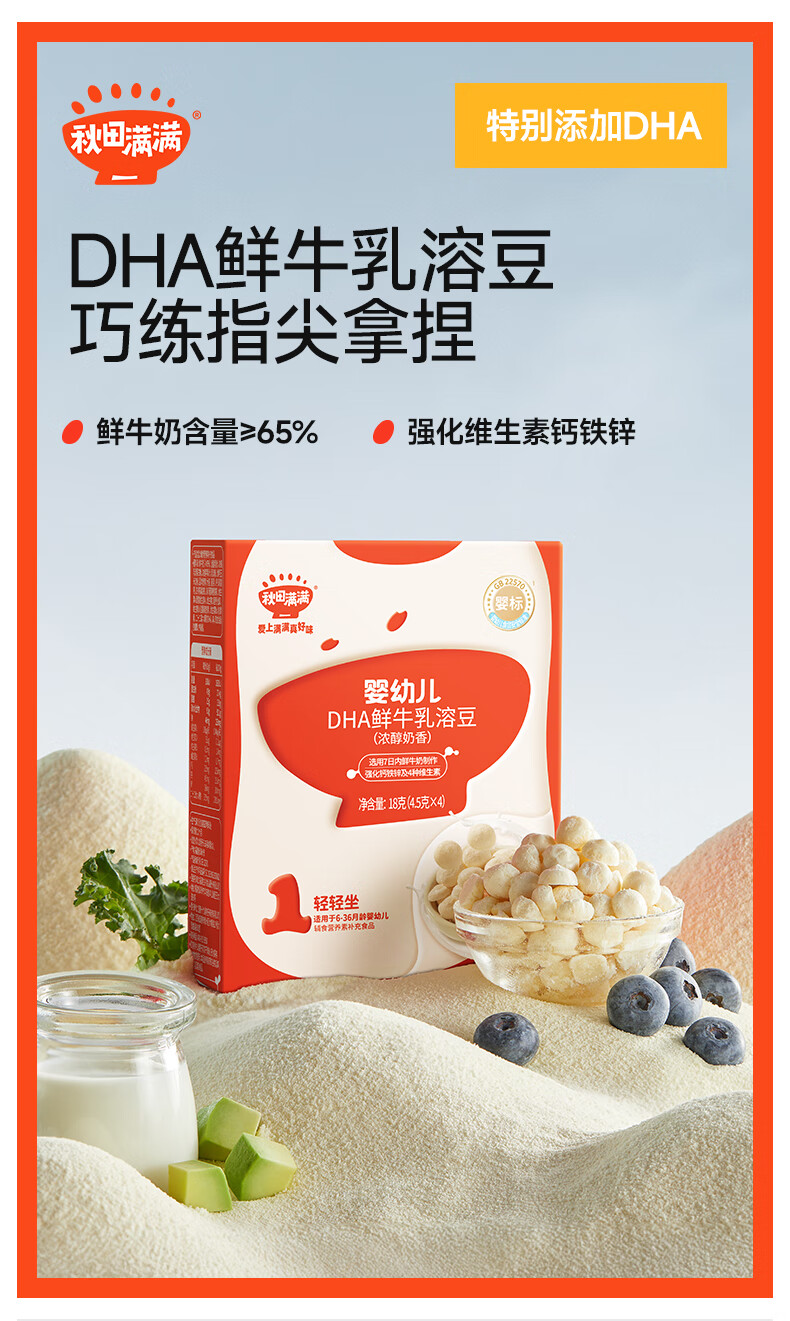 秋田满满溶豆婴儿6个月以上婴标DHA鲜奶原味溶豆18g宝宝零食无添加白砂糖