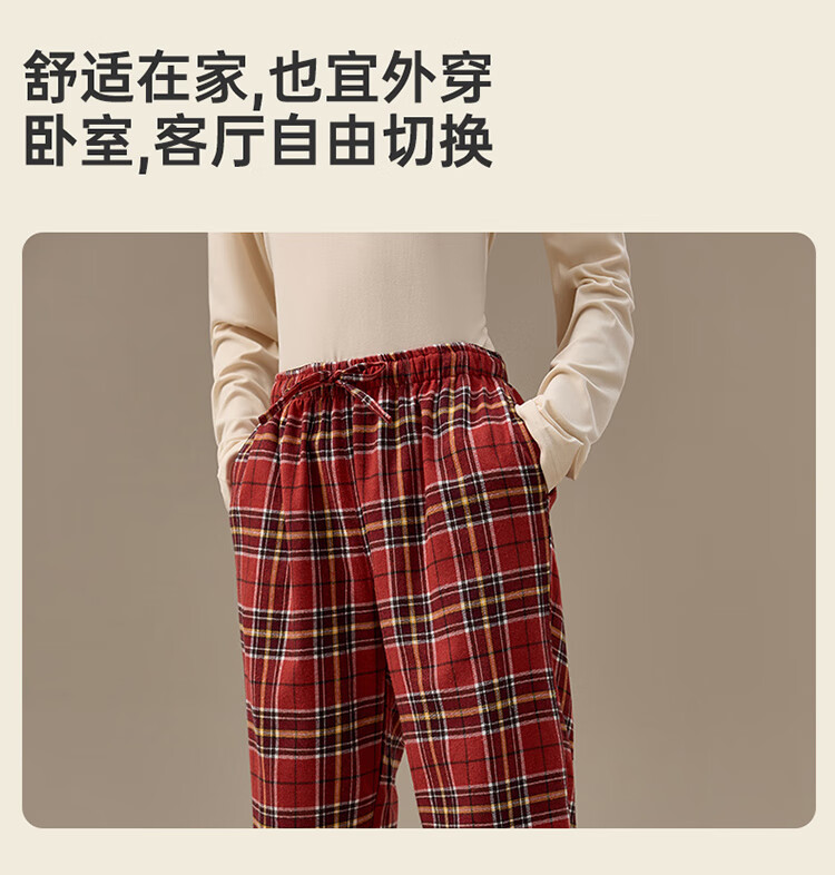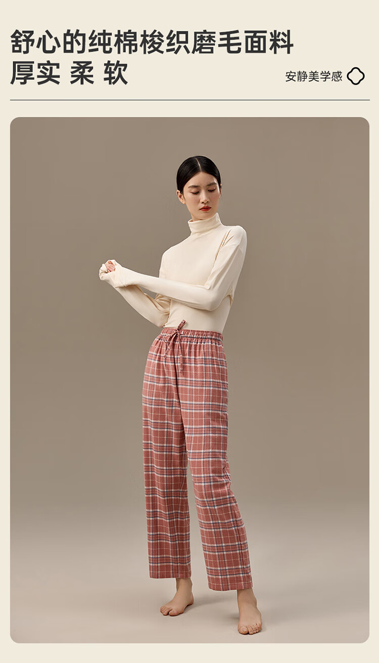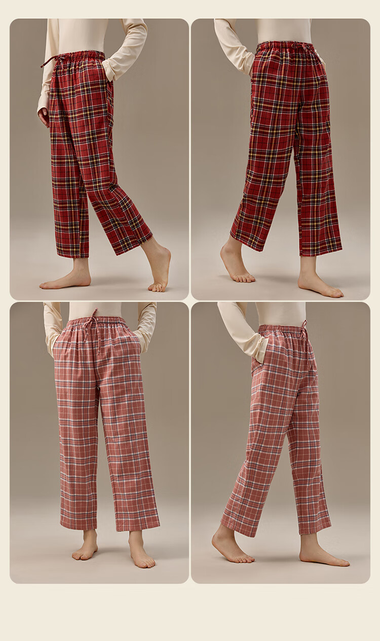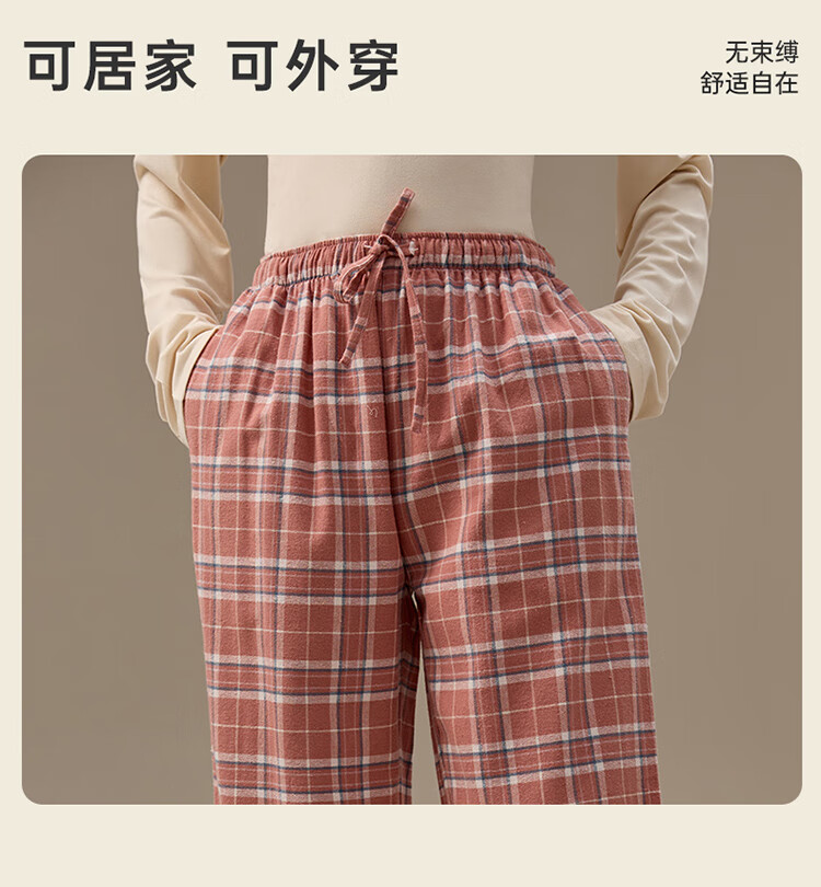 顶瓜瓜顶呱呱睡裤女秋纯棉梭织格可外穿家居长裤单裤女深粉格 175