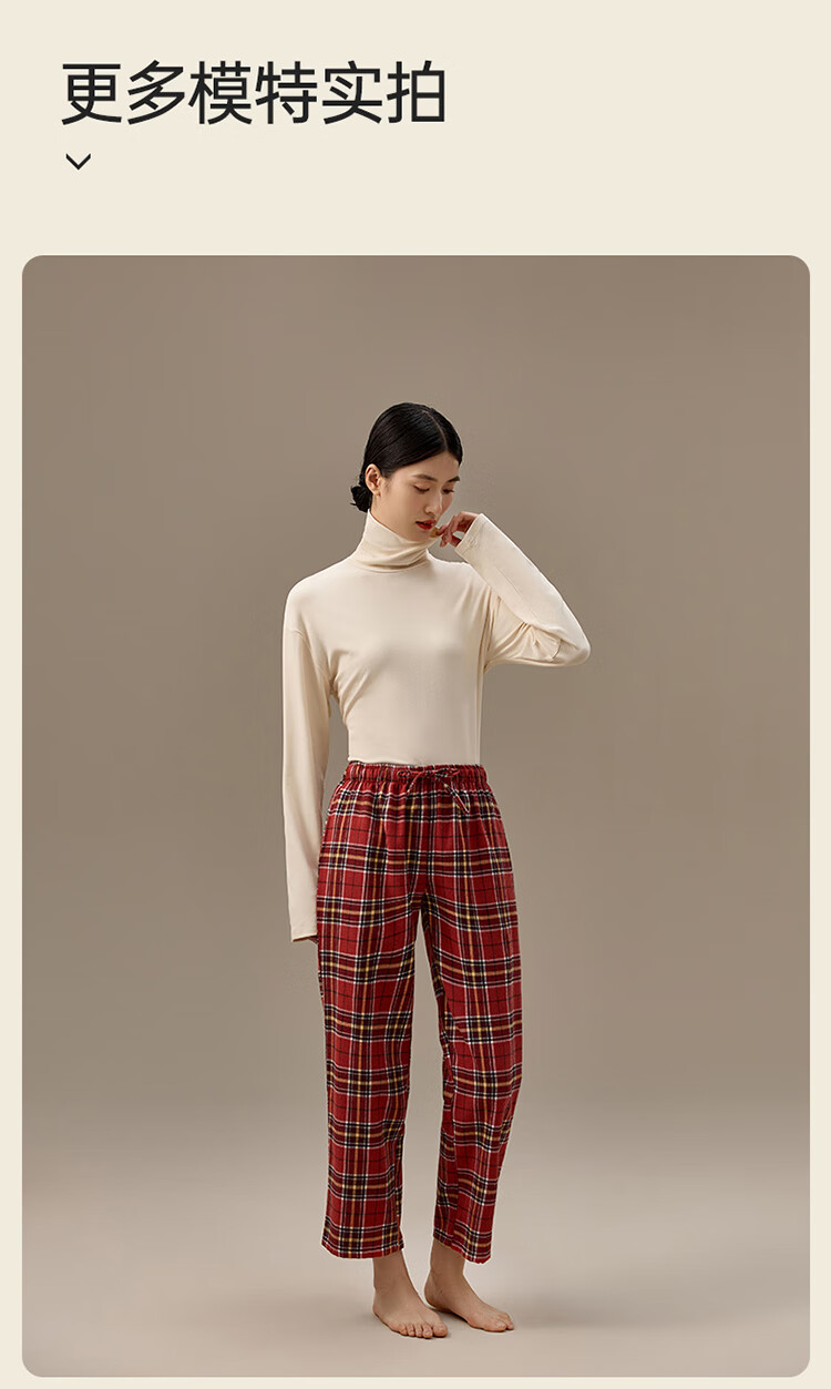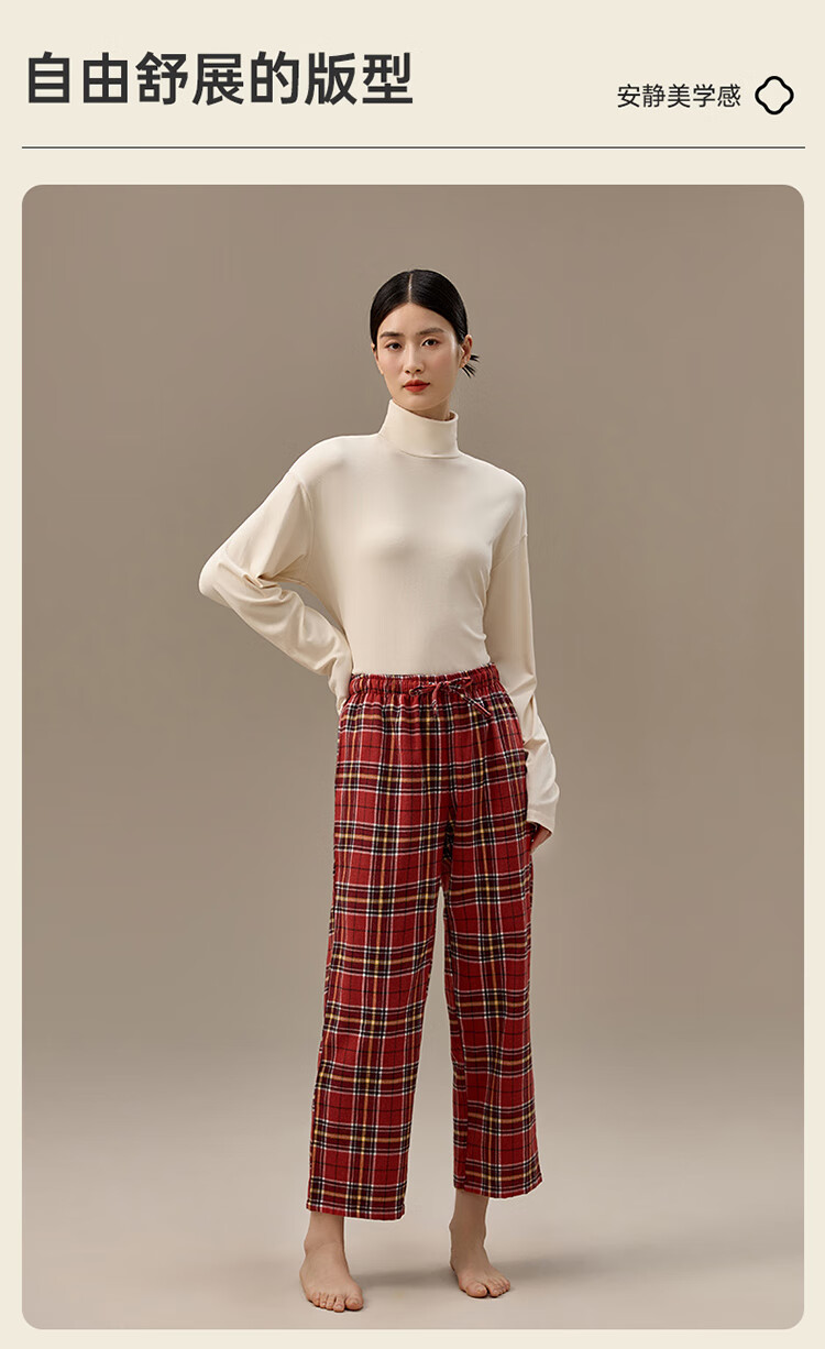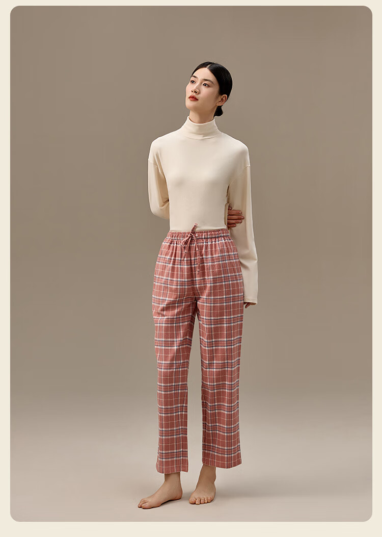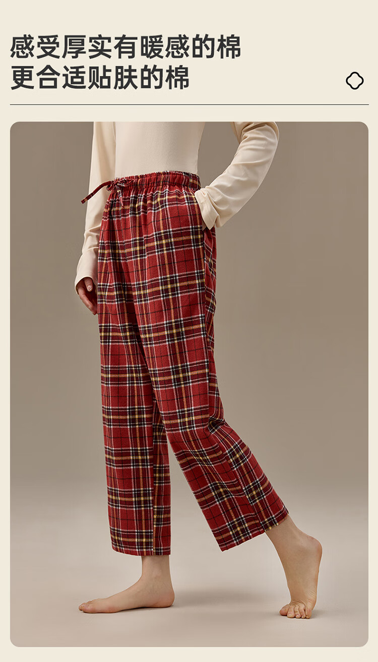 顶瓜瓜顶呱呱睡裤女秋纯棉梭织格可外穿家居长裤单裤女深粉格 175