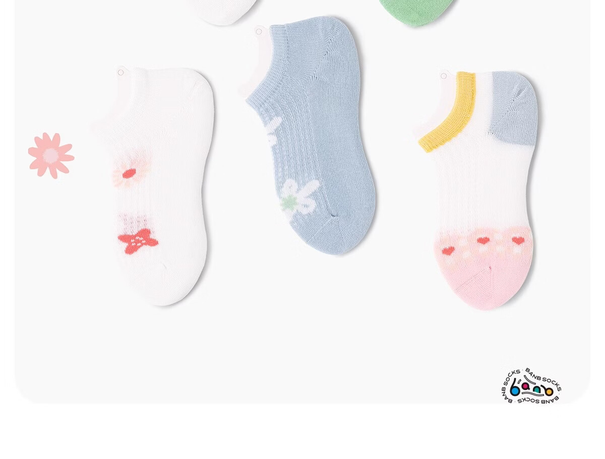 斑比船袜儿童袜子女孩夏天季薄款网眼棉袜中大童隐形短袜子 BB2431 儿童夏季网眼船袜 5双 12岁以上 建议脚码38-42【22-24】