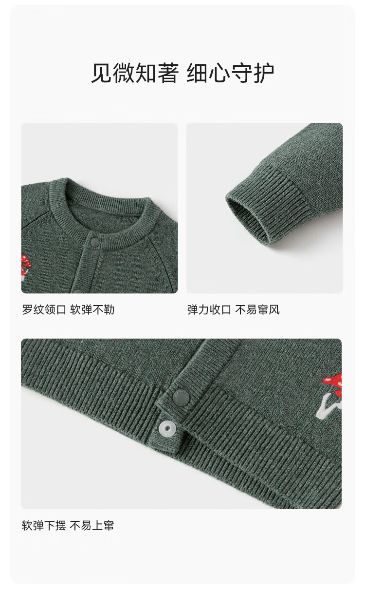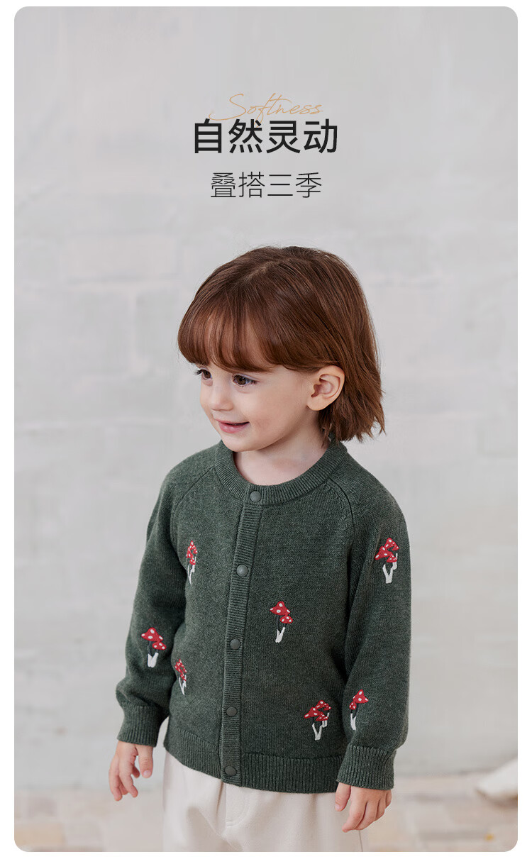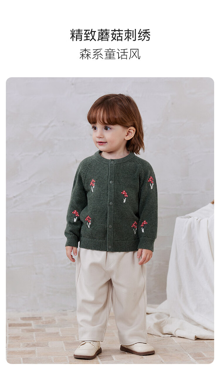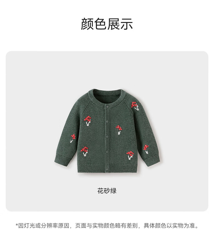 babylove【清仓】婴幼儿针织外套秋冬刺绣外出保暖开衫百搭男女宝宝毛衣 花砂绿 90