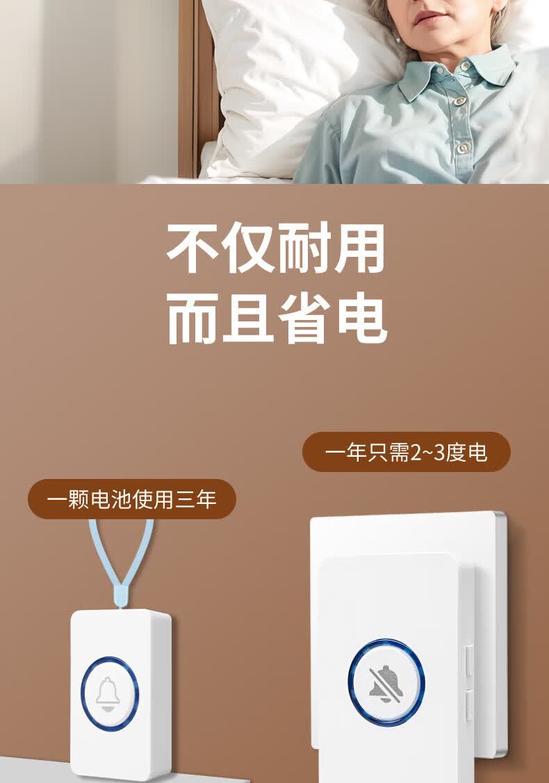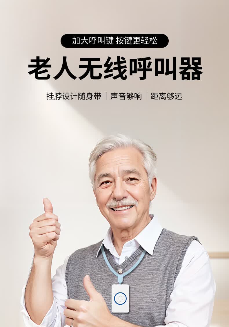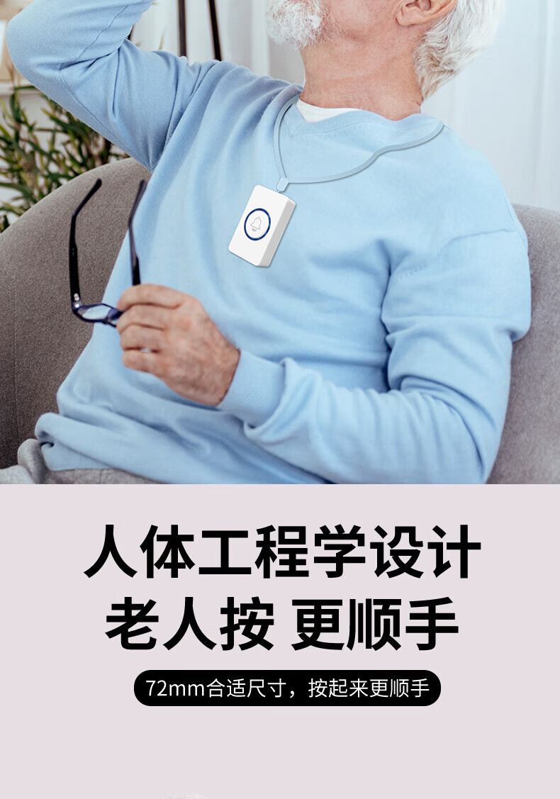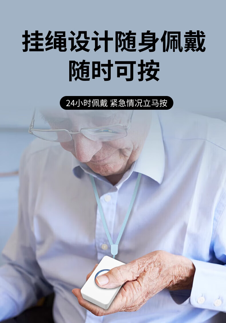 国际电工老人呼叫器无线呼叫铃按铃报警器一键紧急呼救器家用床头按钮电铃 基础款套装【1响铃+1挂绳按键】