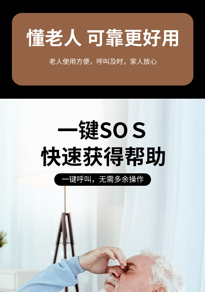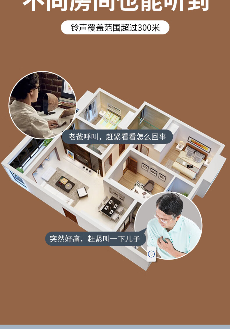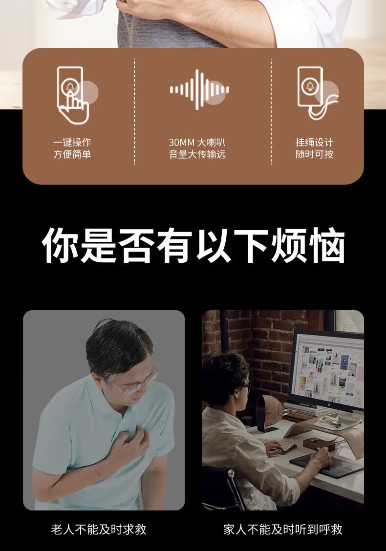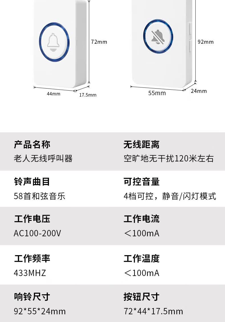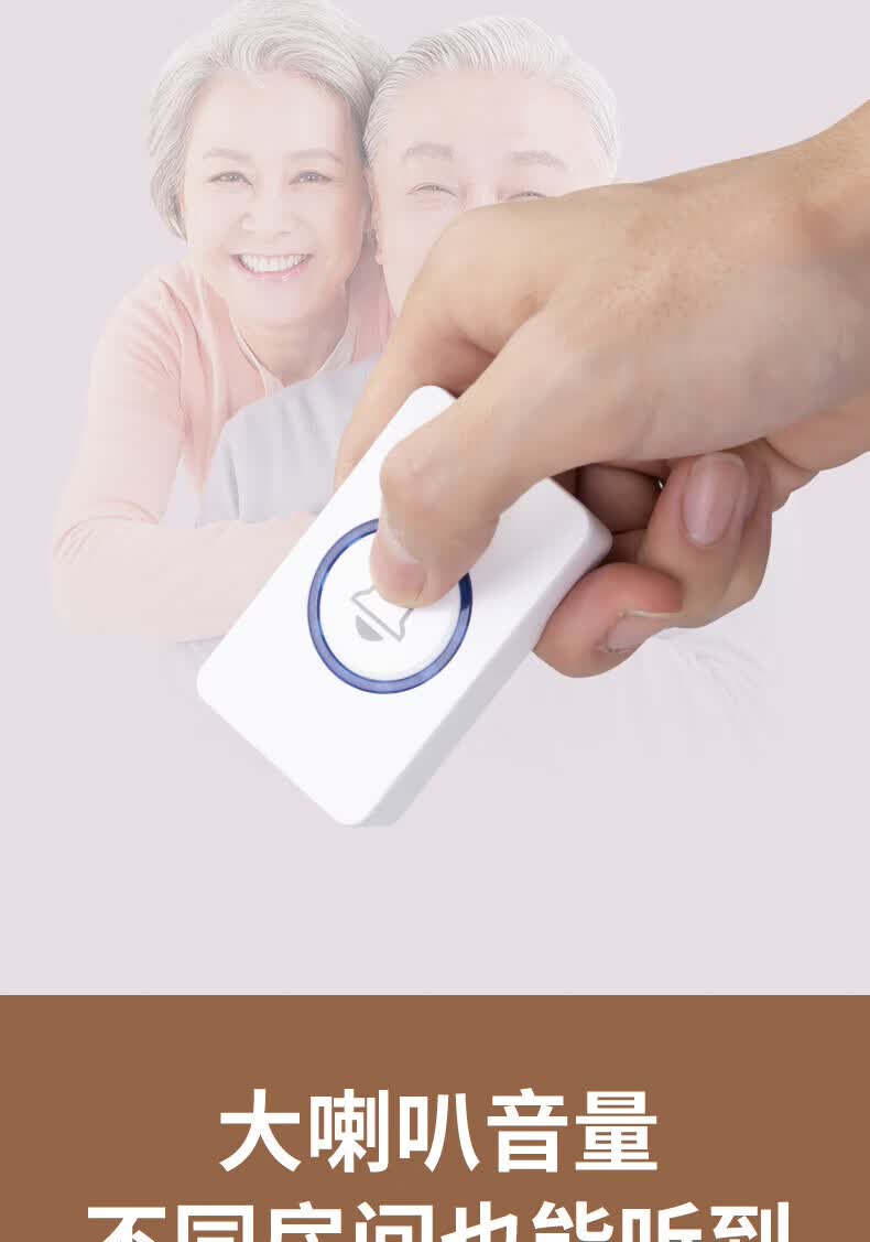 国际电工老人呼叫器无线呼叫铃按铃报警器一键紧急呼救器家用床头按钮电铃 基础款套装【1响铃+1挂绳按键】