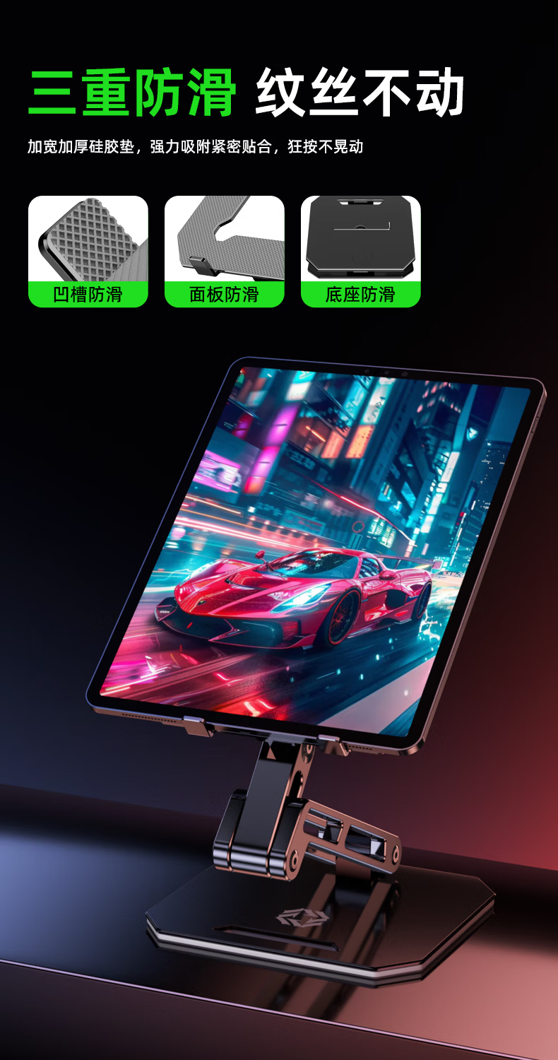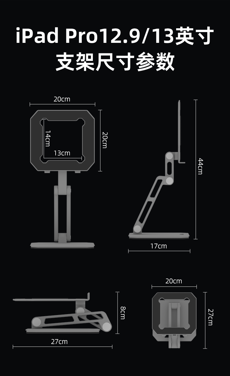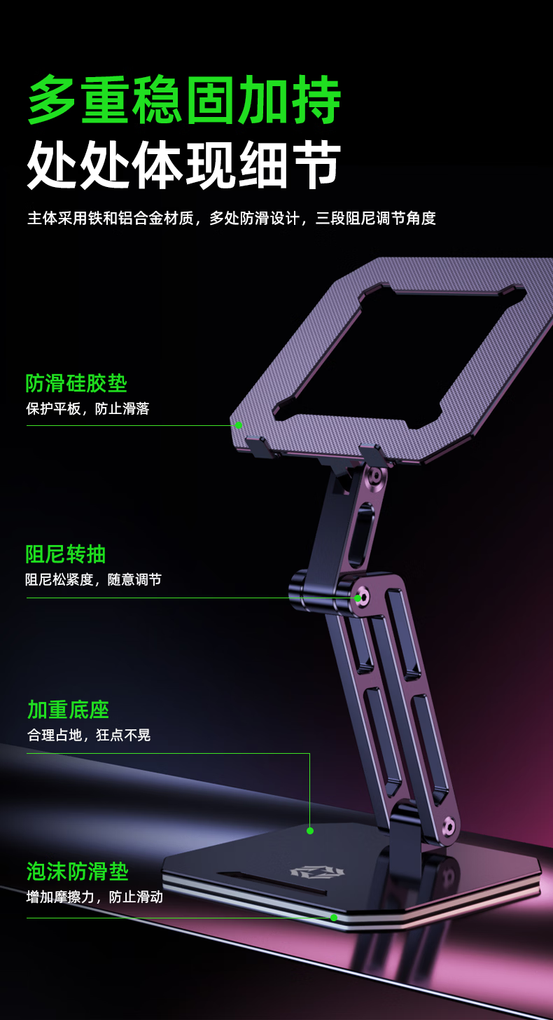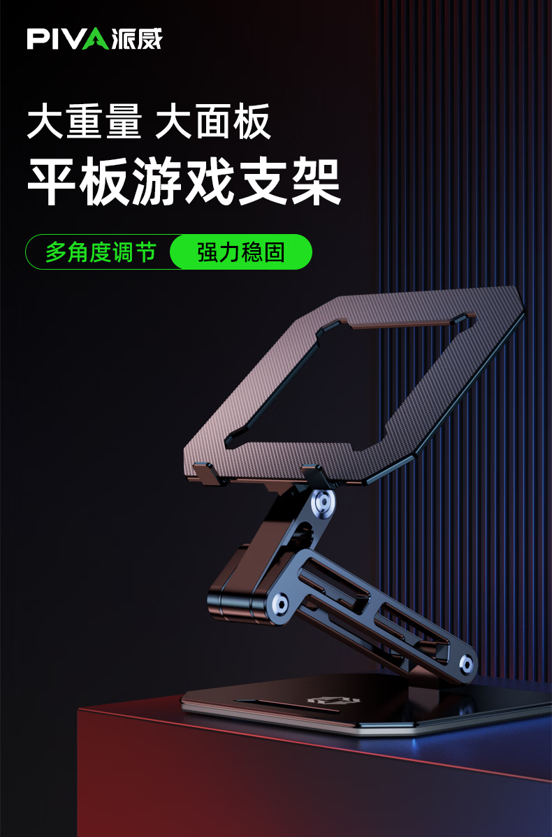 Piva派威ipad平板游戏支架铝合金可升降调节支撑架镂空阻尼加重 黑色Plus款iPadPro12.9寸通用