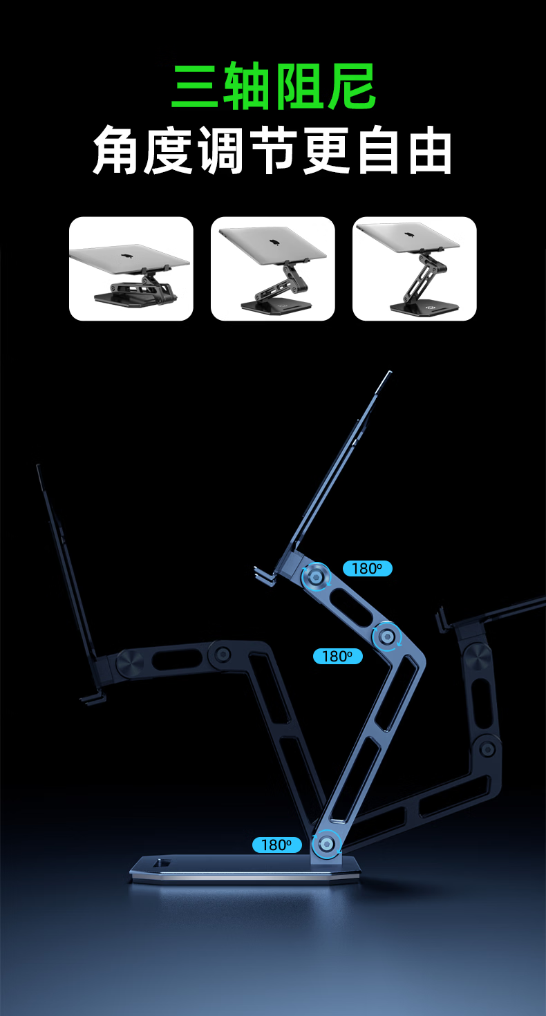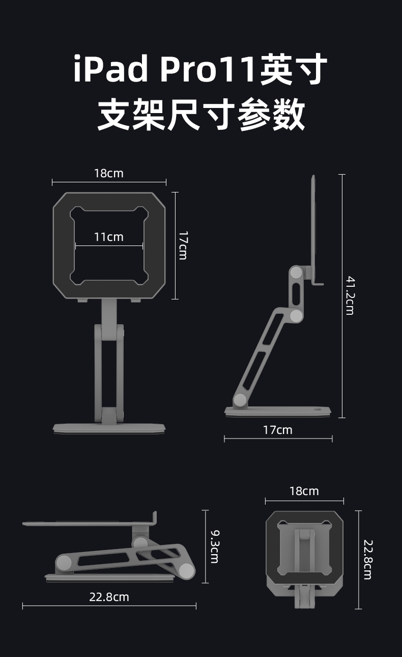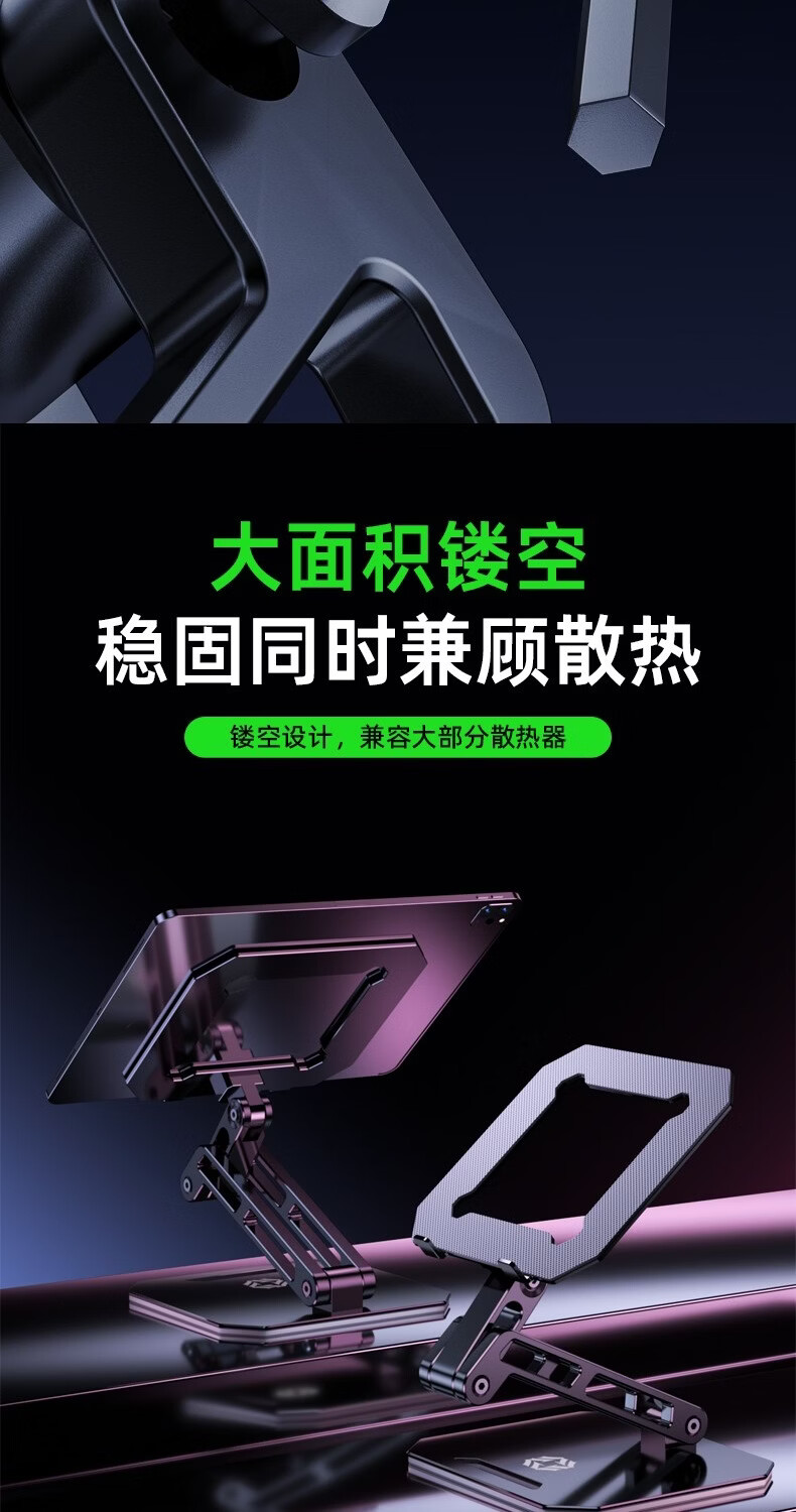 Piva派威ipad平板游戏支架铝合金可升降调节支撑架镂空阻尼加重 黑色Plus款iPadPro12.9寸通用