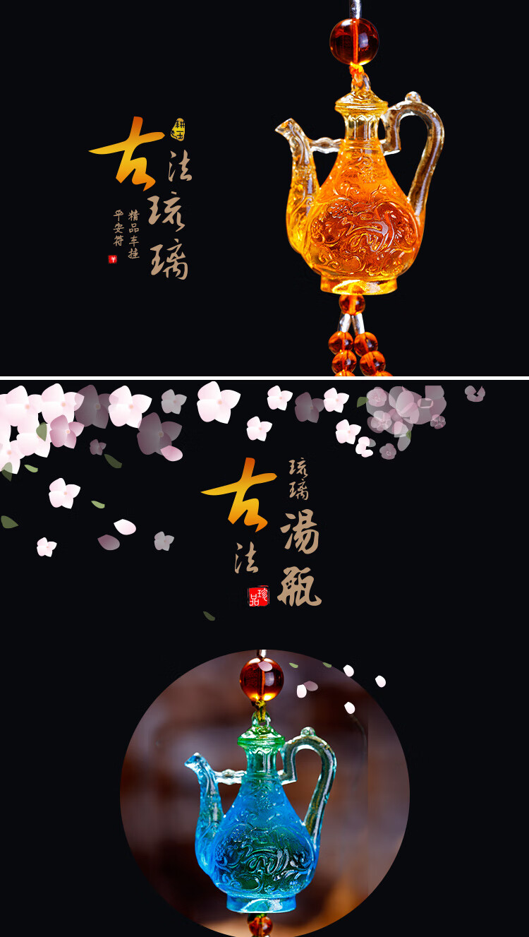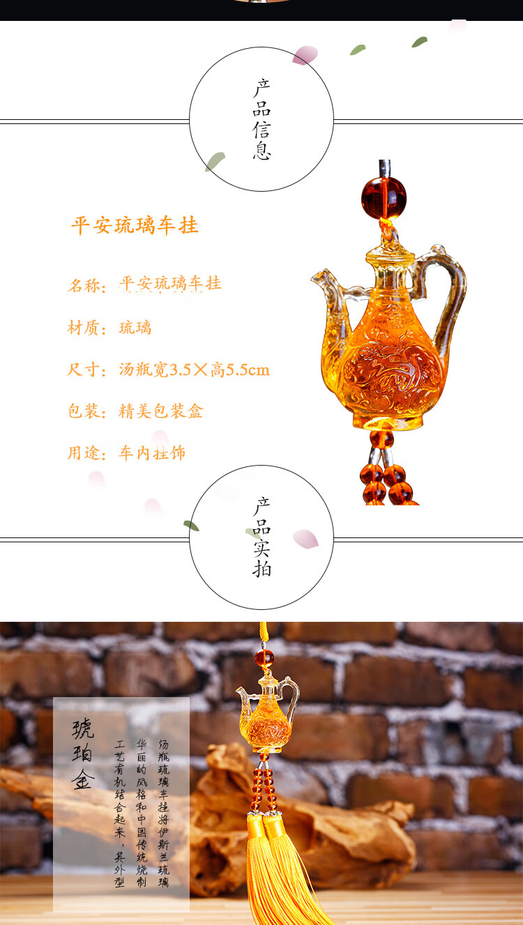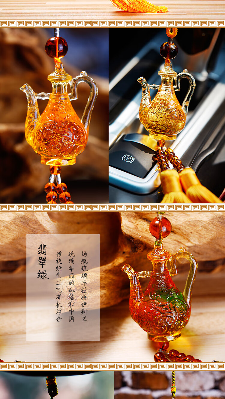 更羽 回民用品 回族礼品 琉璃车挂 创意吊饰品装饰掉件 送朋友生日礼 古法琉璃车挂汤瓶车挂
