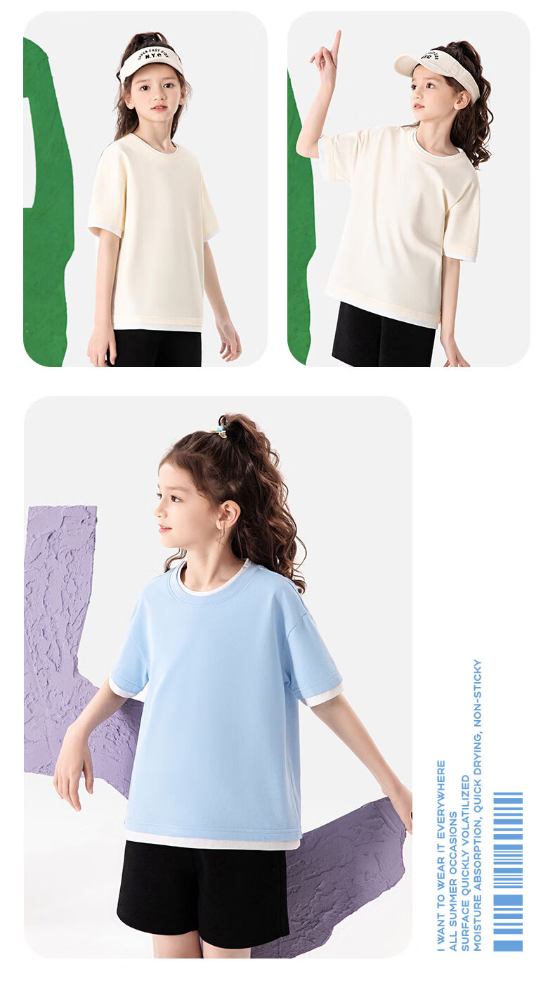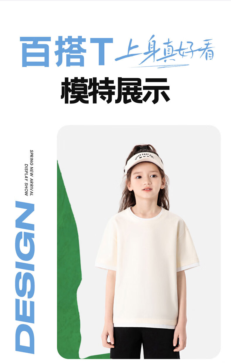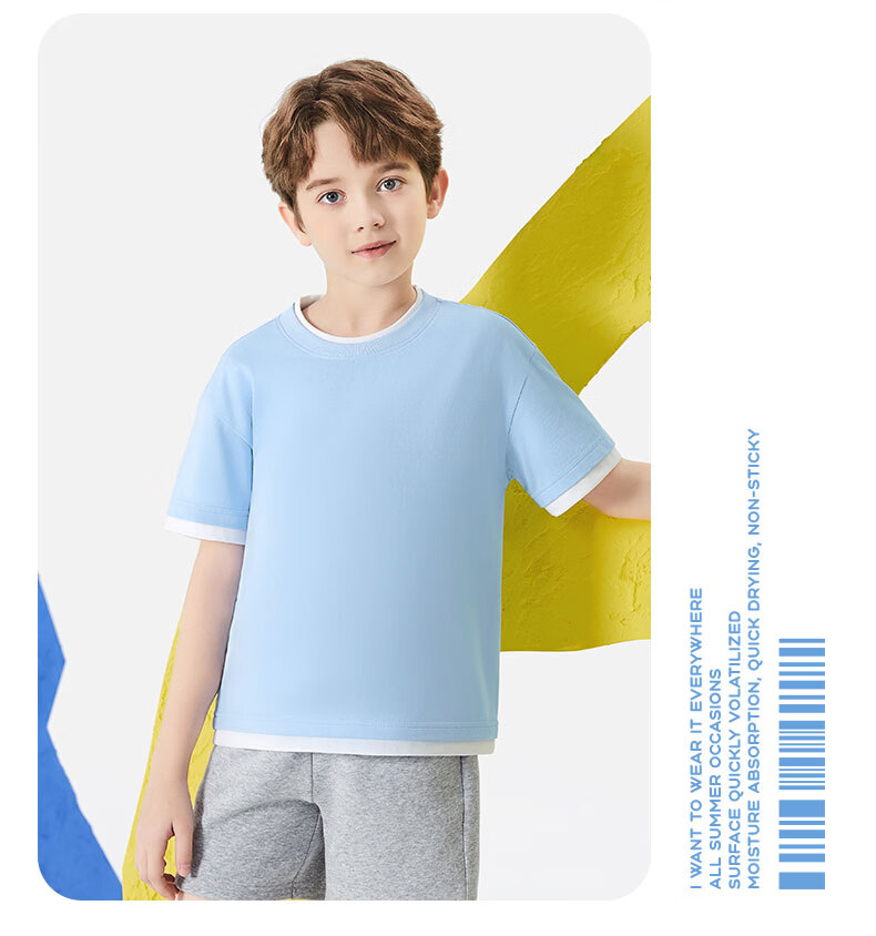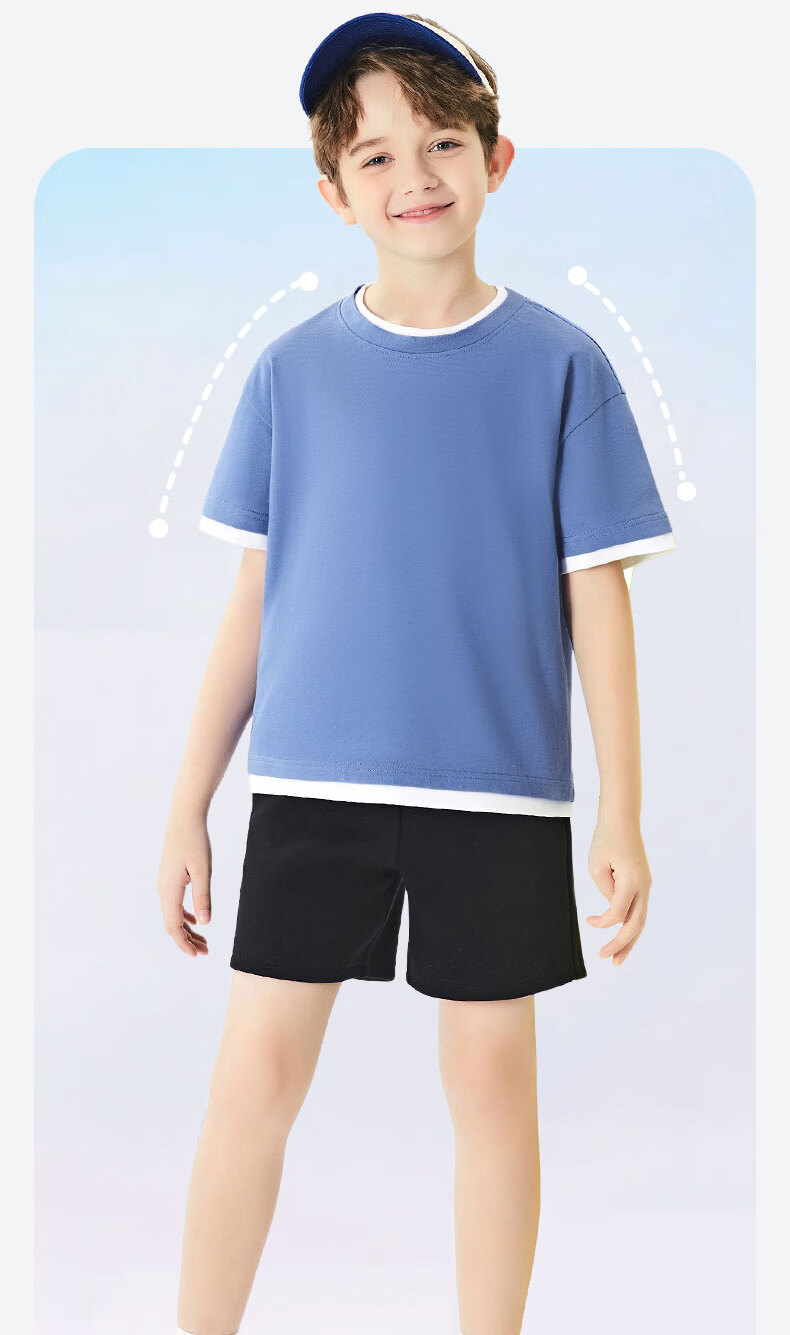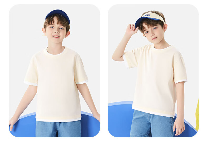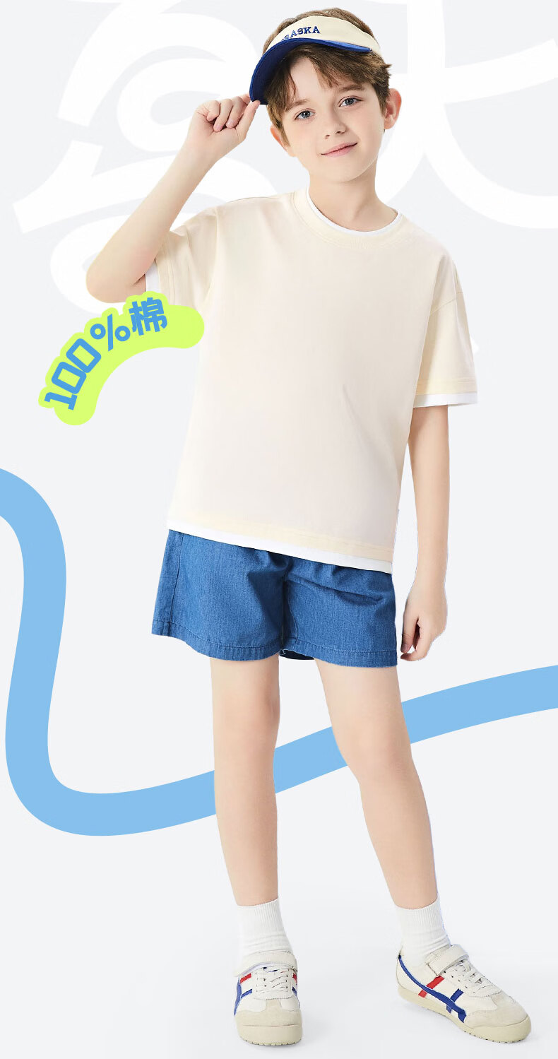 班尼路(Baleno)童装儿童短袖男童纯棉t恤女童夏季圆领上衣薄款假两件2026新款 米白 110
