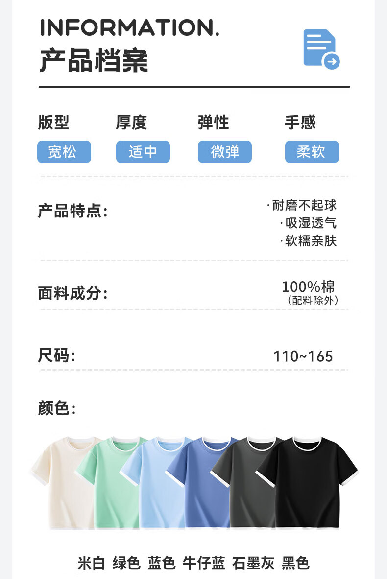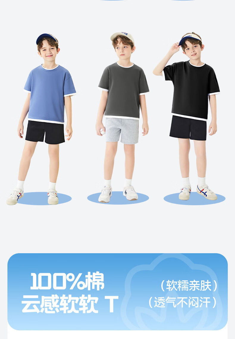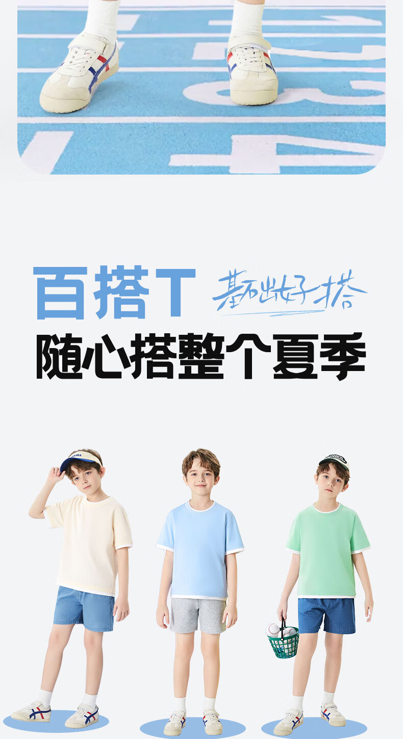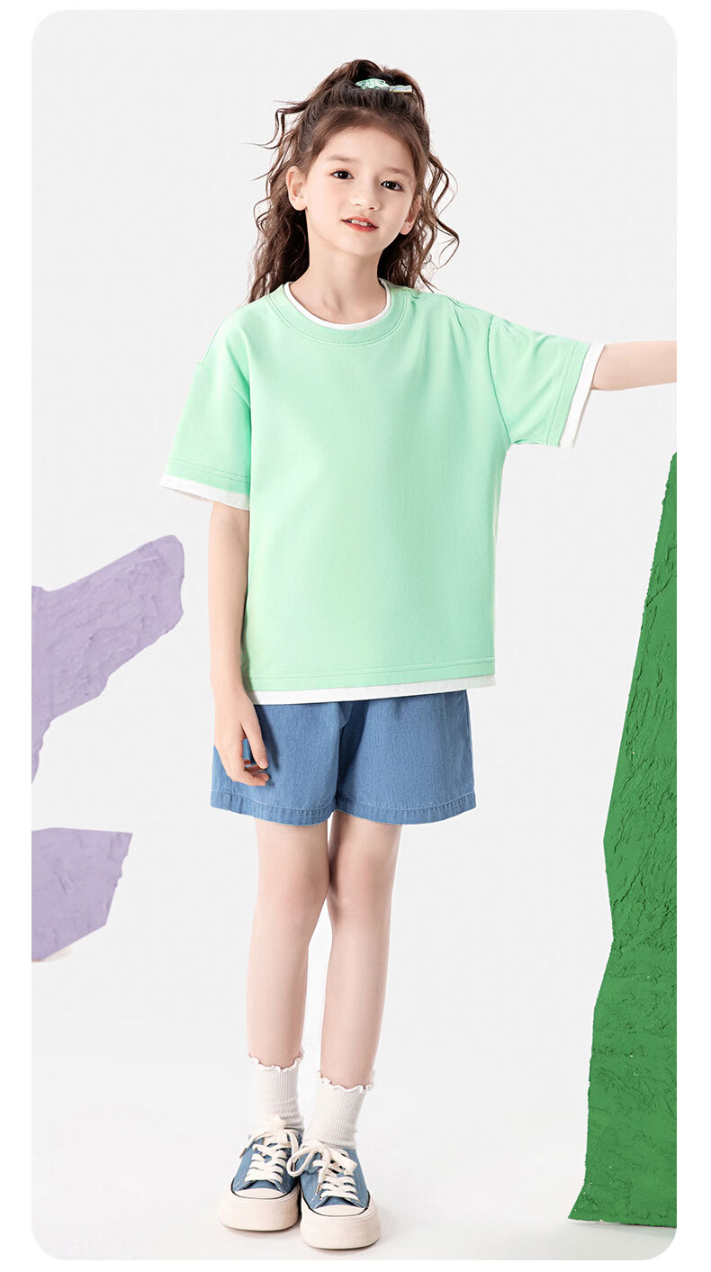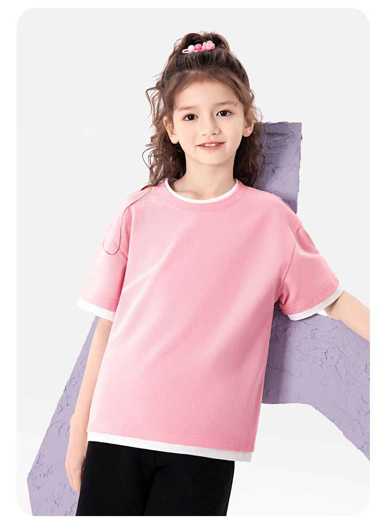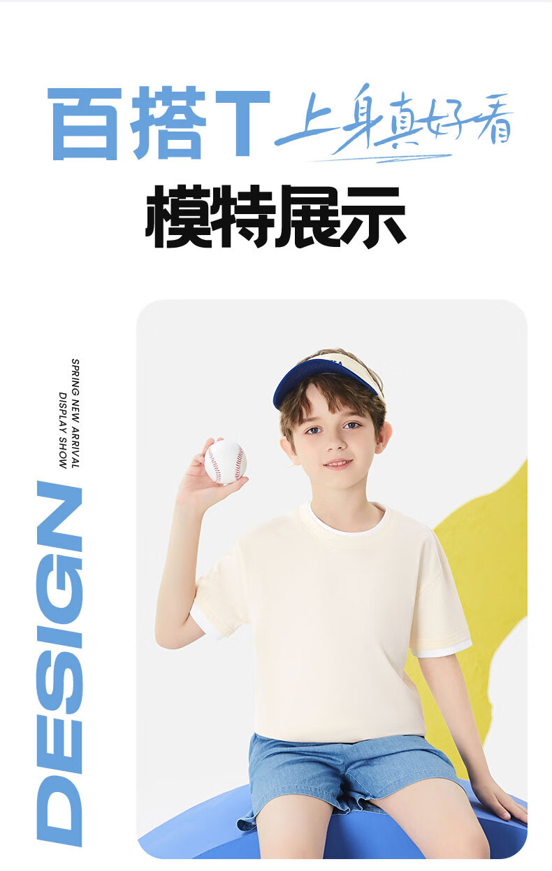 班尼路(Baleno)童装儿童短袖男童纯棉t恤女童夏季圆领上衣薄款假两件2026新款 米白 110