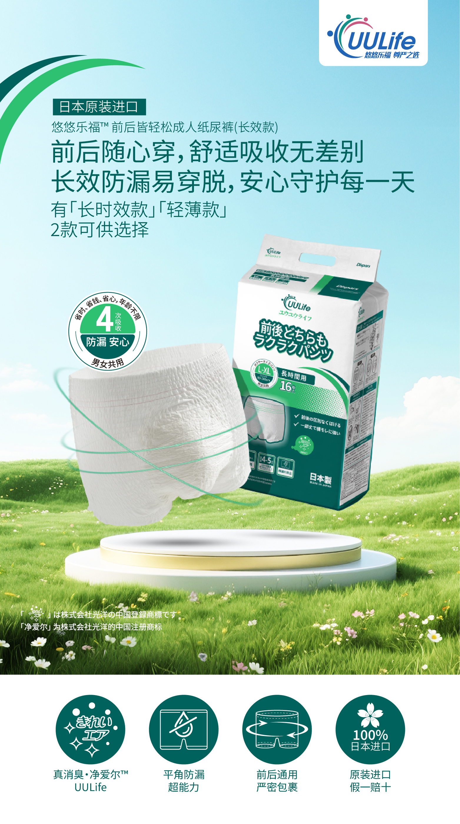 UULife长效款成人纸尿裤日本原装进口拉拉裤夜用安睡防漏平角裤 M码-2片-试用装(腰围60~90cm/体重100~150斤) 长效款夜用拉拉裤