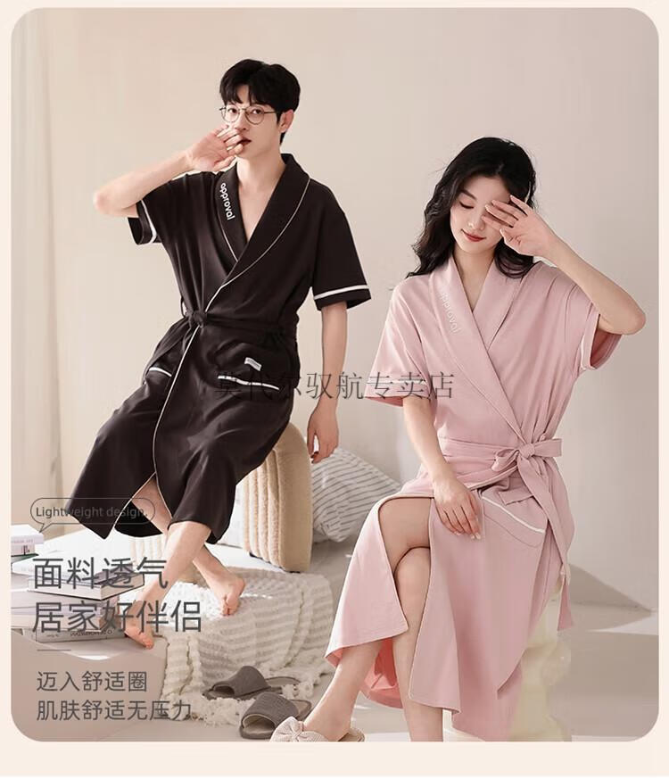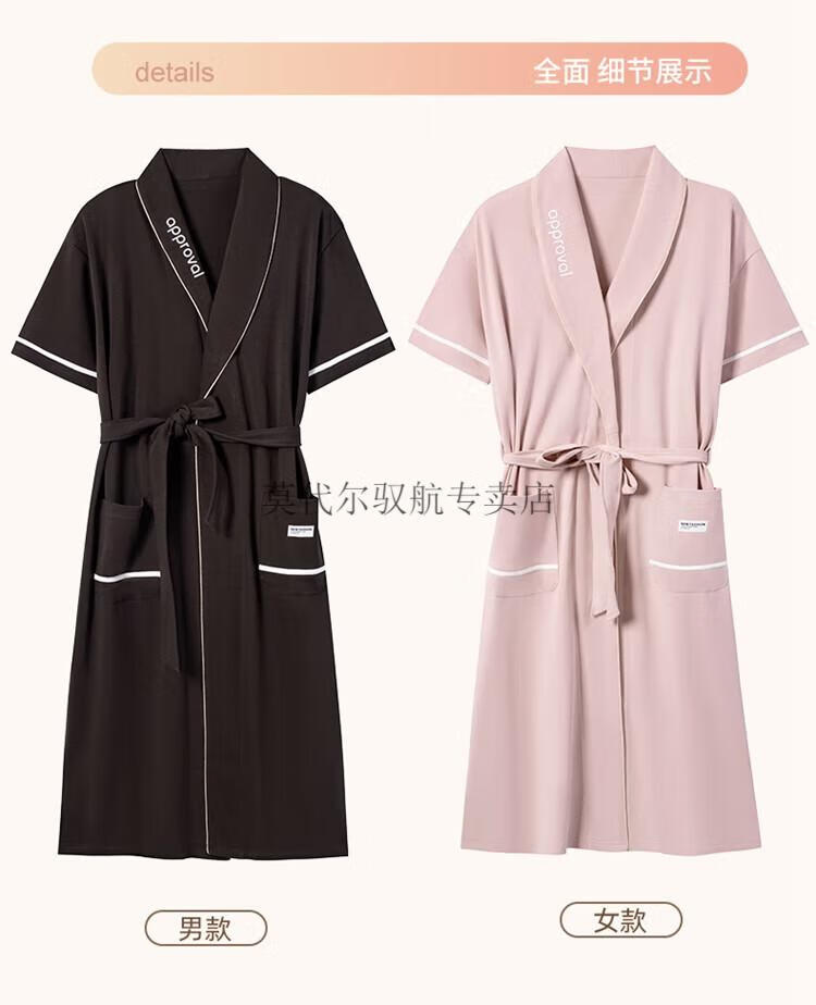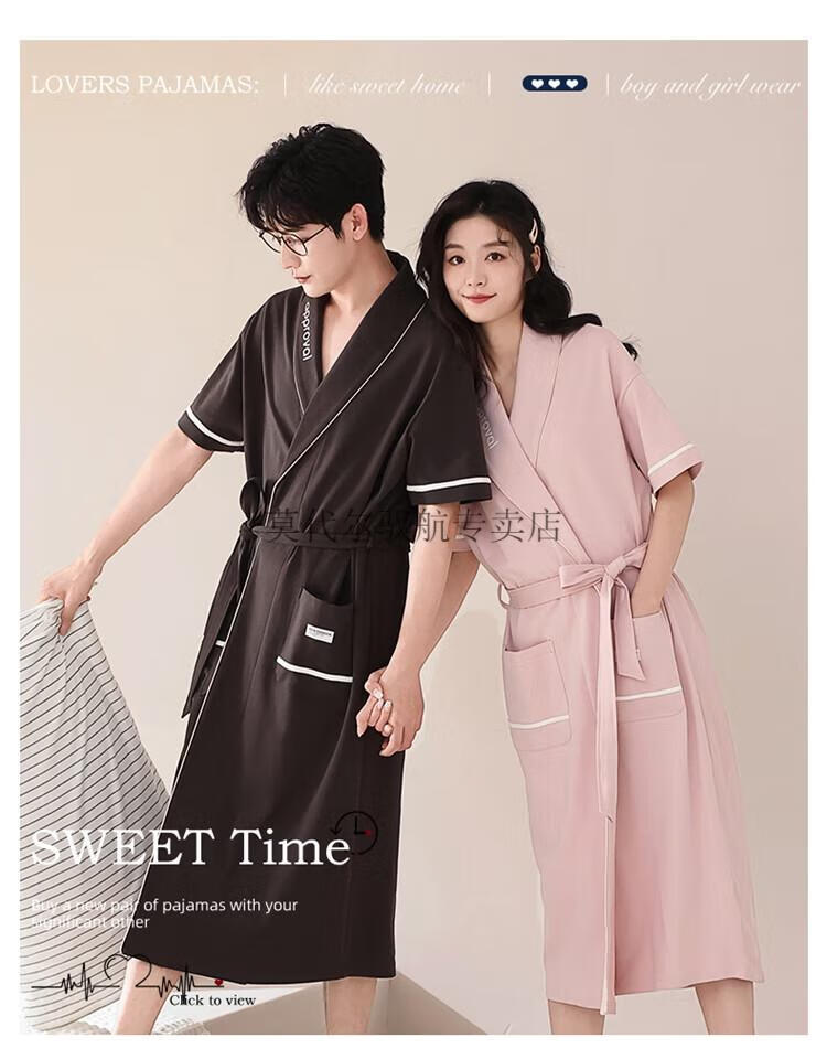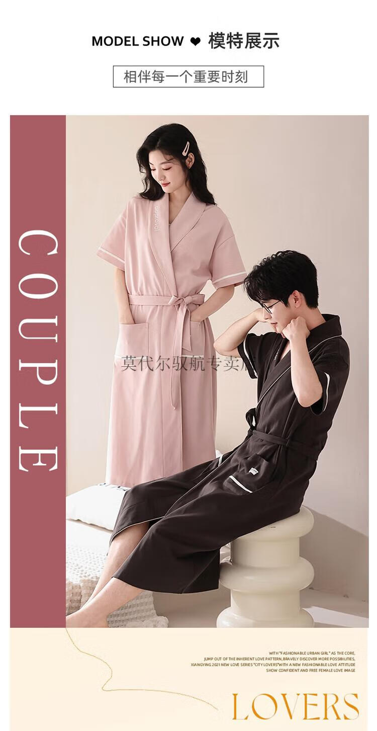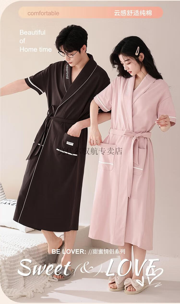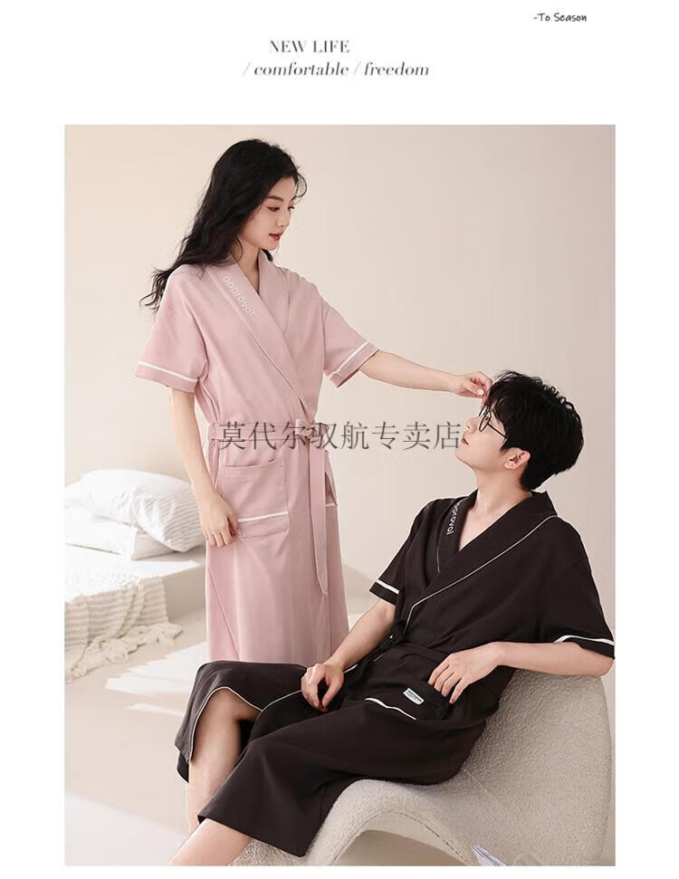 莫代尔睡袍女士夏季纯棉短袖情侣睡衣2025新款男士大码长款浴袍家居服 KL24173情侣 M 女+男3XL