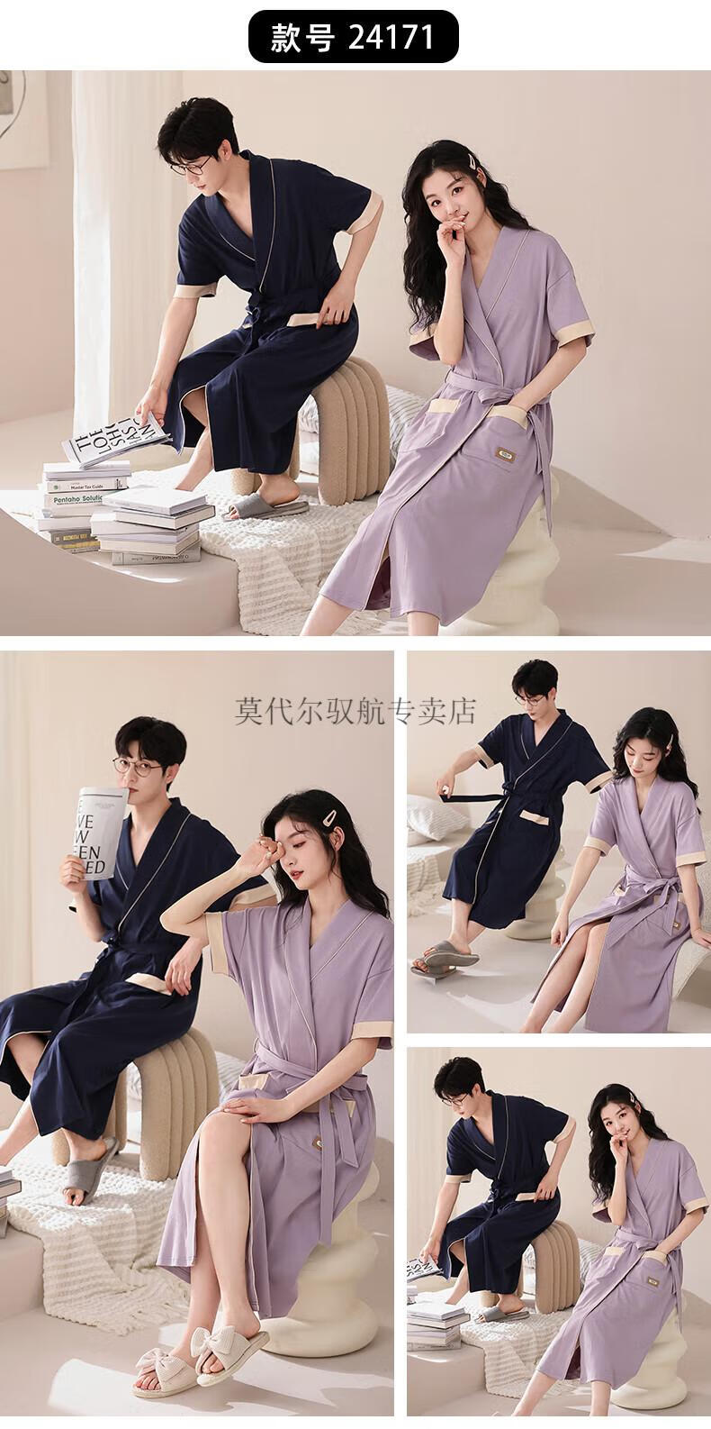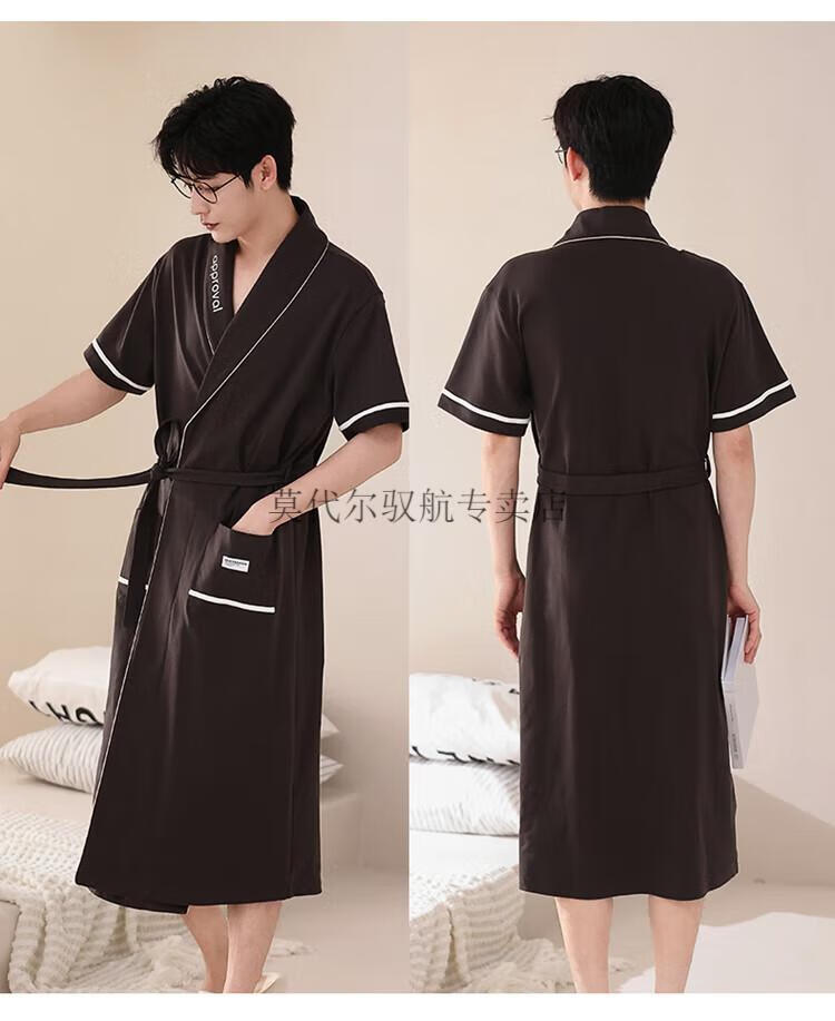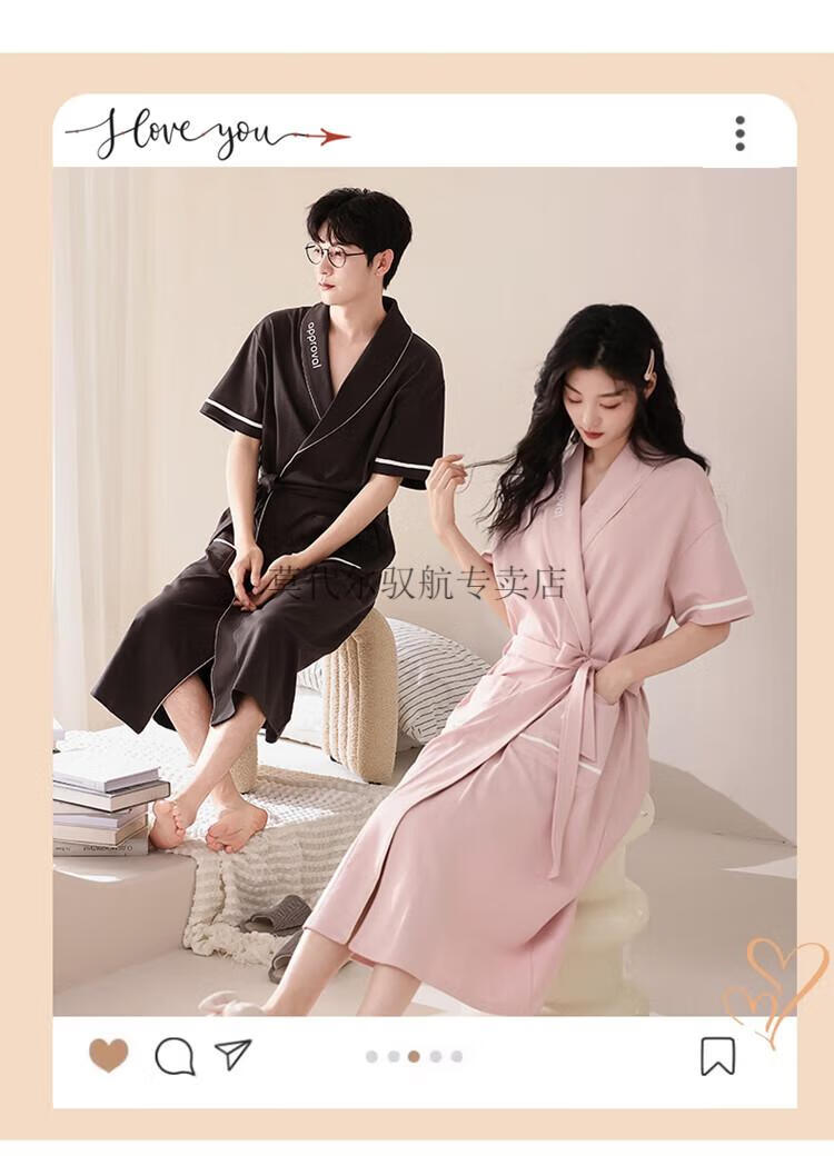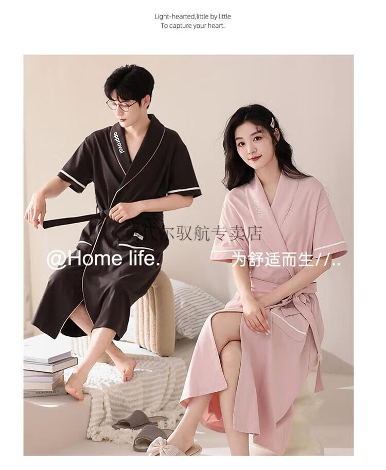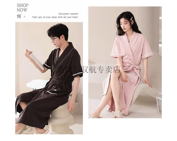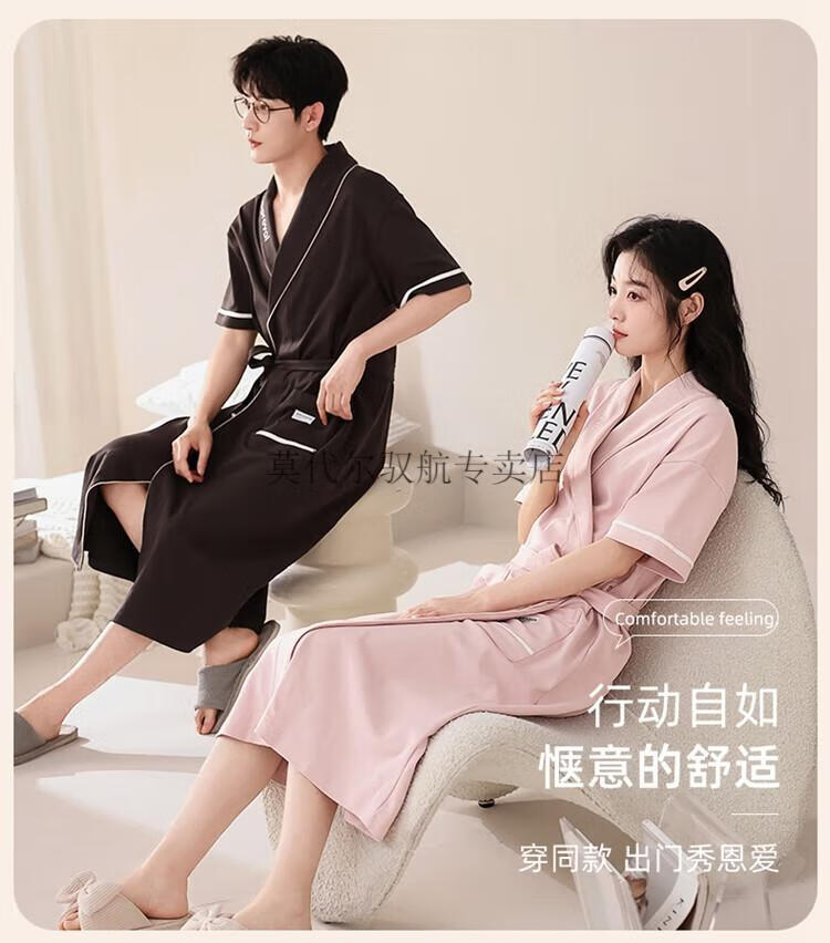 莫代尔睡袍女士夏季纯棉短袖情侣睡衣2025新款男士大码长款浴袍家居服 KL24173情侣 M 女+男3XL