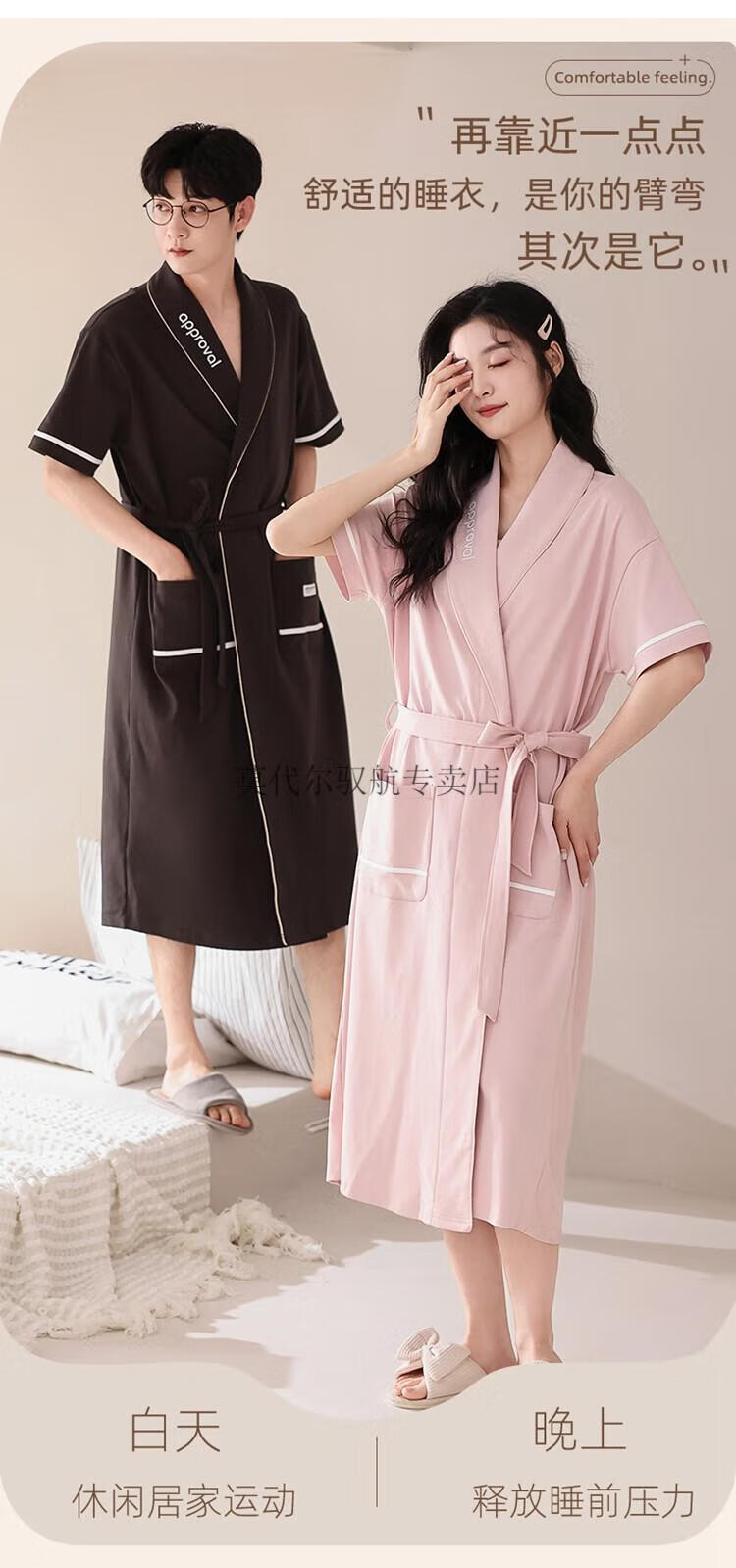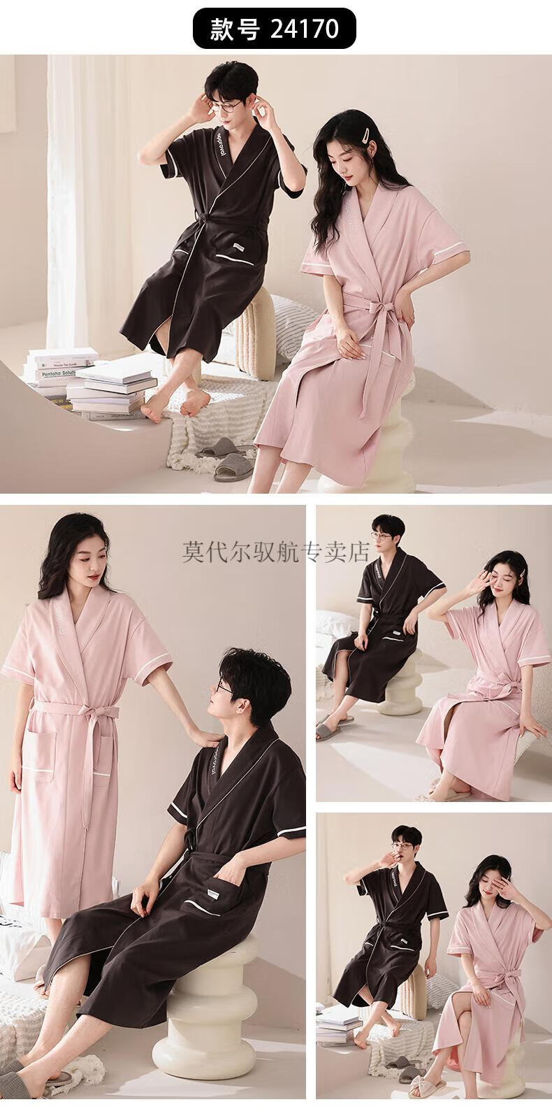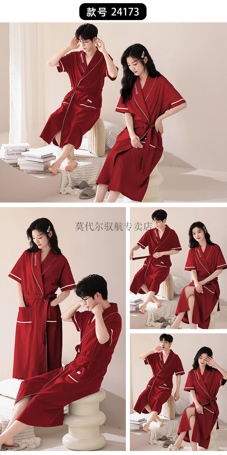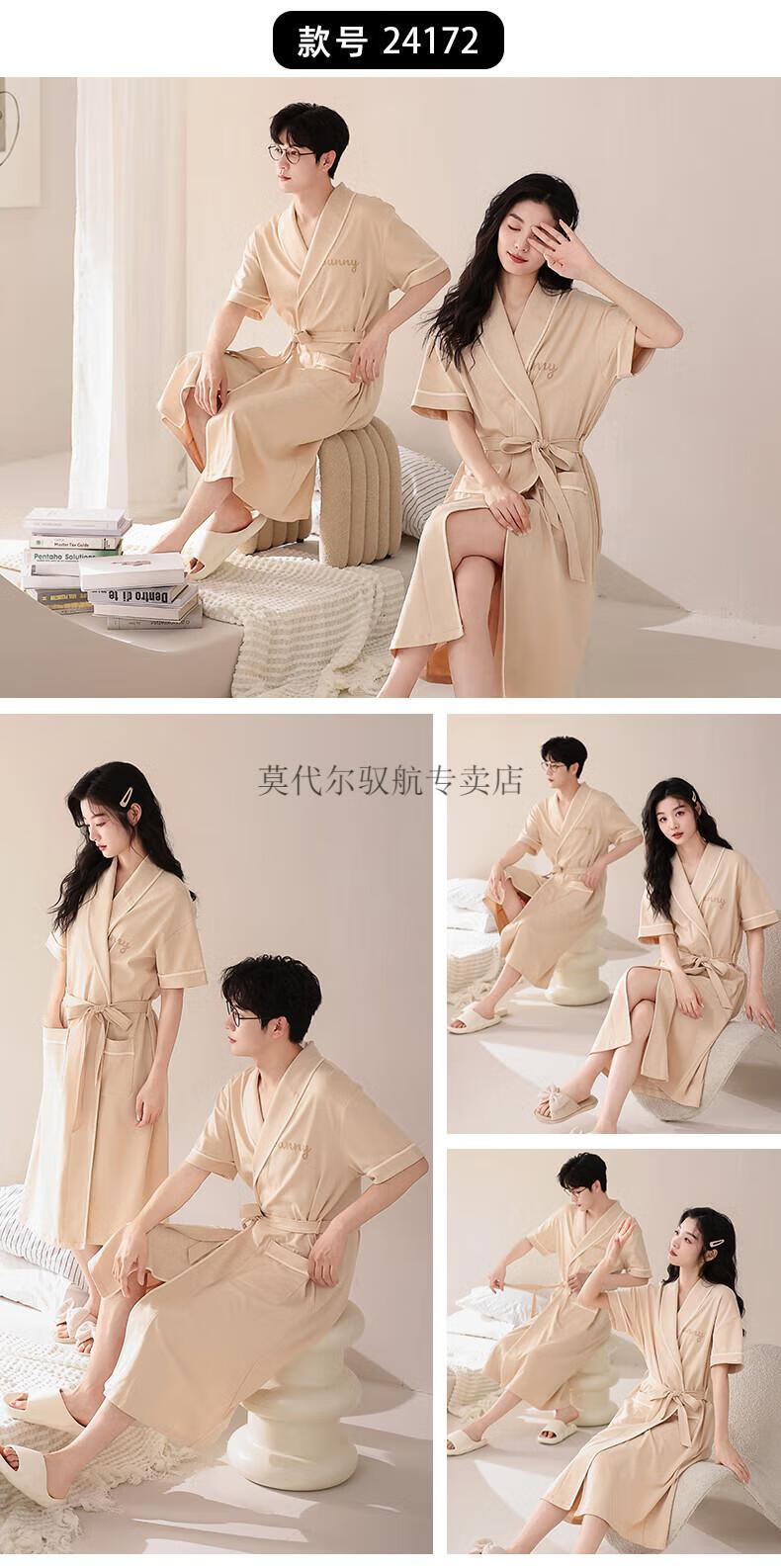 莫代尔睡袍女士夏季纯棉短袖情侣睡衣2025新款男士大码长款浴袍家居服 KL24173情侣 M 女+男3XL