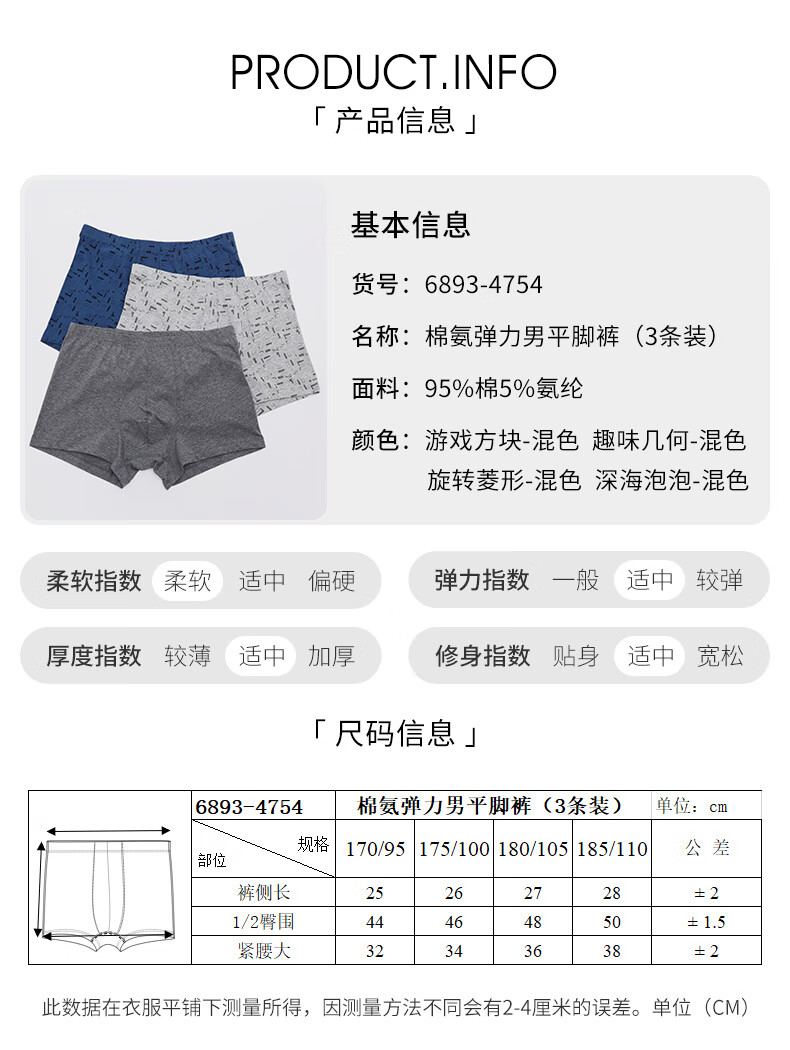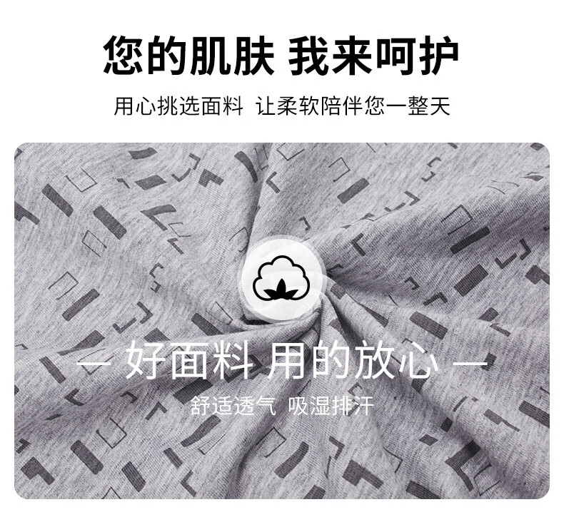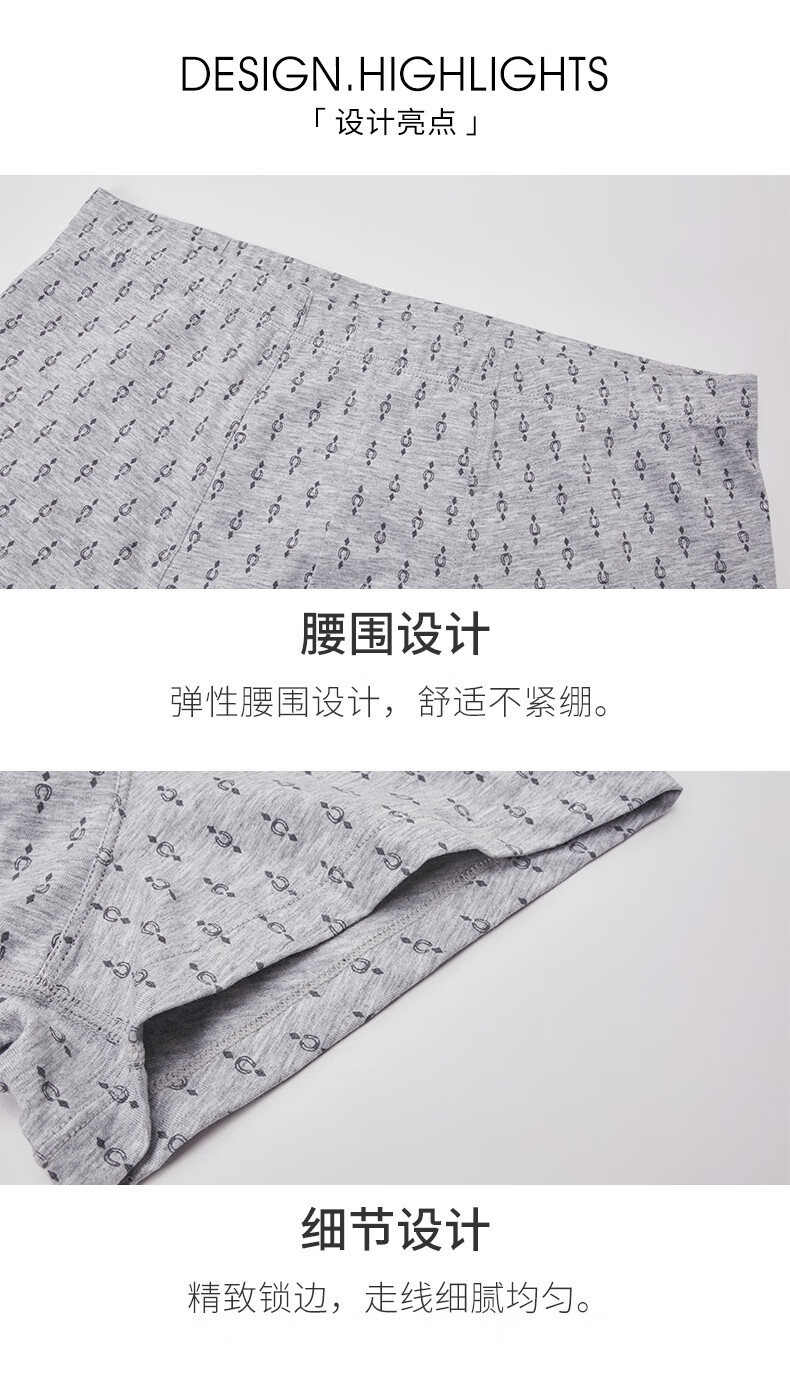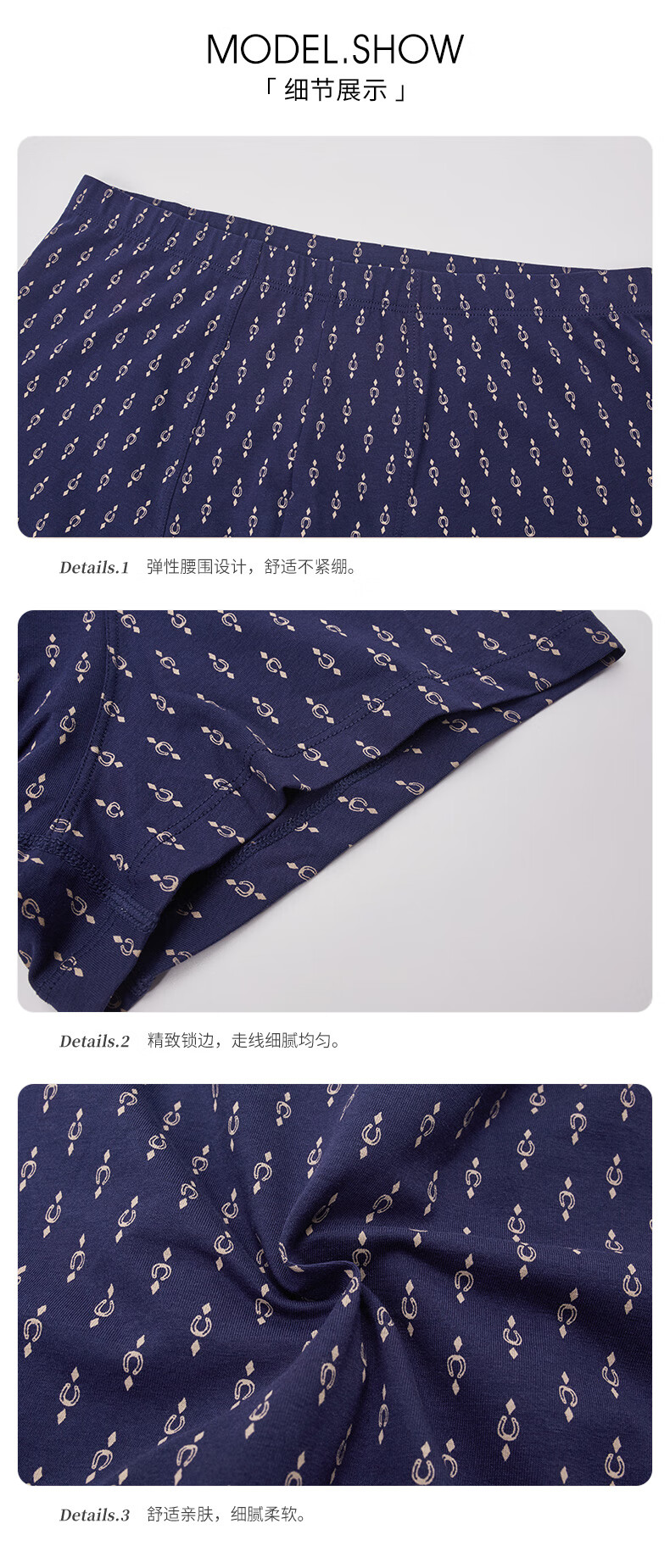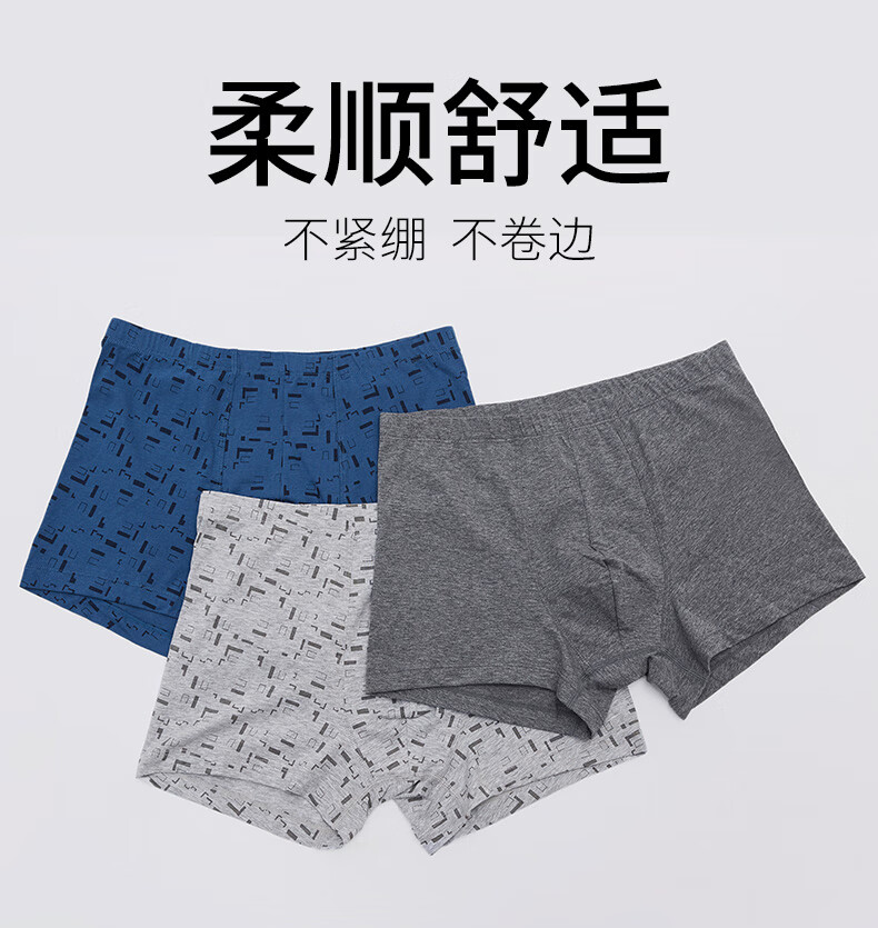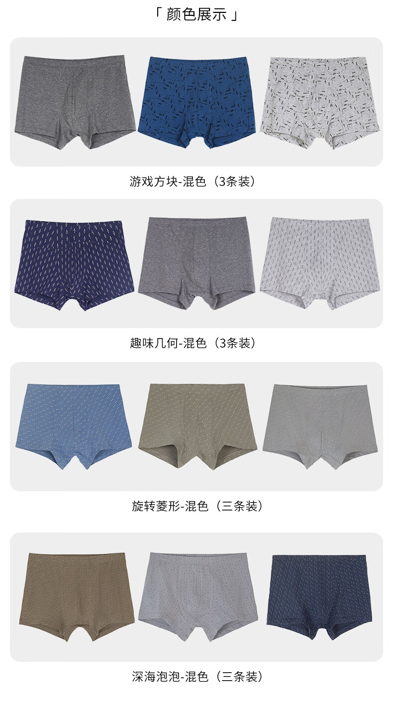 铜牛棉氨弹力男士平脚裤(3条装)混色印花舒适内裤男平角裤NC033 交错波点-混色 3条 L (170/95)