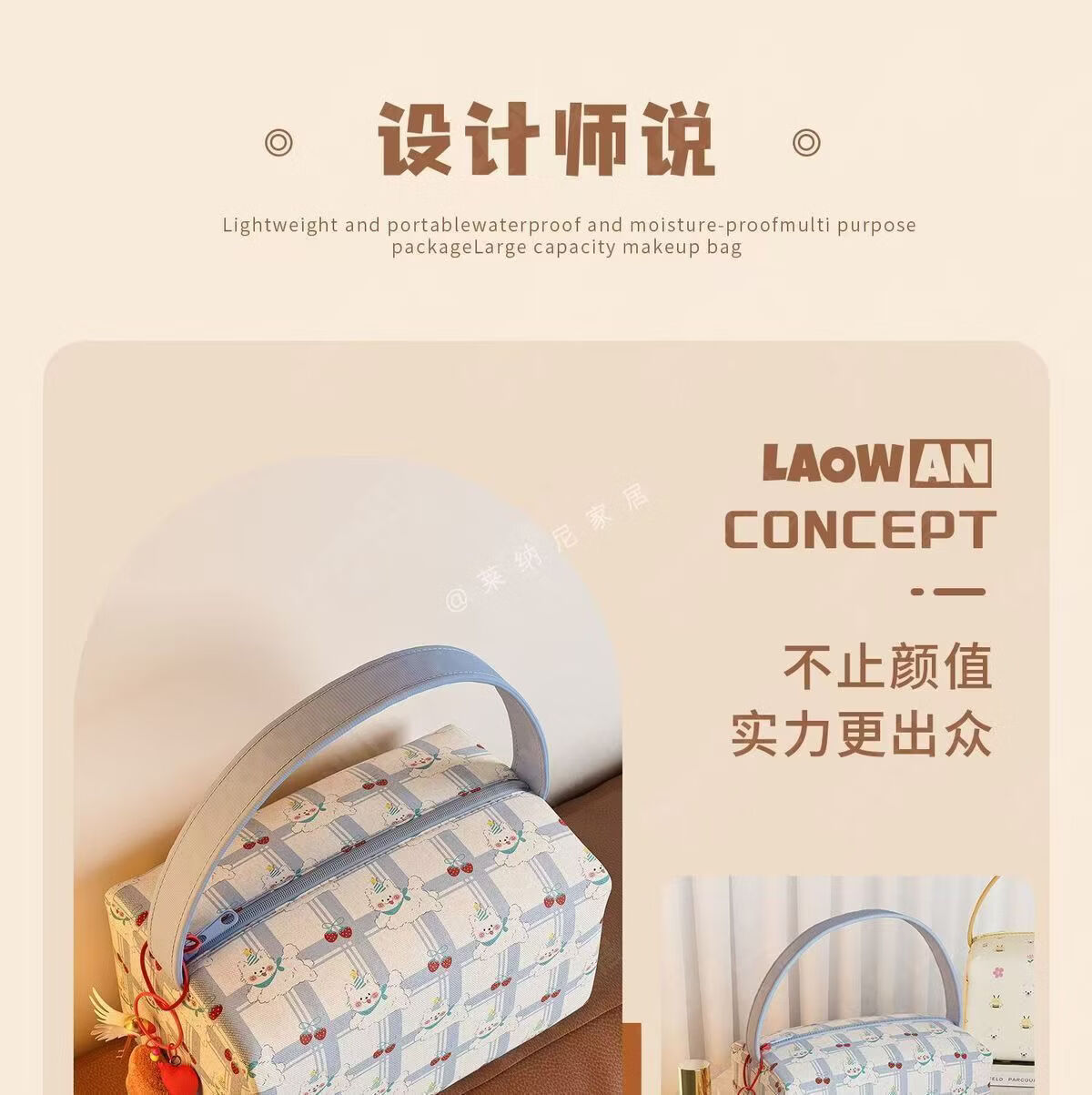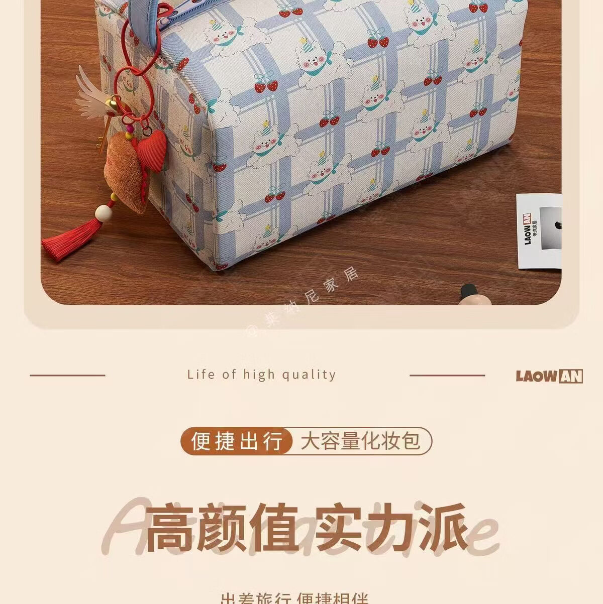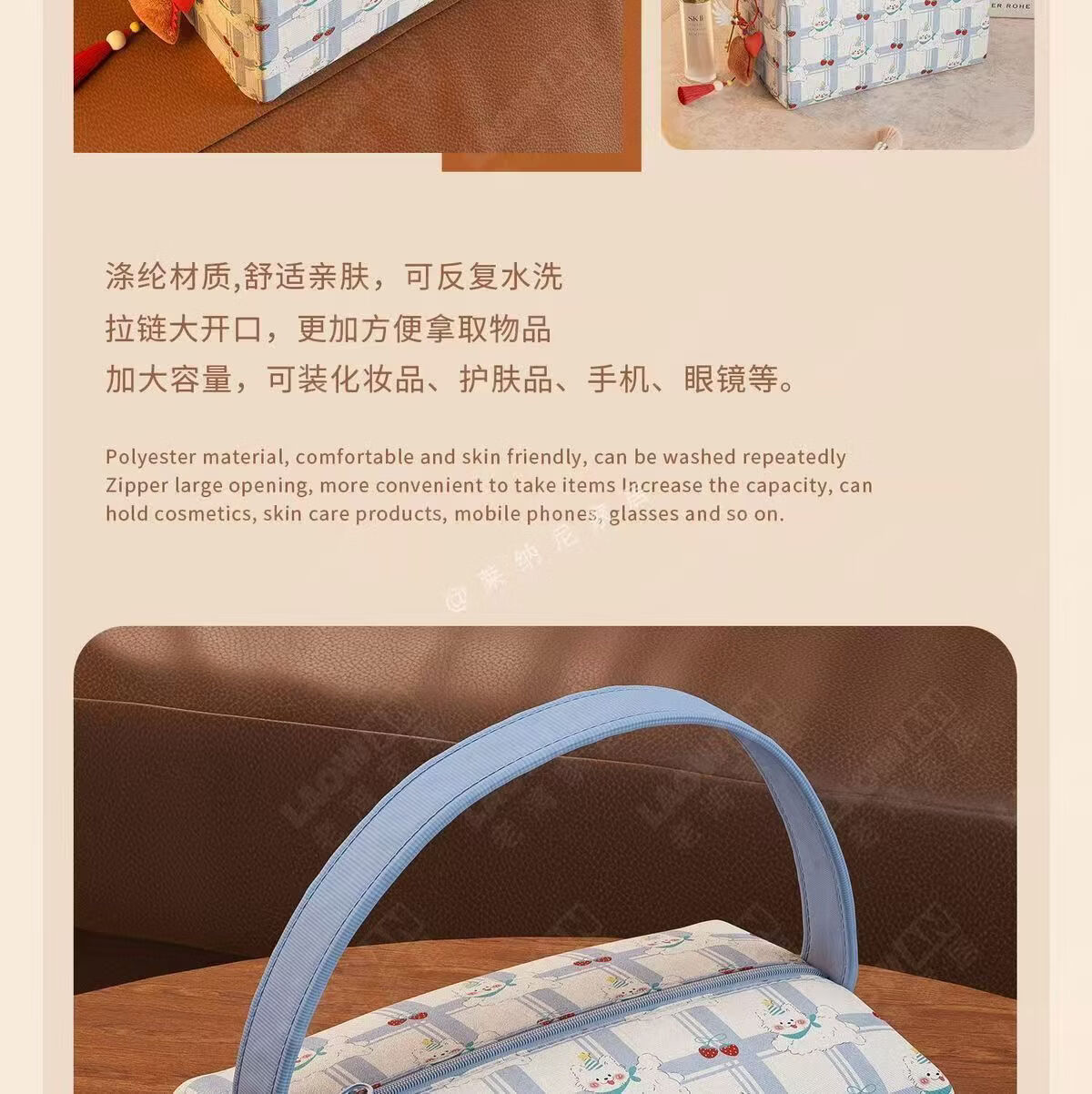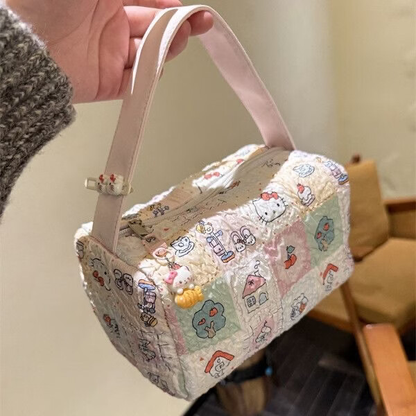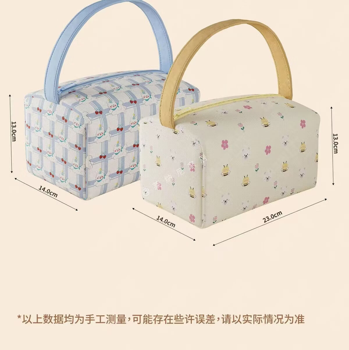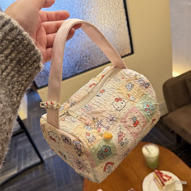 列文虎克 LEEUWENHOEK新款ins卡通小熊便捷日杂家用外出旅行收纳包大容量立体手提包 【粉色猫咪收纳包-无挂件】1个