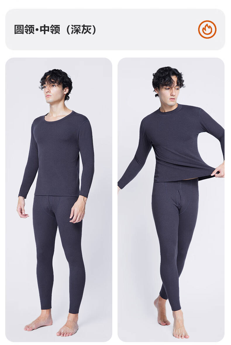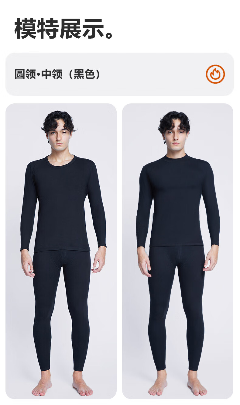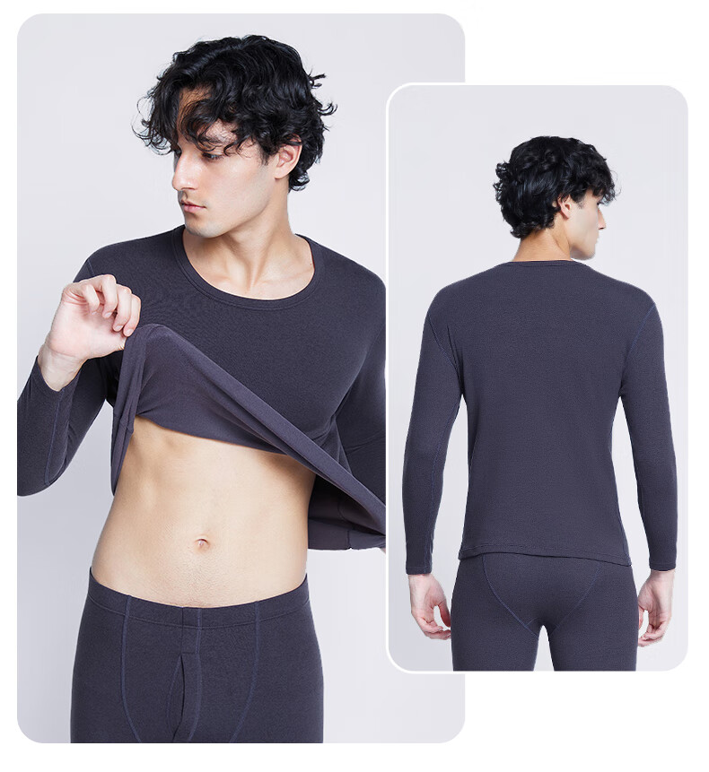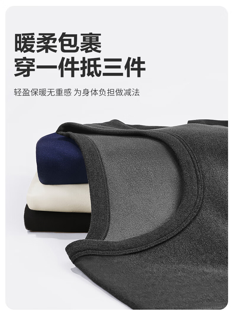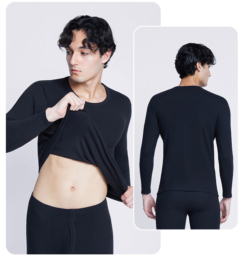 南极人(Nanjiren)男士羊绒蛋白10A抗菌抗静电防螨远红外蓄热保暖内衣套装 圆领-黑色 XL (180) 推荐130-150斤