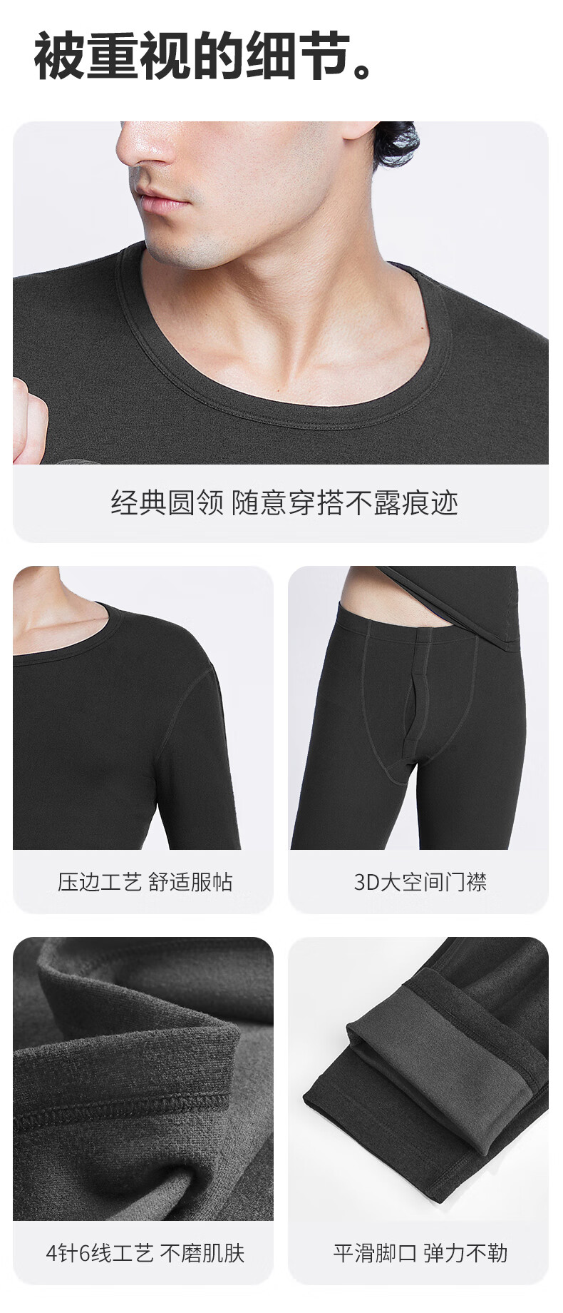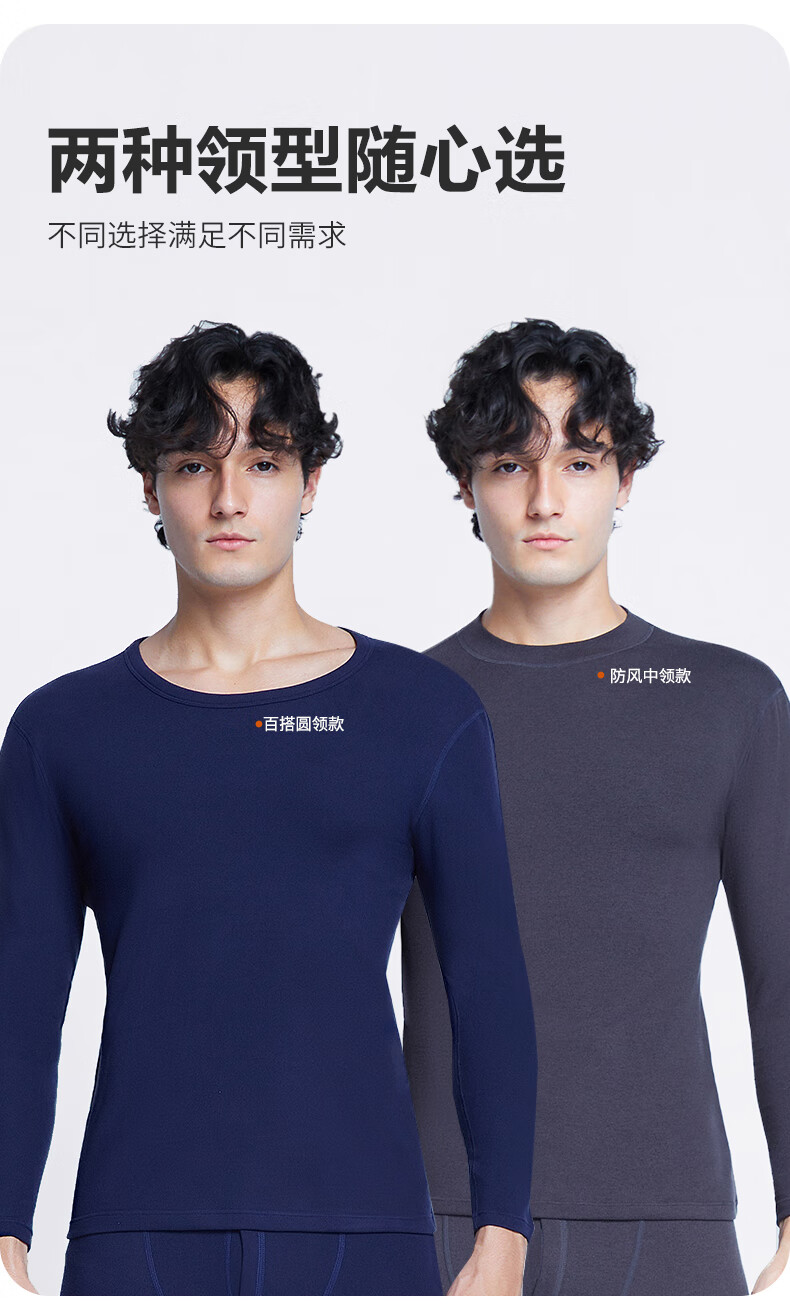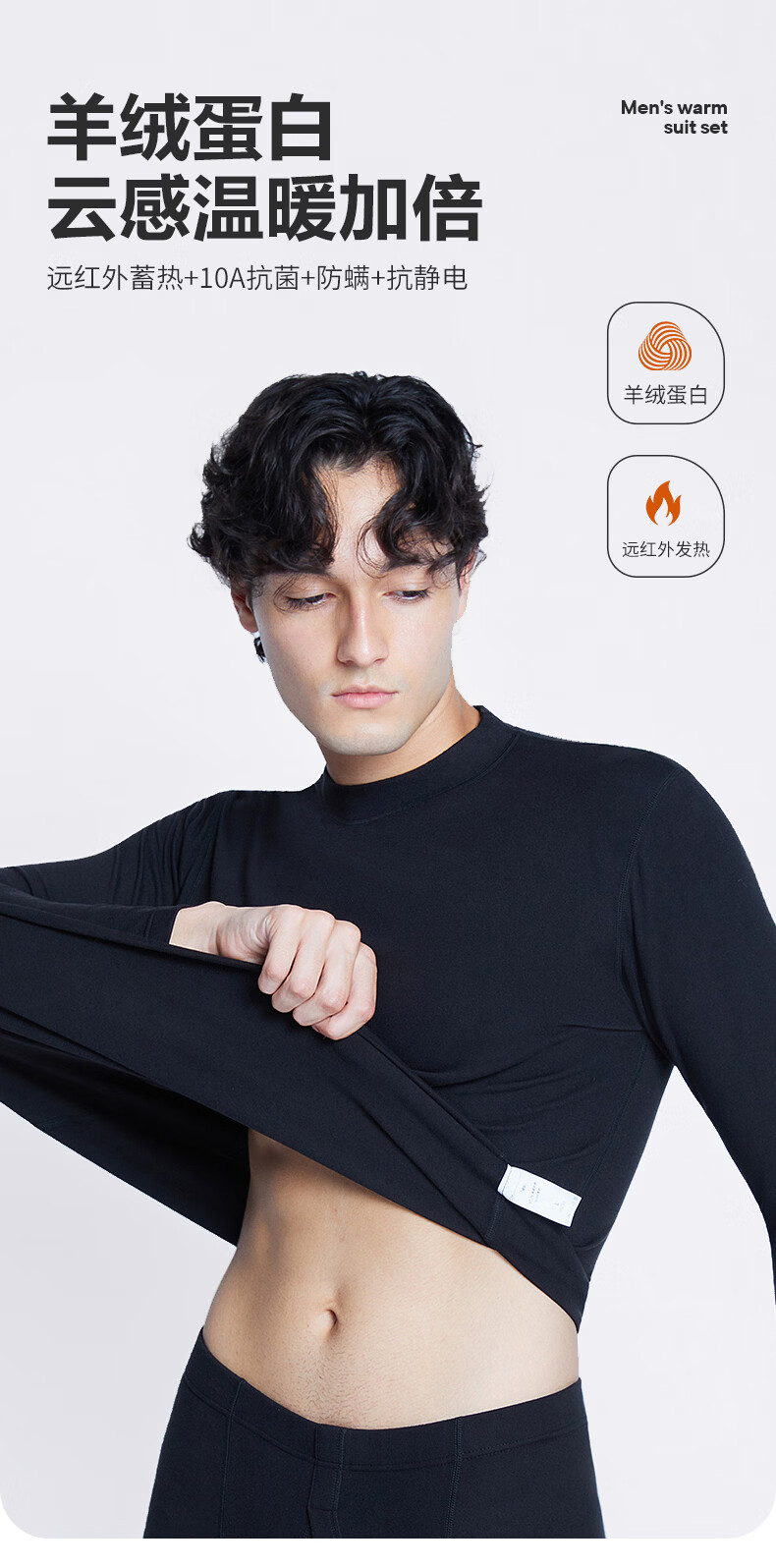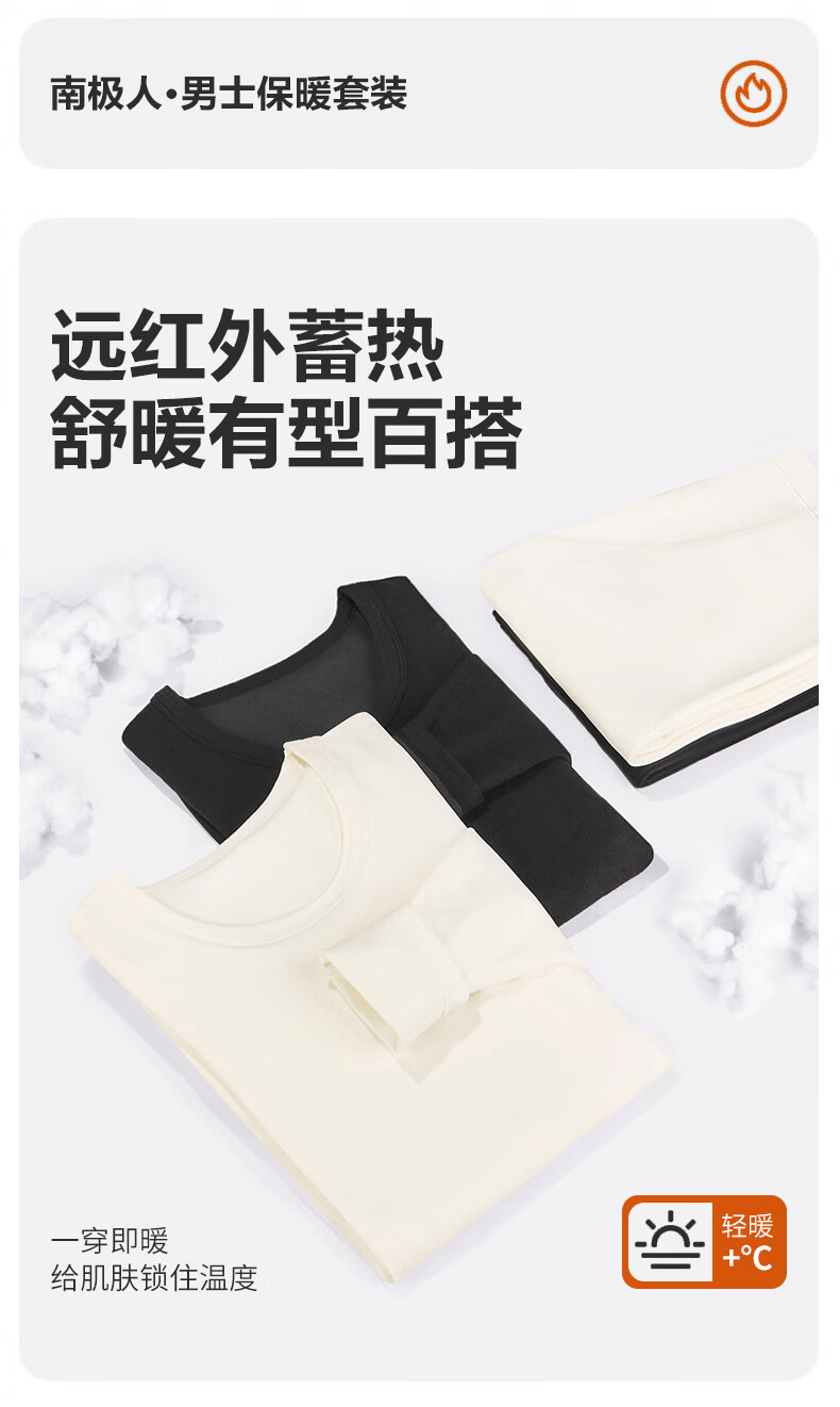 南极人(Nanjiren)男士羊绒蛋白10A抗菌抗静电防螨远红外蓄热保暖内衣套装 圆领-黑色 XL (180) 推荐130-150斤