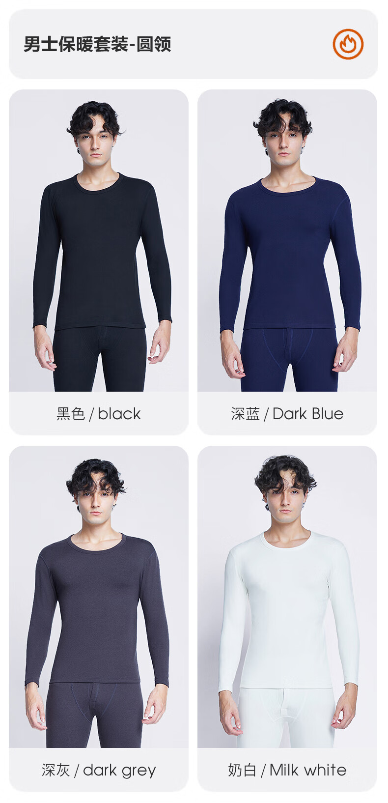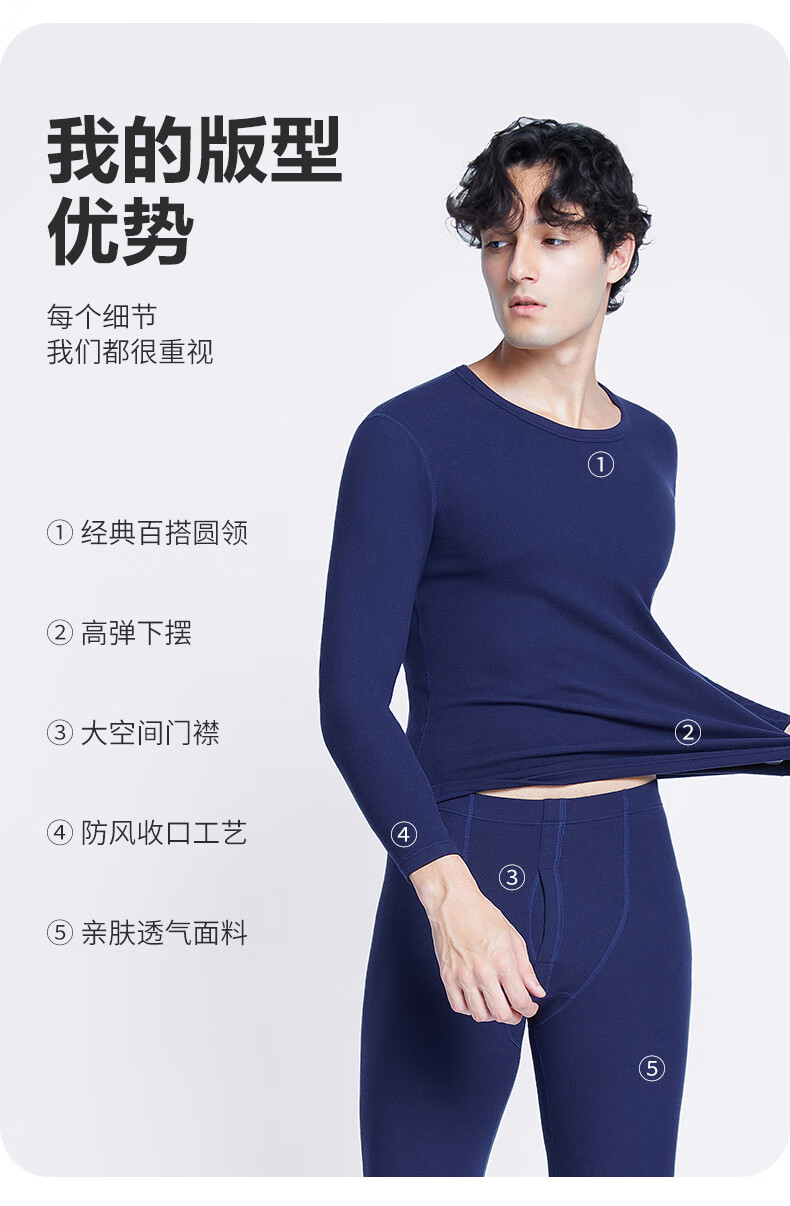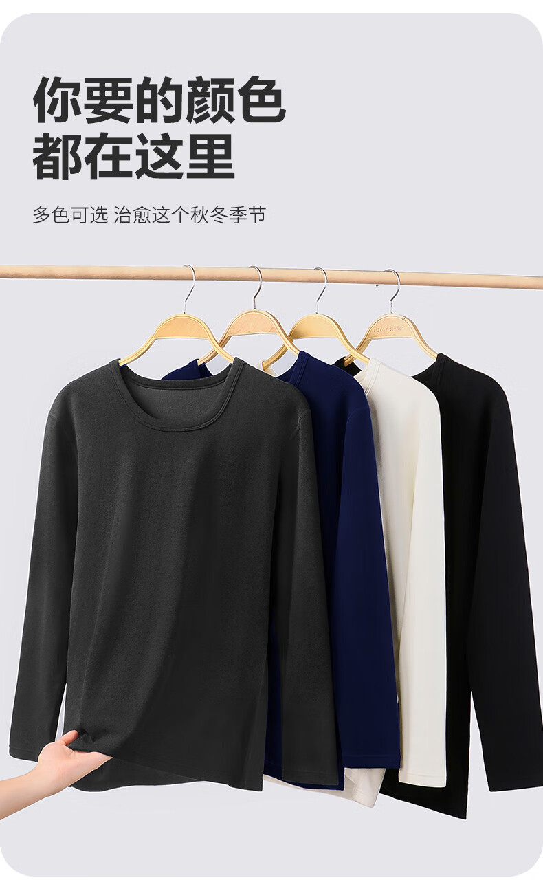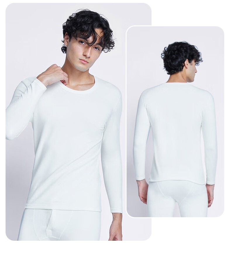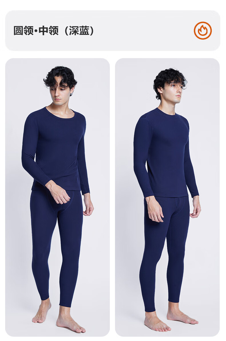 南极人(Nanjiren)男士羊绒蛋白10A抗菌抗静电防螨远红外蓄热保暖内衣套装 圆领-黑色 XL (180) 推荐130-150斤