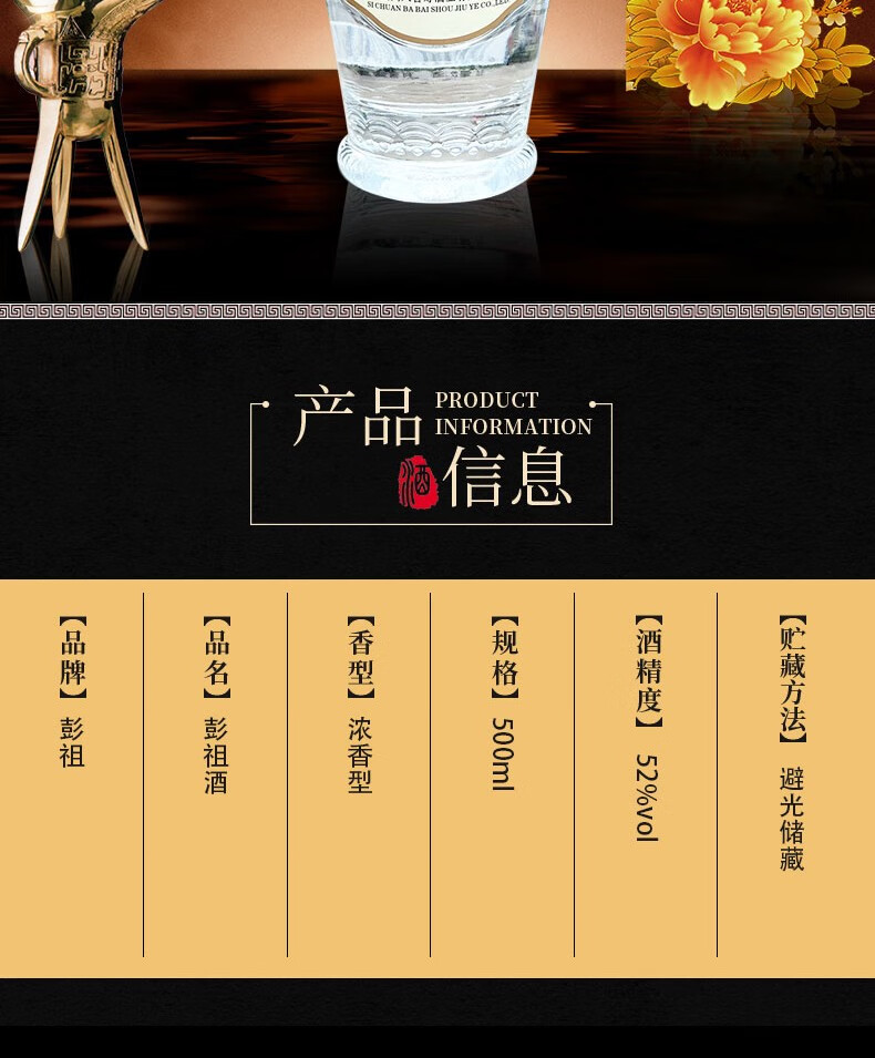 彭祖酒嘉庆窖中华老字号52度浓香型白酒 粮食酒自饮500ML*6(整箱装) 52度 500mL 6瓶 整箱装