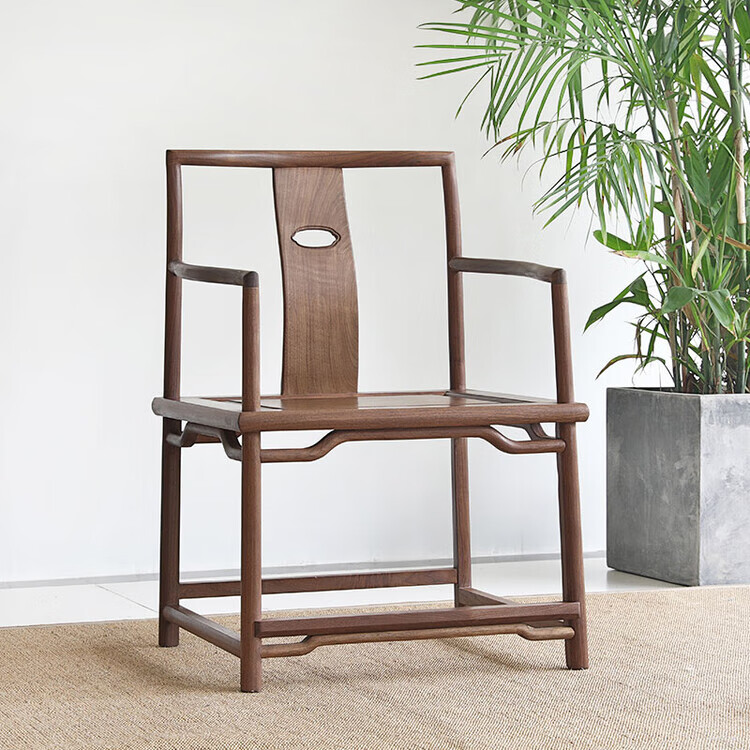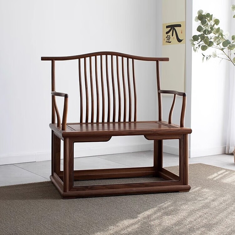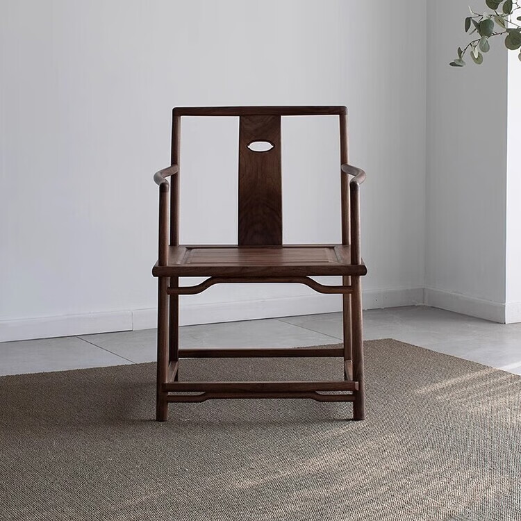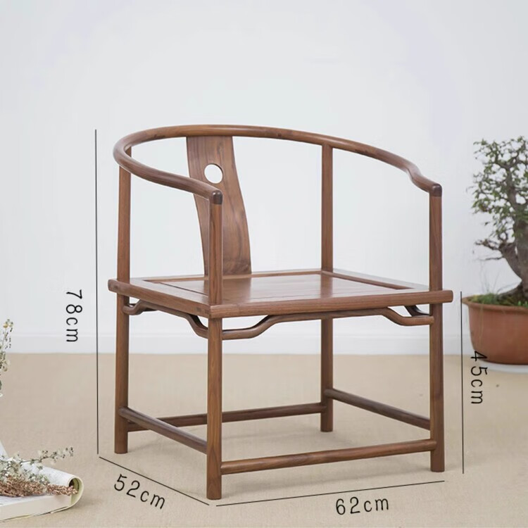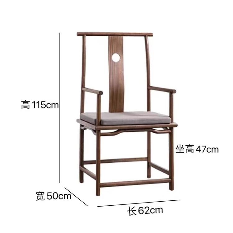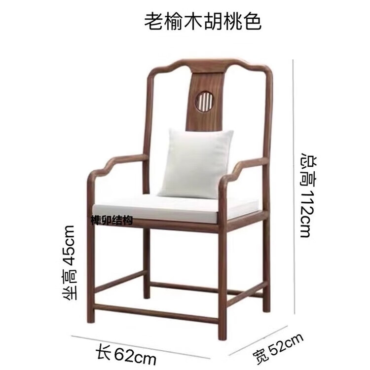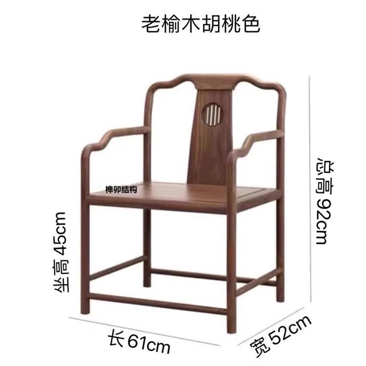 新中式实木圈椅北方榆木书房官帽椅太师椅海棠椅禅意茶主椅扶手椅 承天椅【送坐垫】