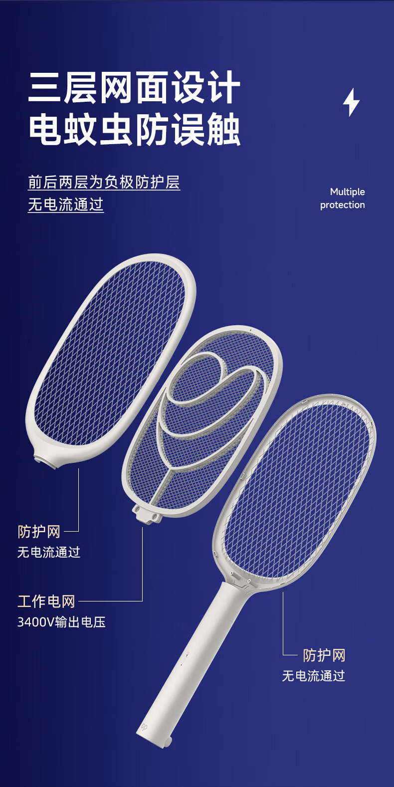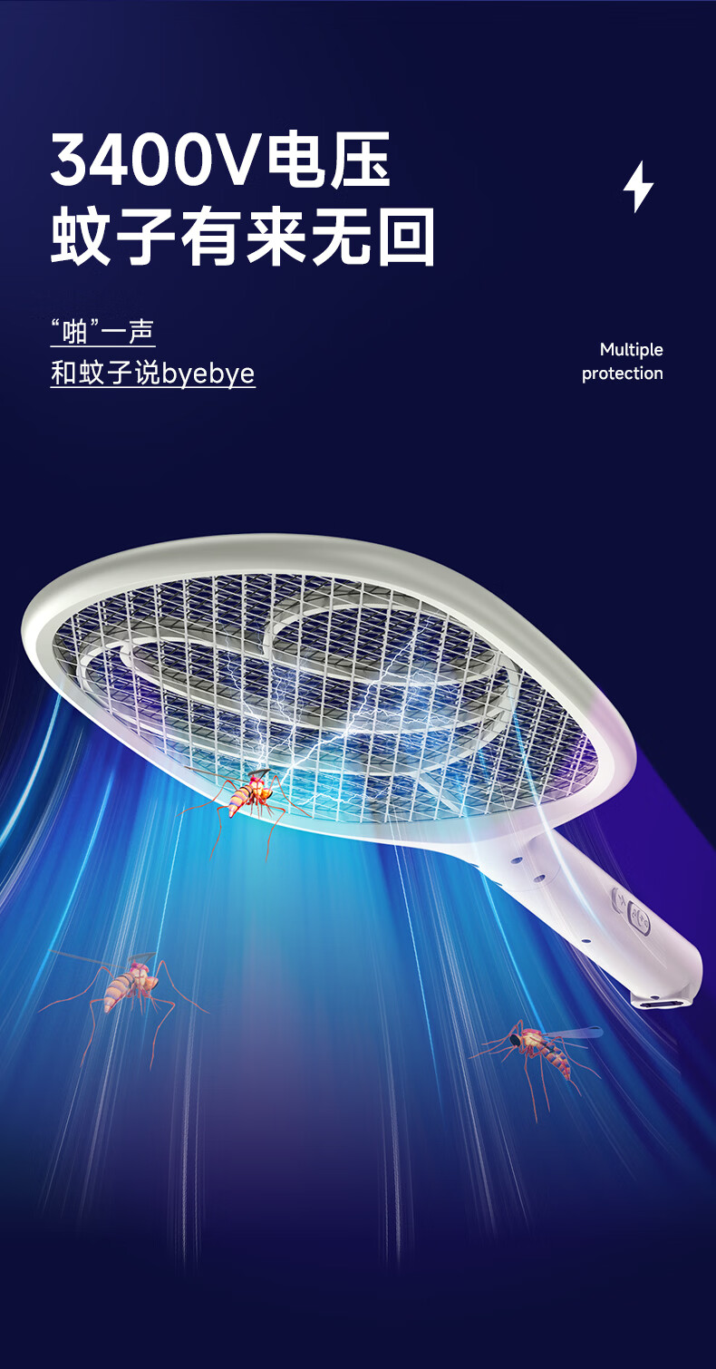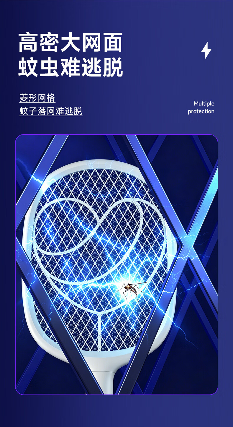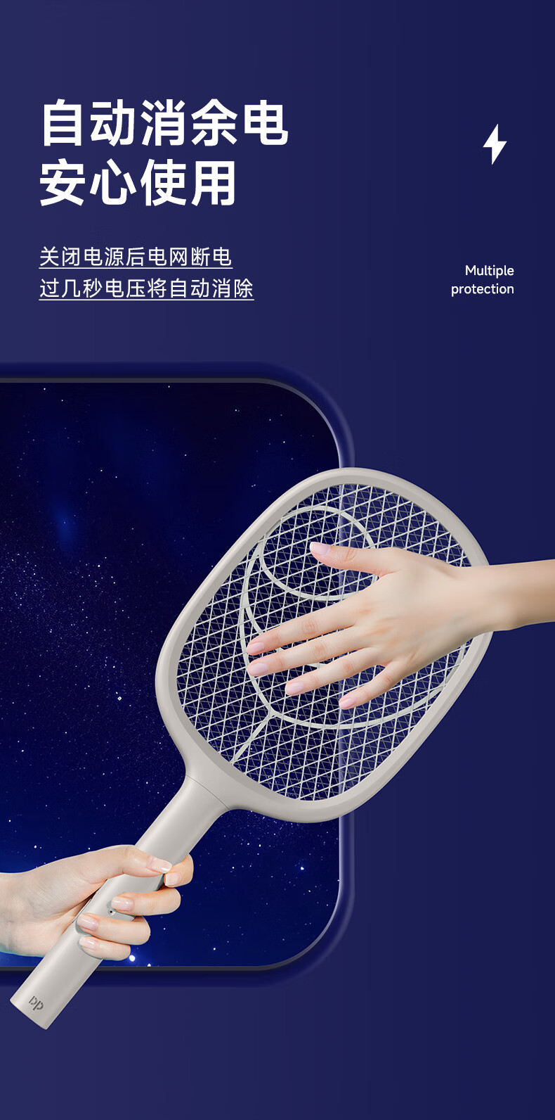 久量(DP)电蚊拍大网面LED充电式灭蚊器家用诱蚊灭蚊苍蝇拍大容量驱蚊神器 普通款【三层电网+高效安全】