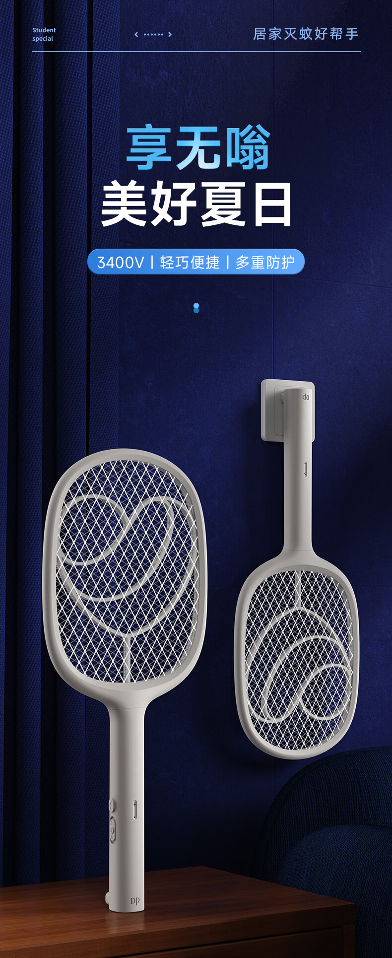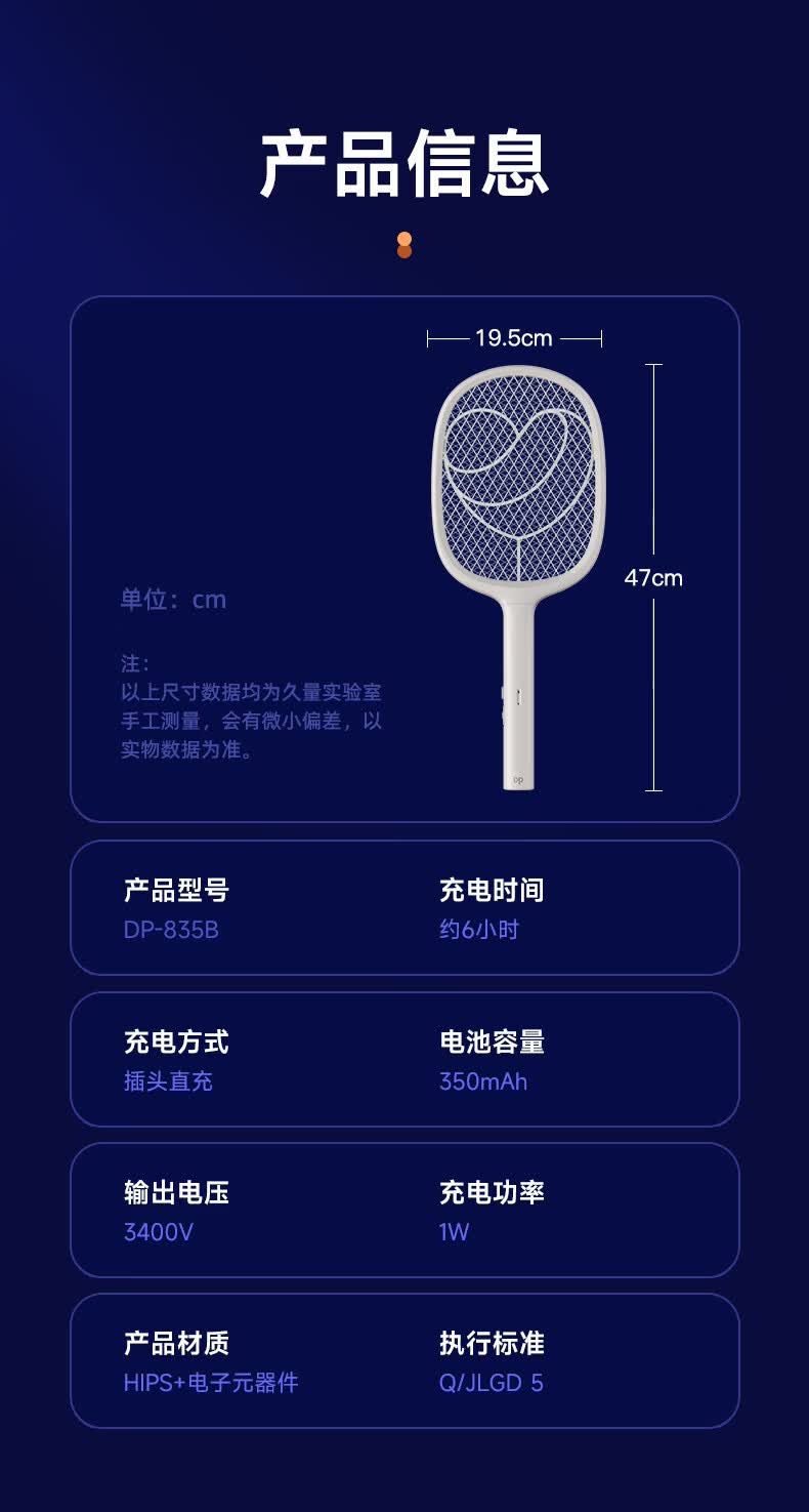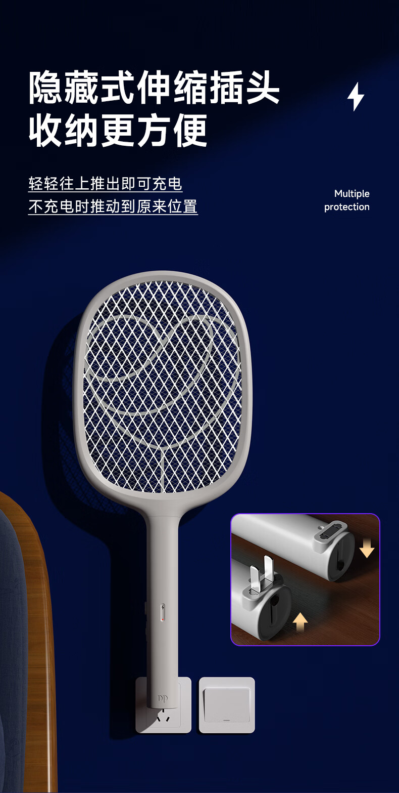 久量(DP)电蚊拍大网面LED充电式灭蚊器家用诱蚊灭蚊苍蝇拍大容量驱蚊神器 普通款【三层电网+高效安全】