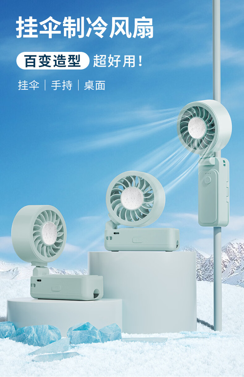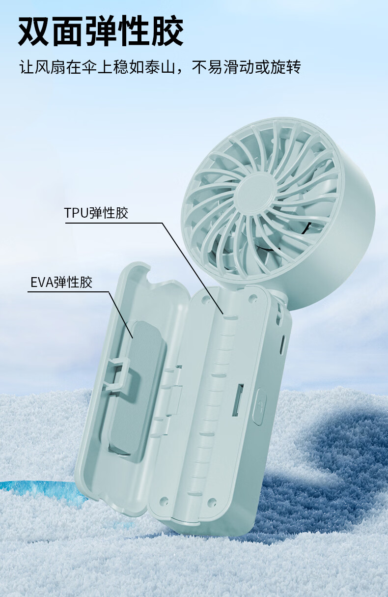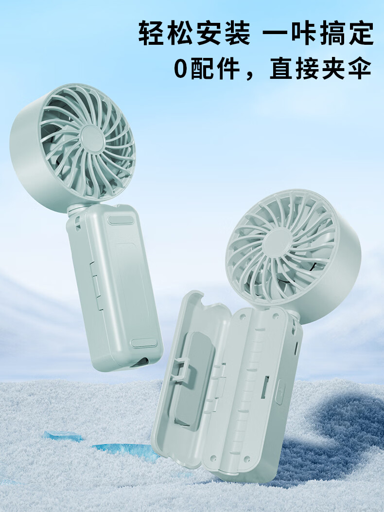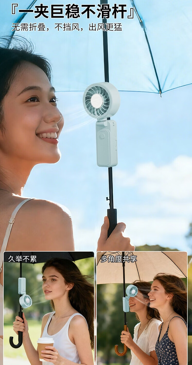 千喻【可夹伞风扇】伞夹制冷小风扇手持两用静音风扇2026新款户外挂脖风扇迷你涡轮充电usb电风扇便携 2000mAh