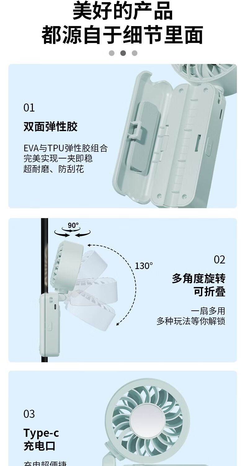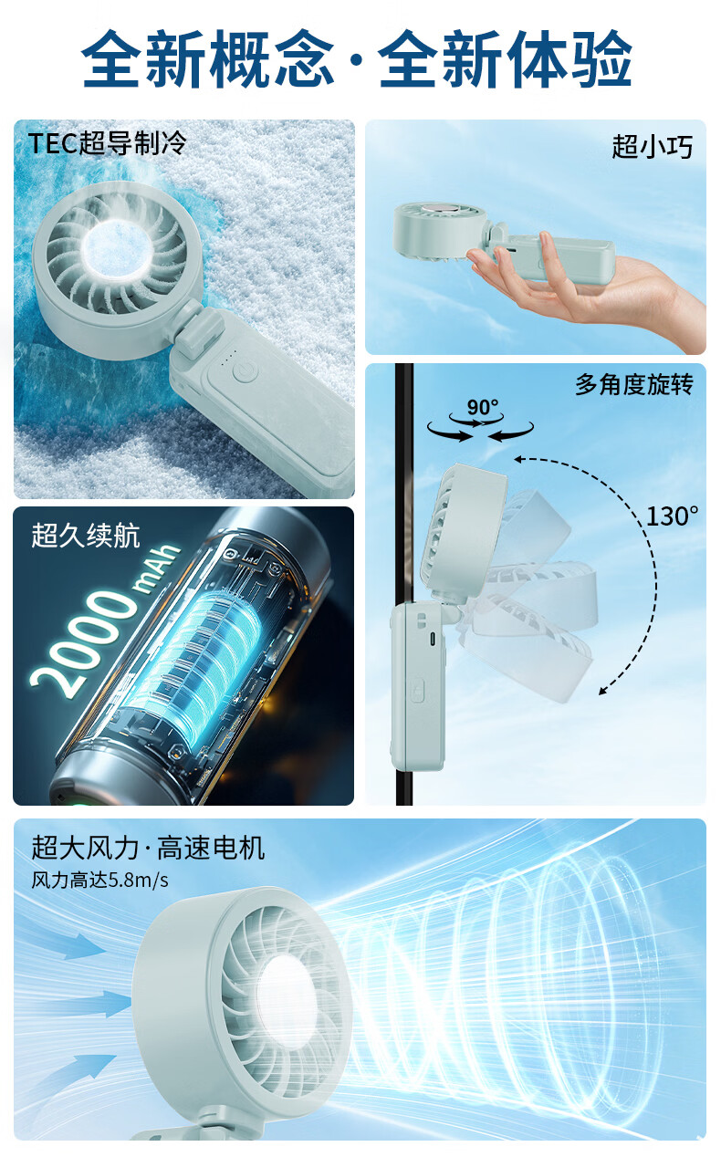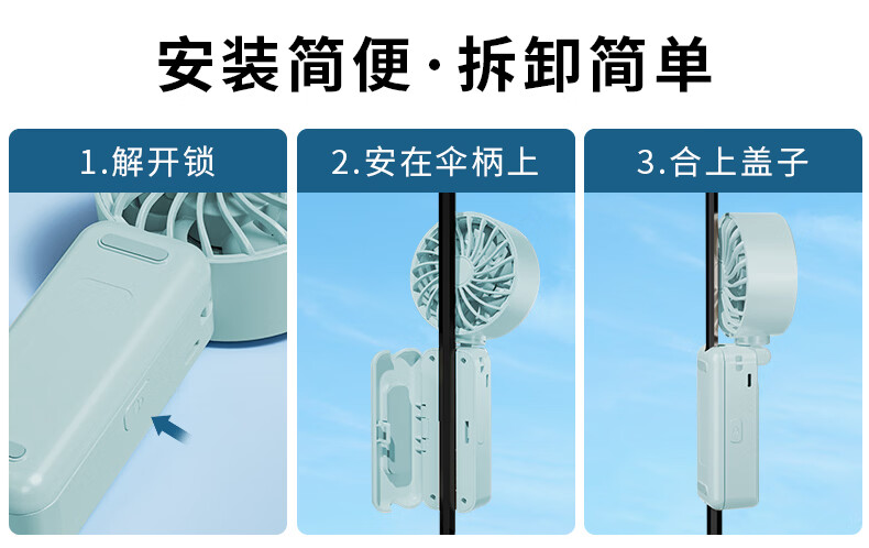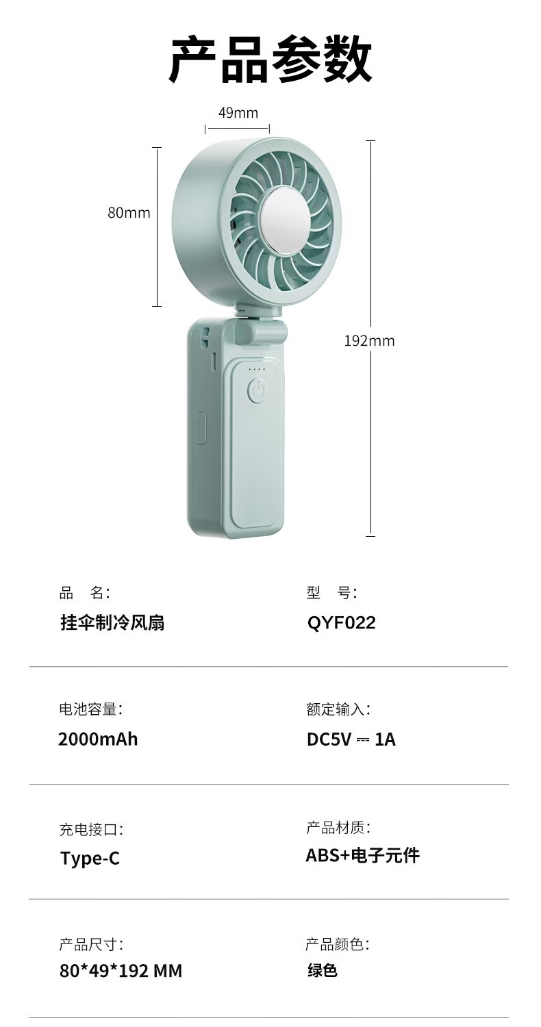 千喻【可夹伞风扇】伞夹制冷小风扇手持两用静音风扇2026新款户外挂脖风扇迷你涡轮充电usb电风扇便携 2000mAh