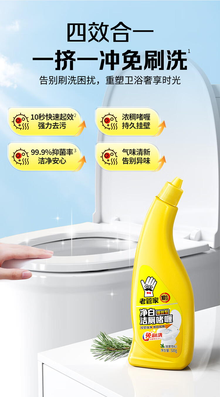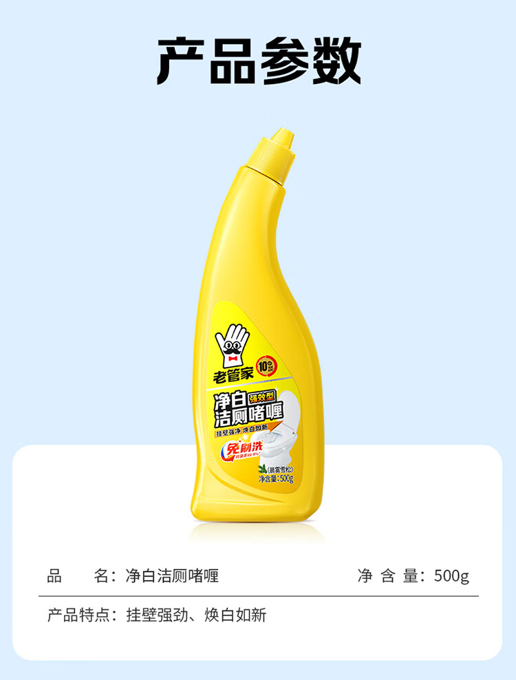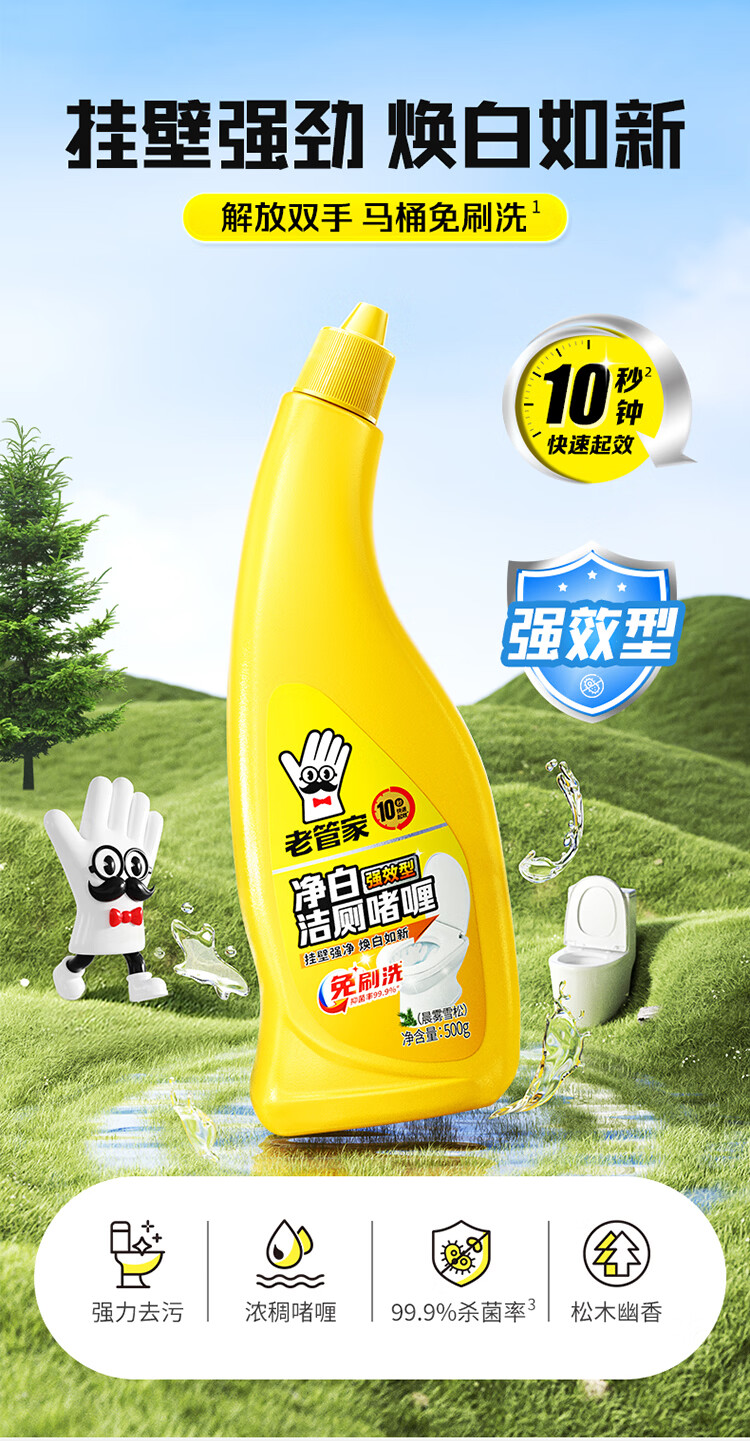 老管家净白洁厕啫喱洁厕灵洁厕液卫生间浴室清洁剂除垢除臭焕白 500g*3瓶