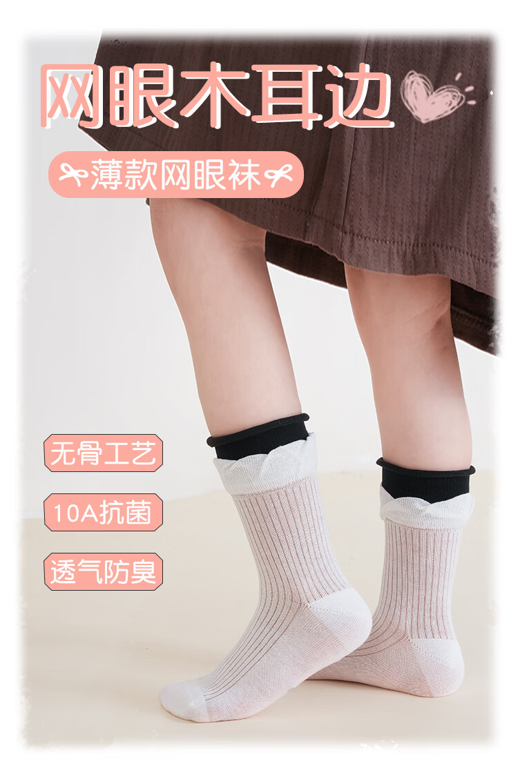 顶瓜瓜女童袜子夏季薄款儿童网眼袜A类纯棉无骨宝宝袜透气抗起球学生袜 9-12岁 大童款 5 双装 女童 A 类纯棉无骨网眼袜夏季薄款