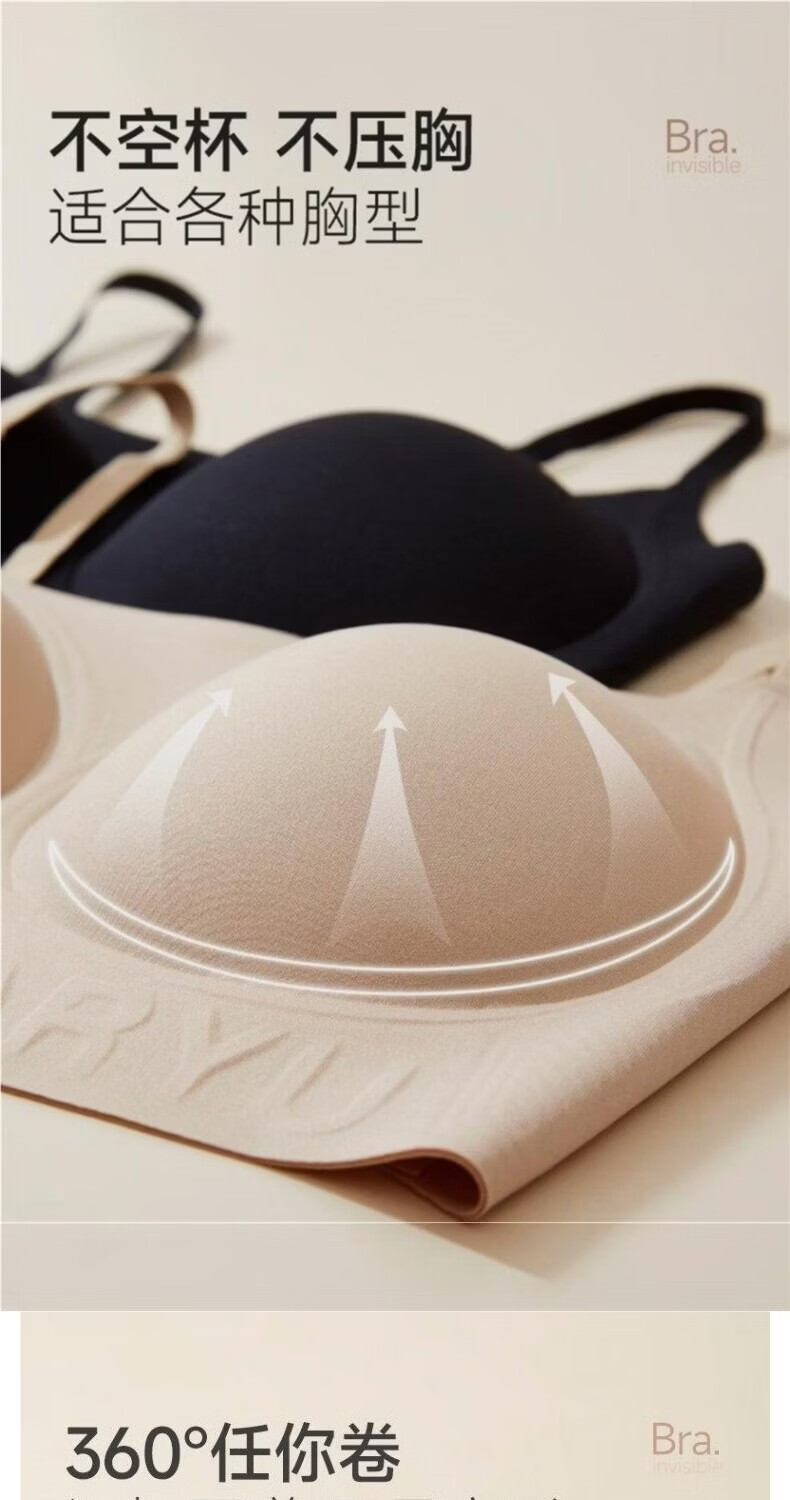 DAPHNE达芙妮【M】无痕内衣女小胸聚拢无钢圈调整型光面上托一片式 【固定杯】黑色【有字母没字母随发】 L(建议100-120斤)
