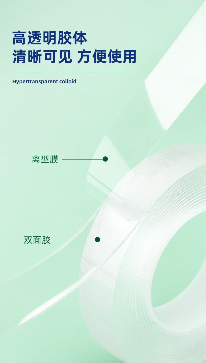 透明无痕纳米双面胶 加厚高粘度强力 易撕不留胶免打钉双面胶带 强力防水胶贴强力胶双面胶带 【1卷装】*宽2CM*长1M*厚1.5mm