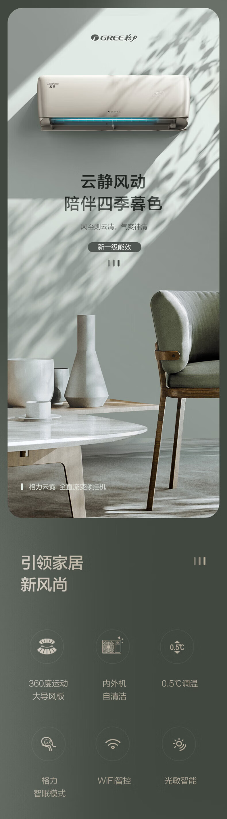 格力空调 云霓 1.5匹 新一级能效 变频冷暖 纯铜管 节能 省电 防直吹 壁挂式空调挂机 家电补贴 大1匹 云霓新一级能效